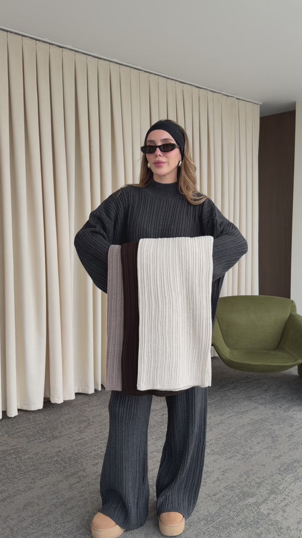 Antrasit Fitilli Oversize Kazak - 26808