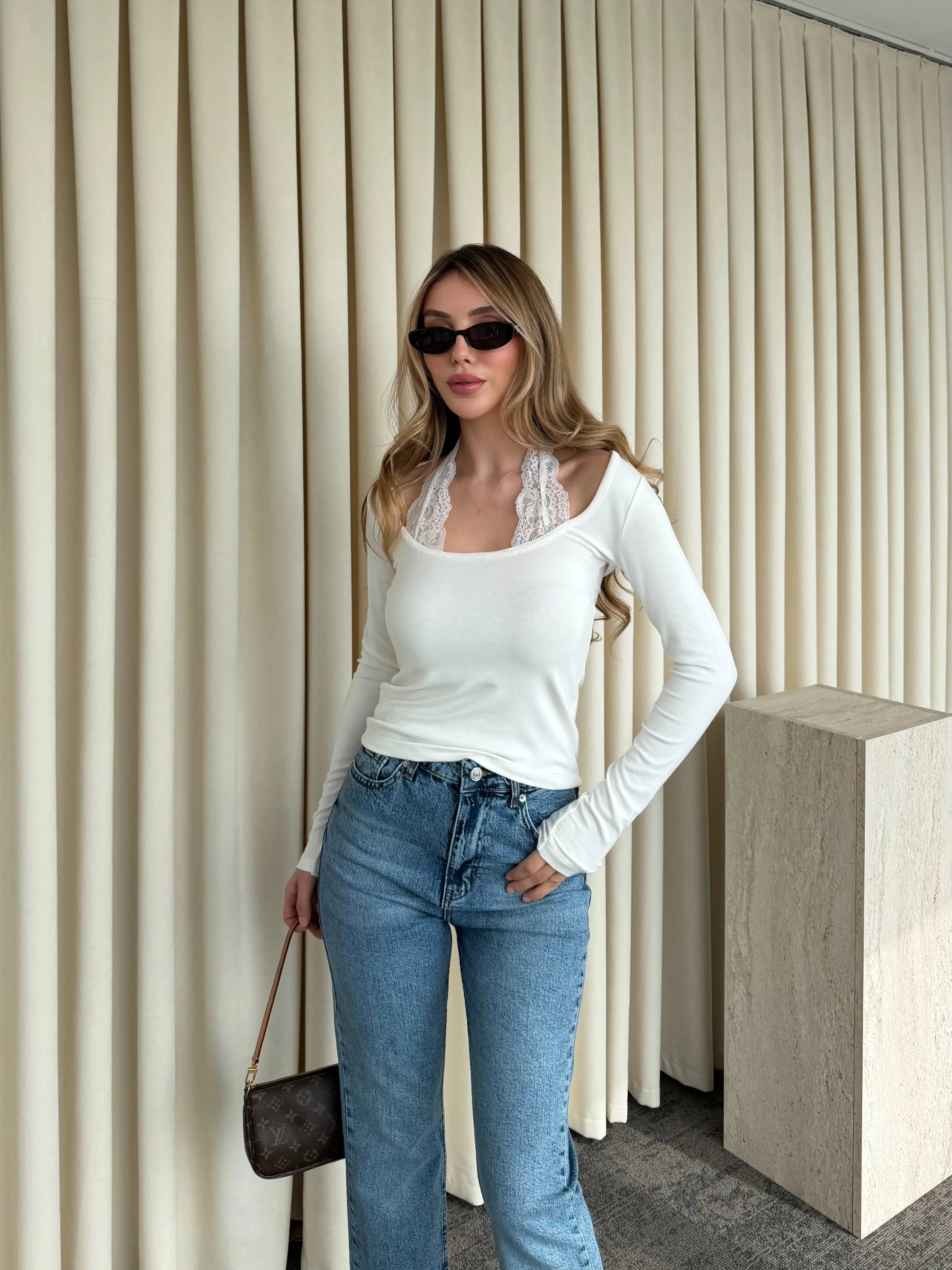 Omuzları açık kesimi ve içten görünen dantel detayıyla feminen dokunuşu güçlü bir tasarım ✨
