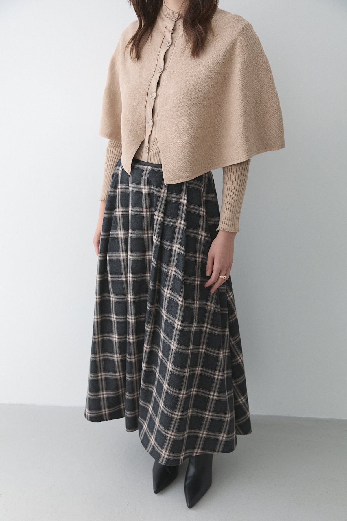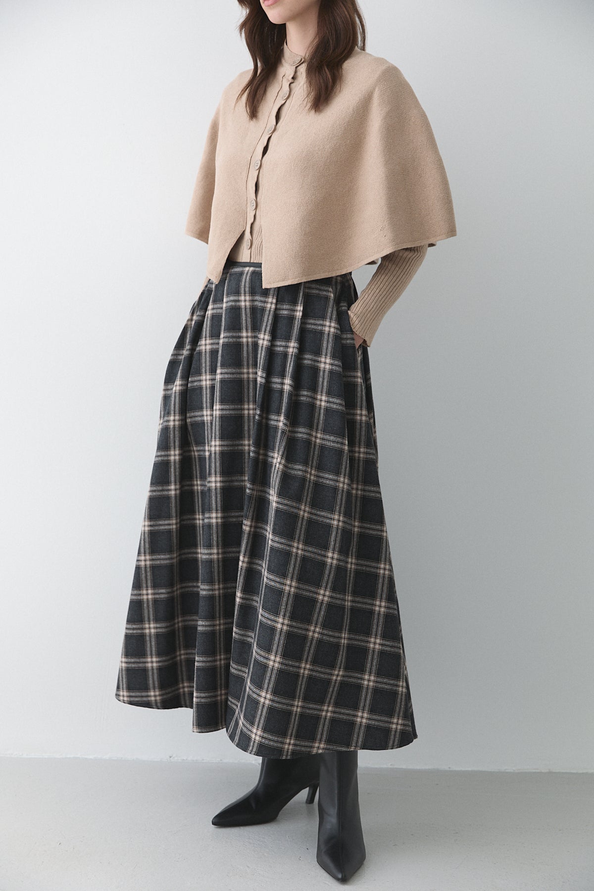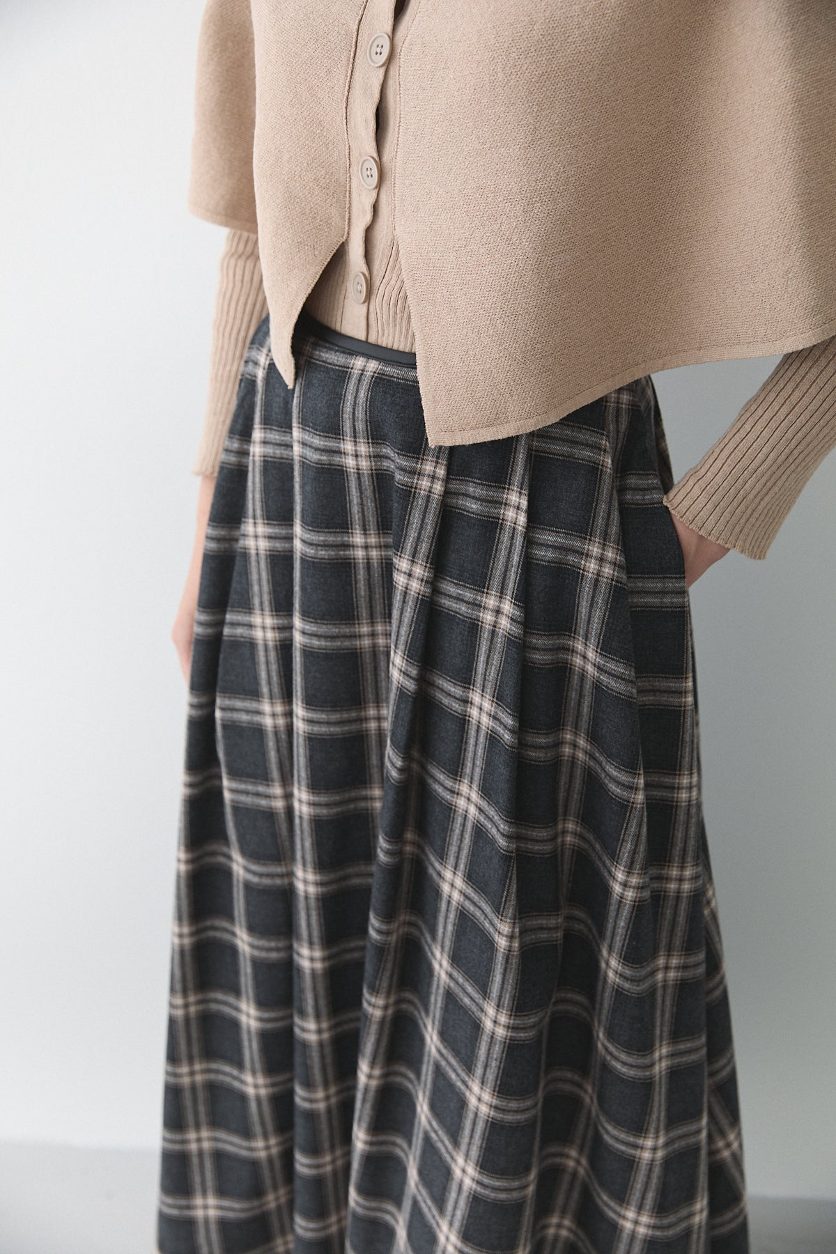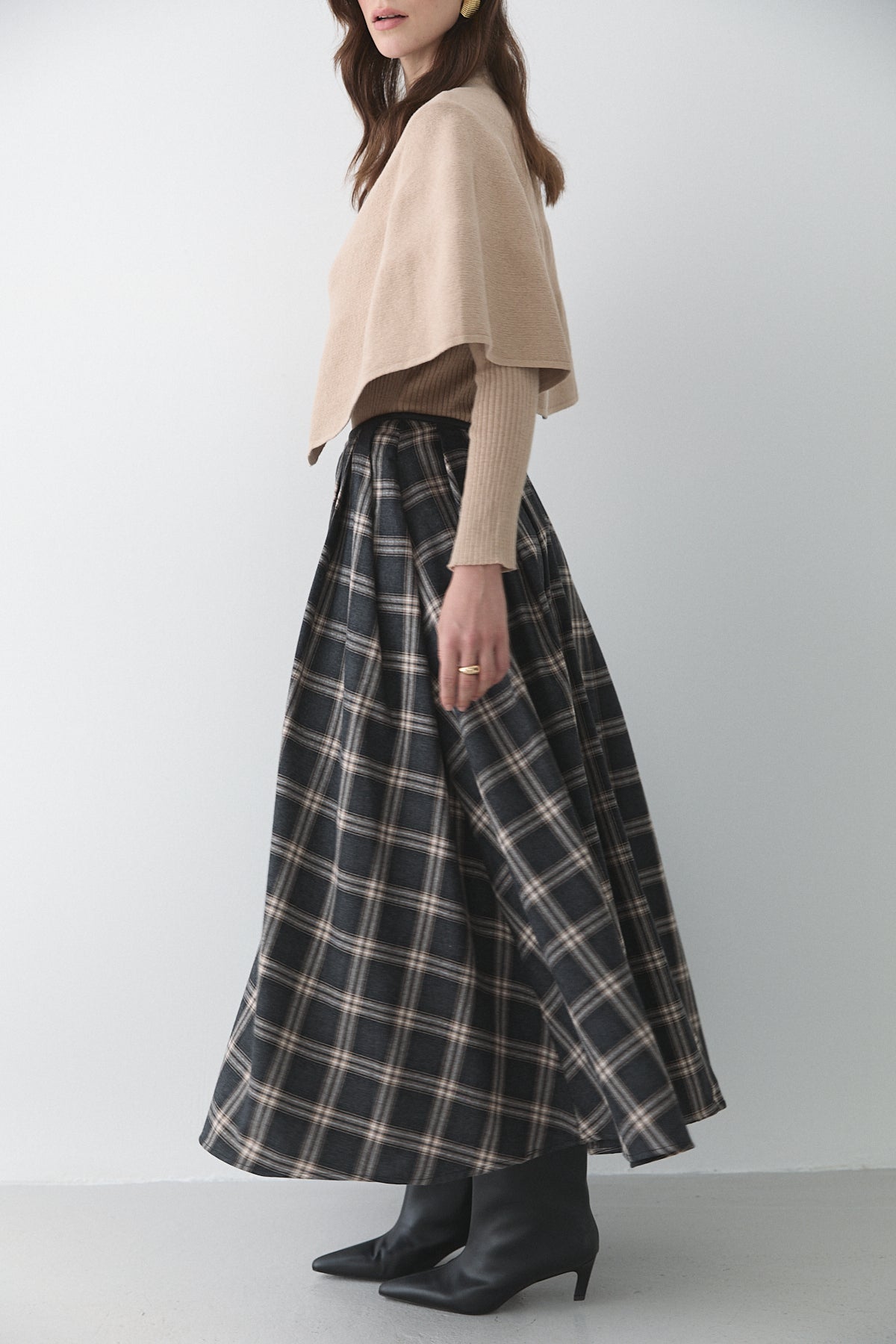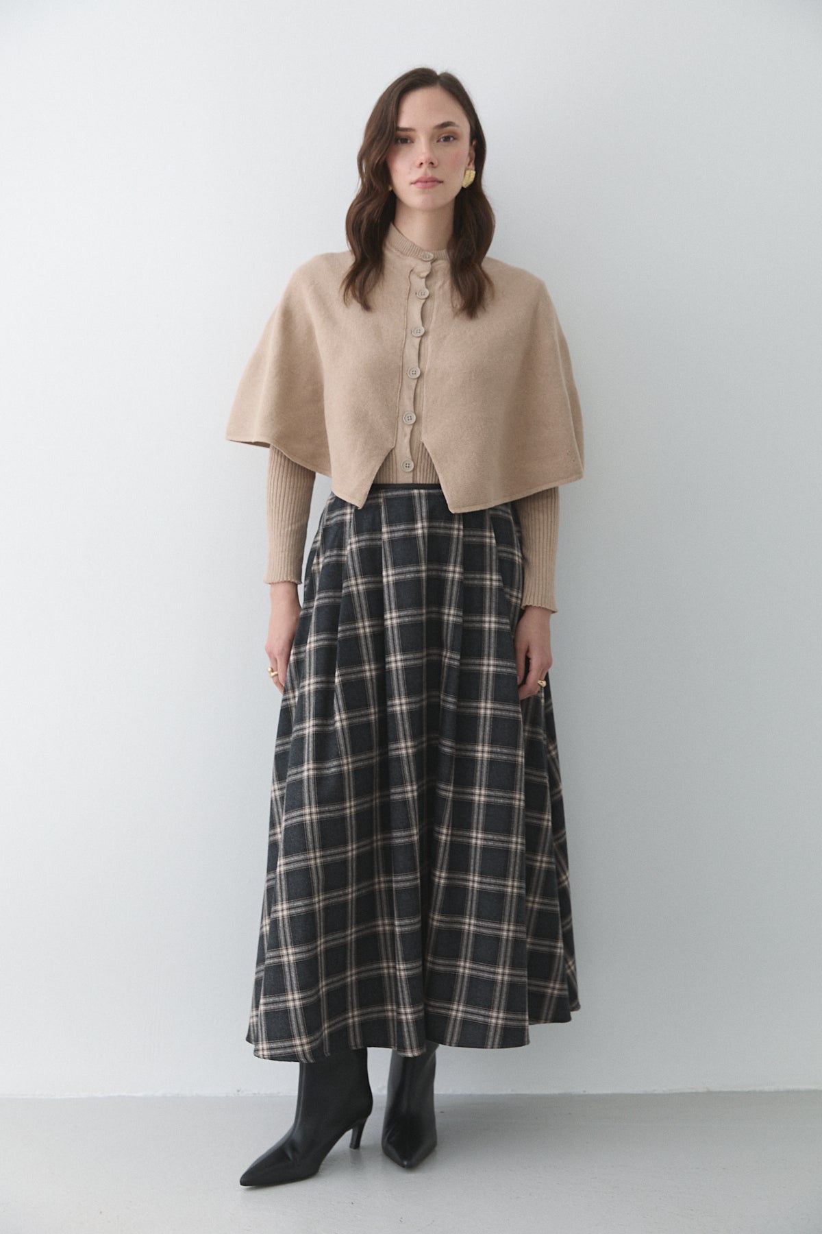 - Antrasit Bej Deri Şeritli Ekoseli Etek - 4977