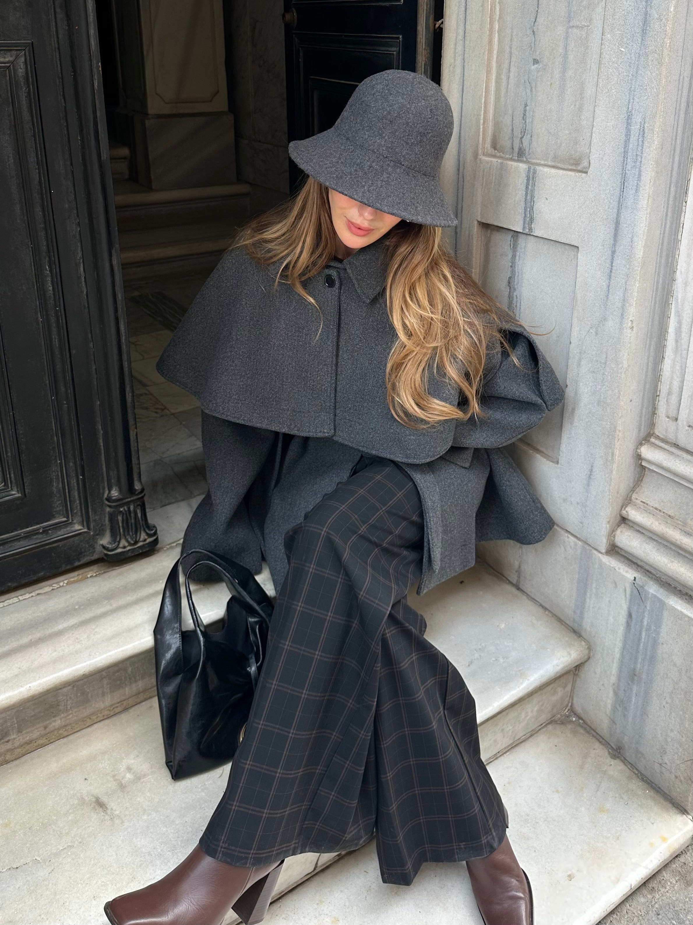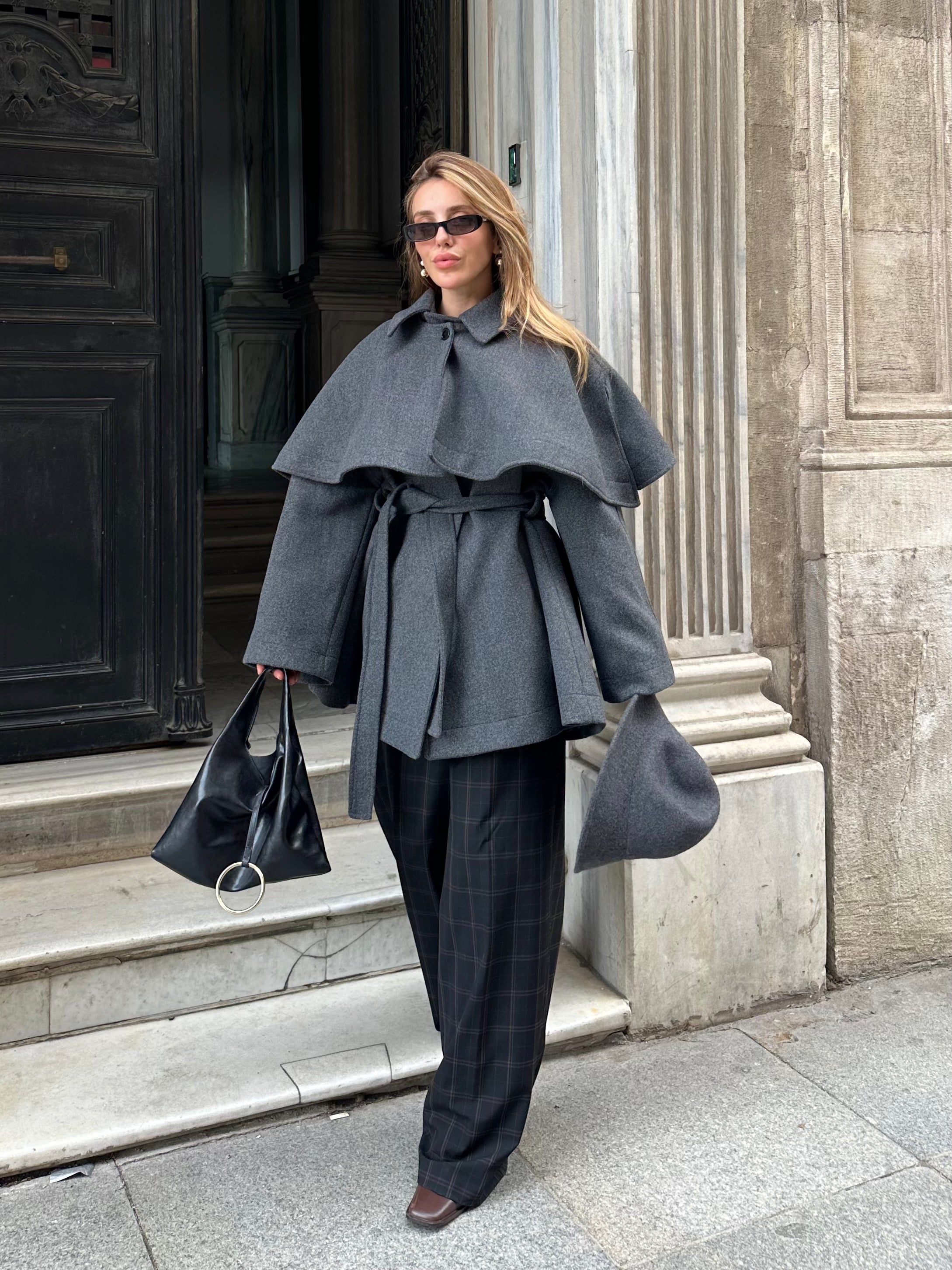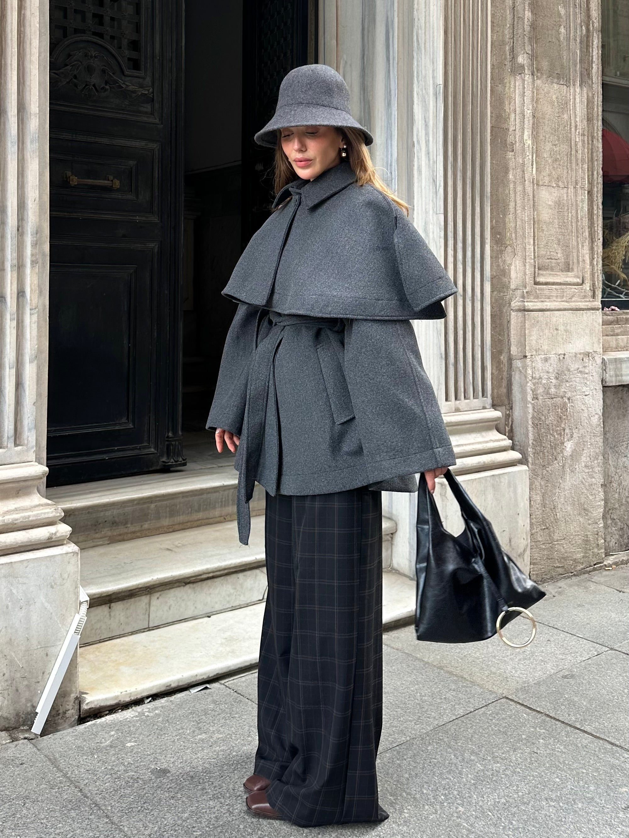 - Antrasit Livia Pelerin Detaylı Kaşe Kaban