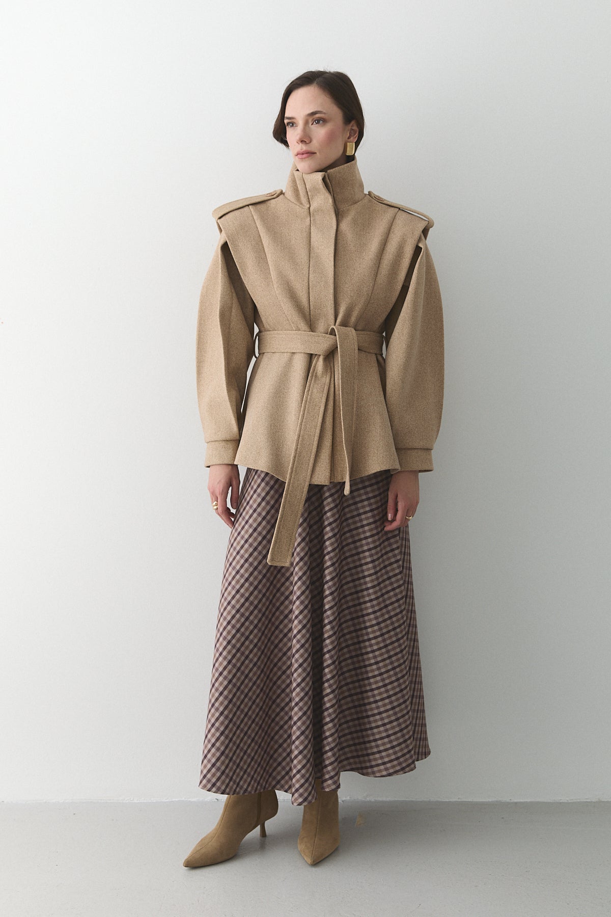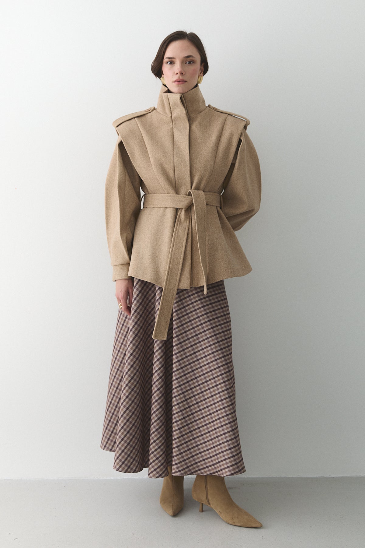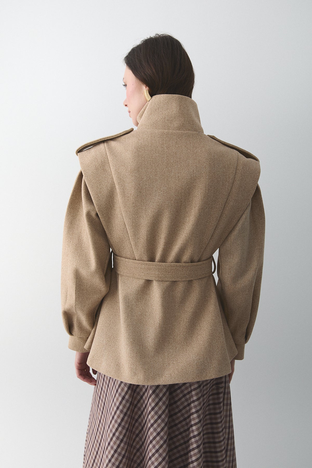 - Bej Apoletli Vatkalı Kaşe Kaban - 1005
