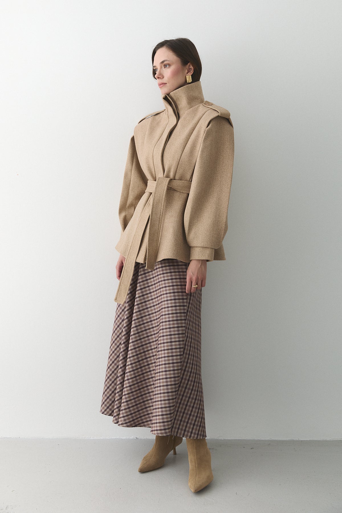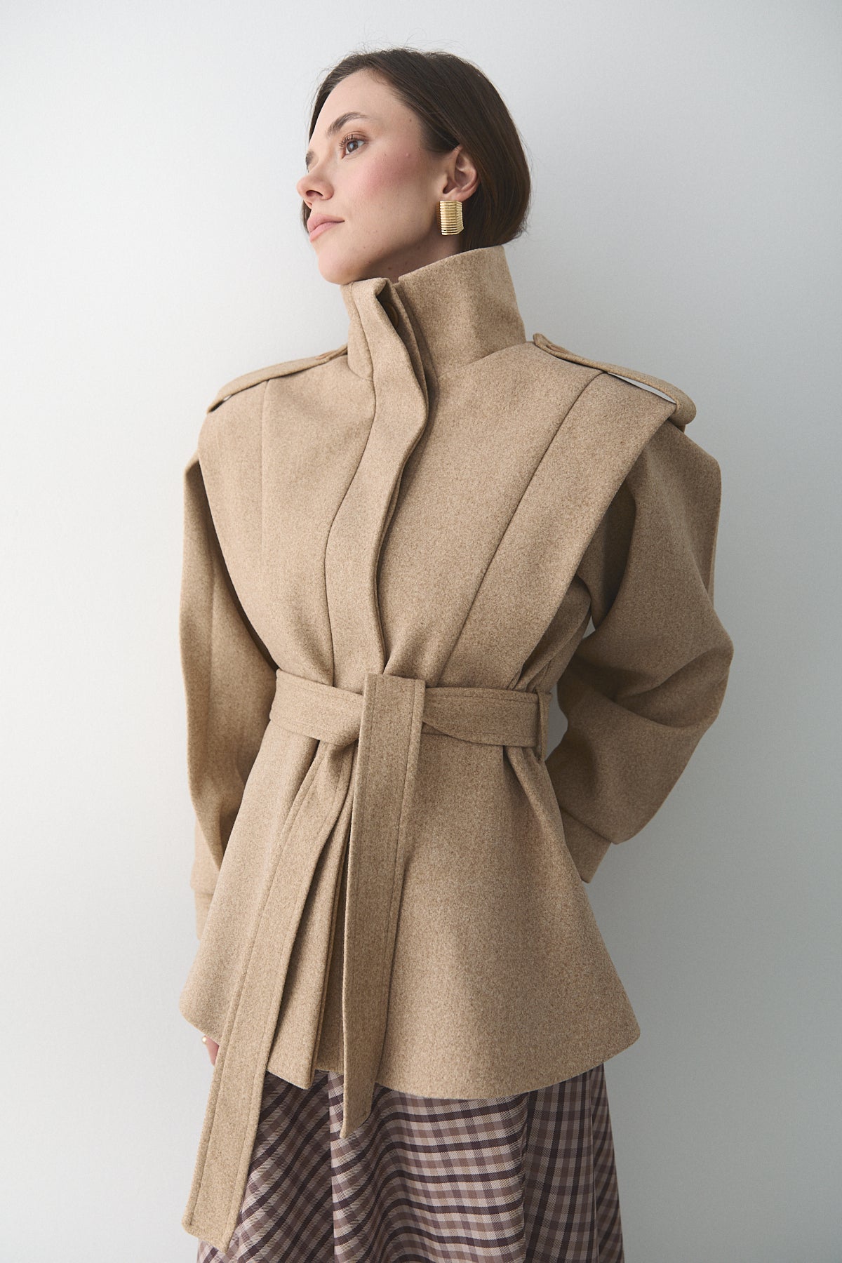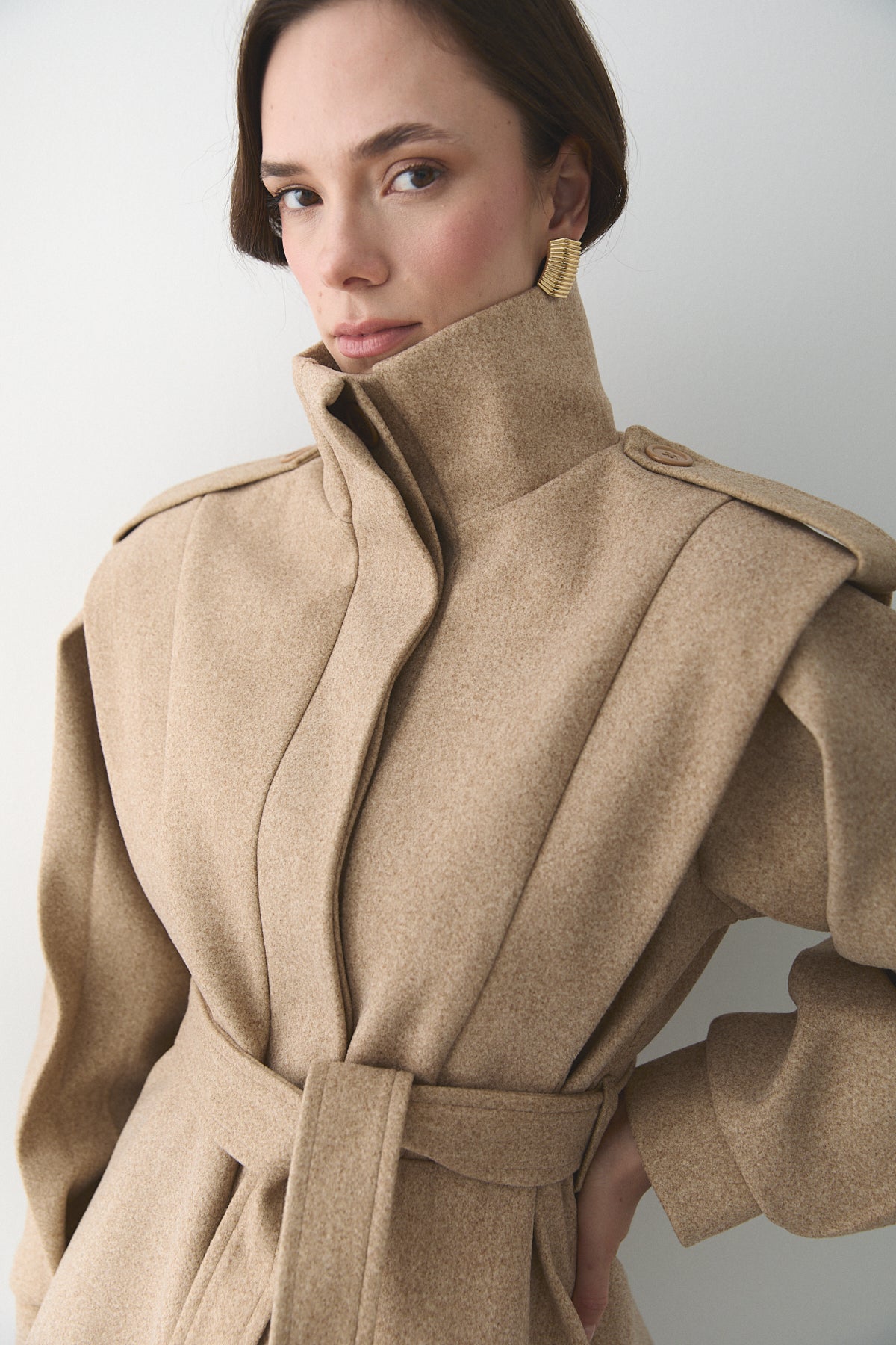 Bej Apoletli Vatkalı Kaşe Kaban - 1005