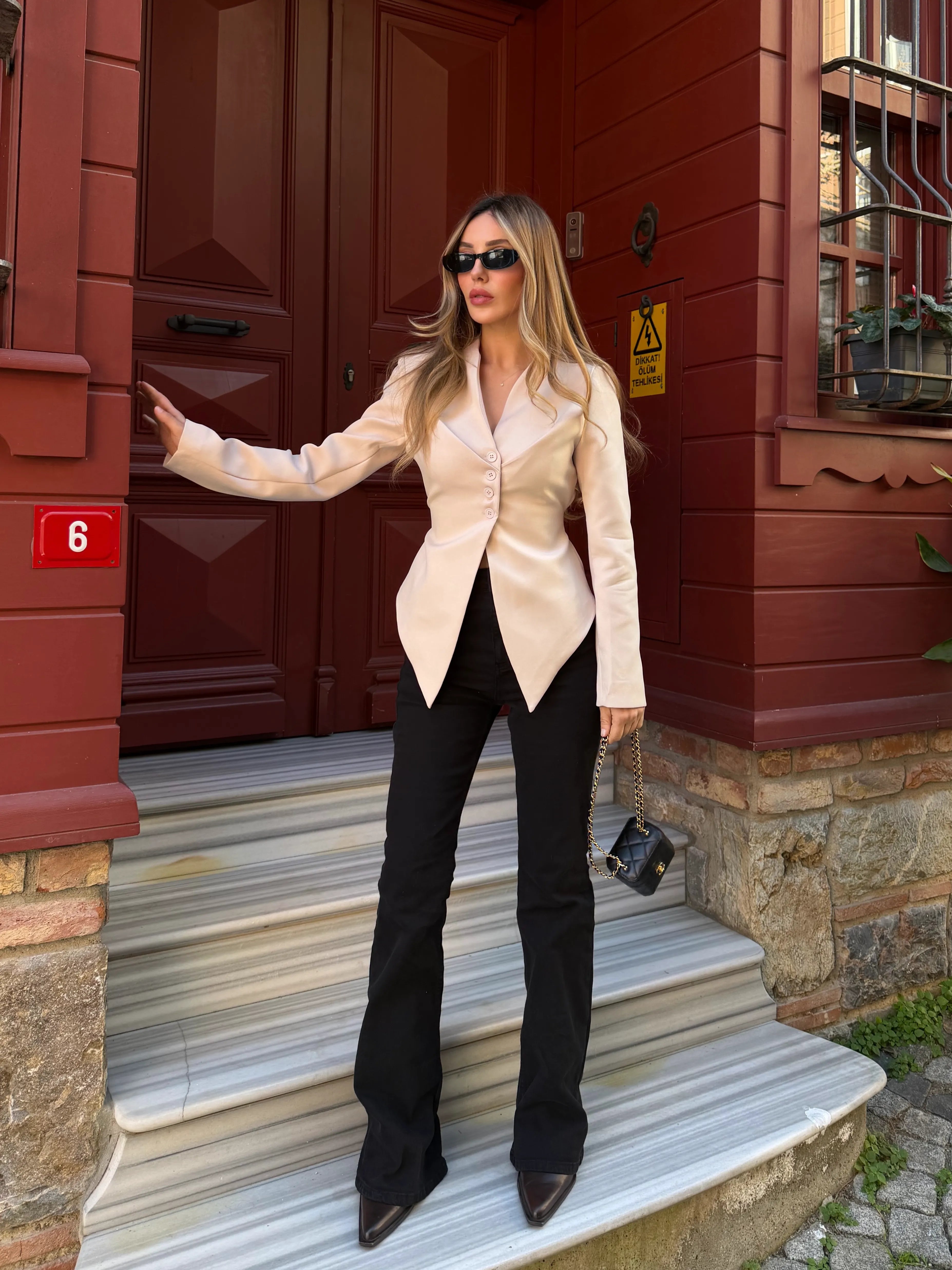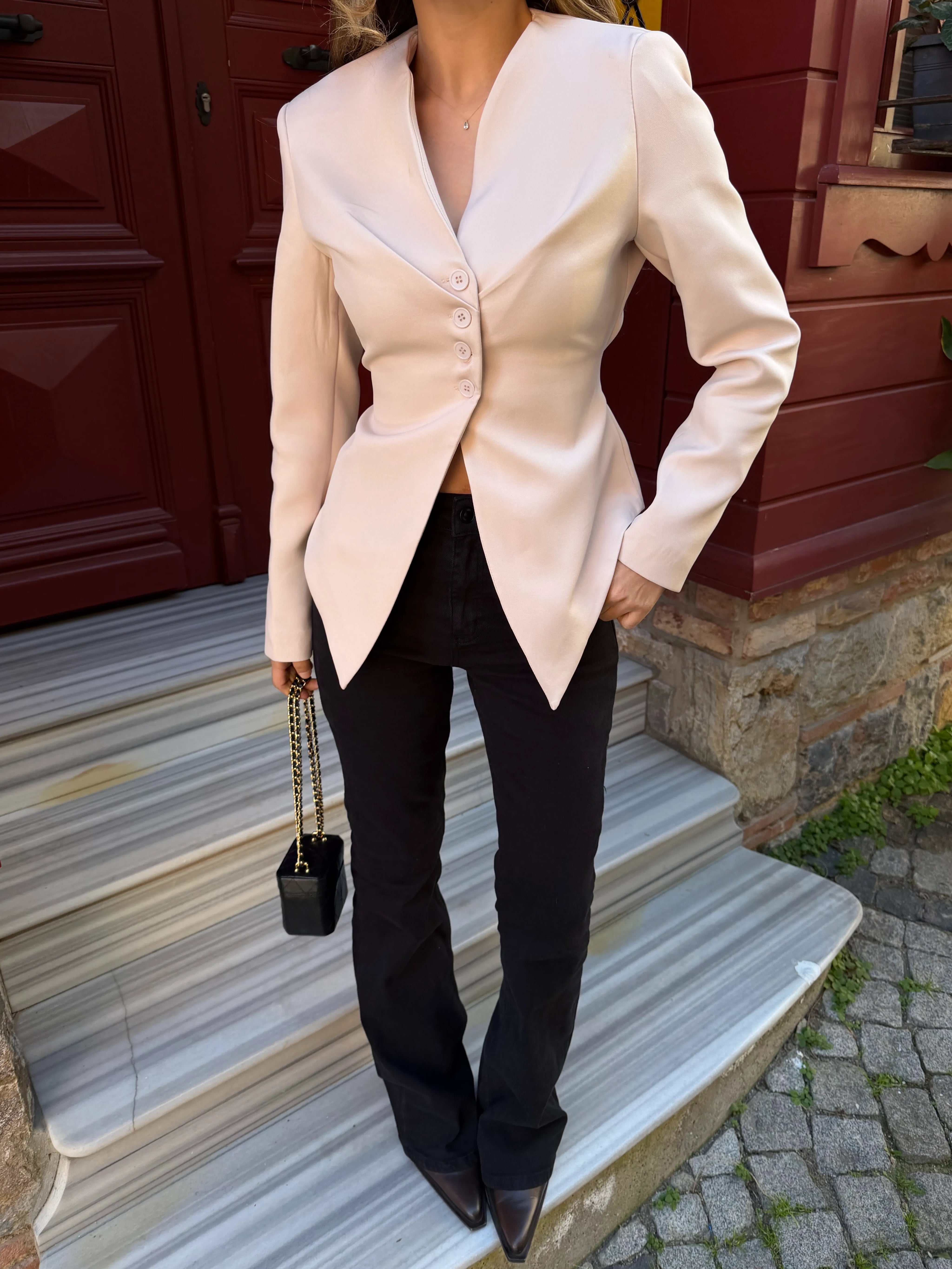 Minimal çizgilerin güçlü duruşla buluştuğu bu ceket, formu ile silüeti zarif şekilde vurgular. Ön kısmındaki düğme detayları tasarıma karakter katarken, bel hattını nazikçe saran kesimi modern ve feminen bir görünüm oluşturur. Günlük kombinlerden daha iddialı görünümlere kadar farklı stillerle kolayca uyum sağlayan bu parça, sade ama etkileyici bir stil arayanlar için ideal. Şıklığı çabasızca tamamlayan güçlü bir tamamlayıcı.