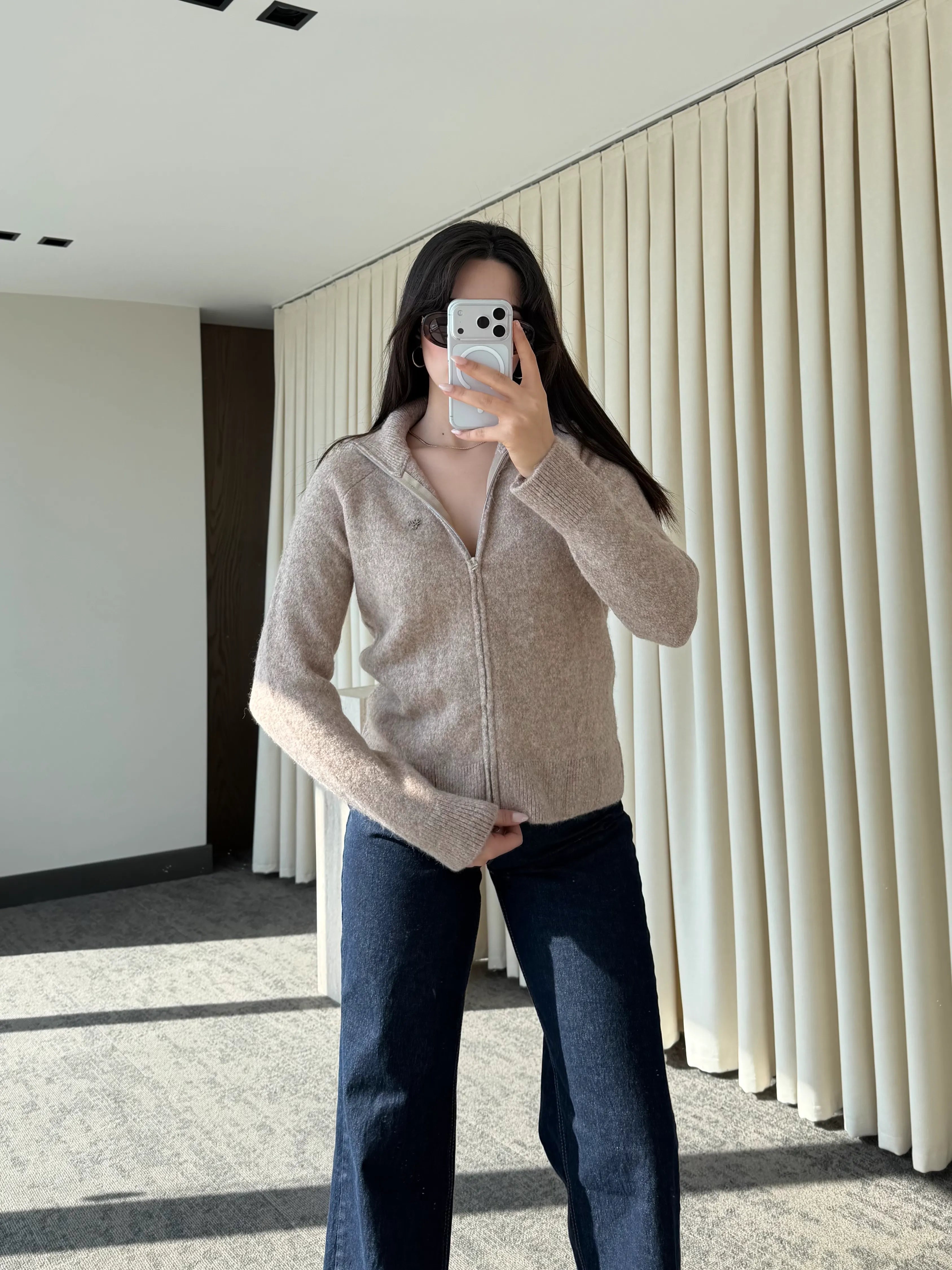• Bej Balıkçı Yaka Çift Fermuarlı Hırka - 251108