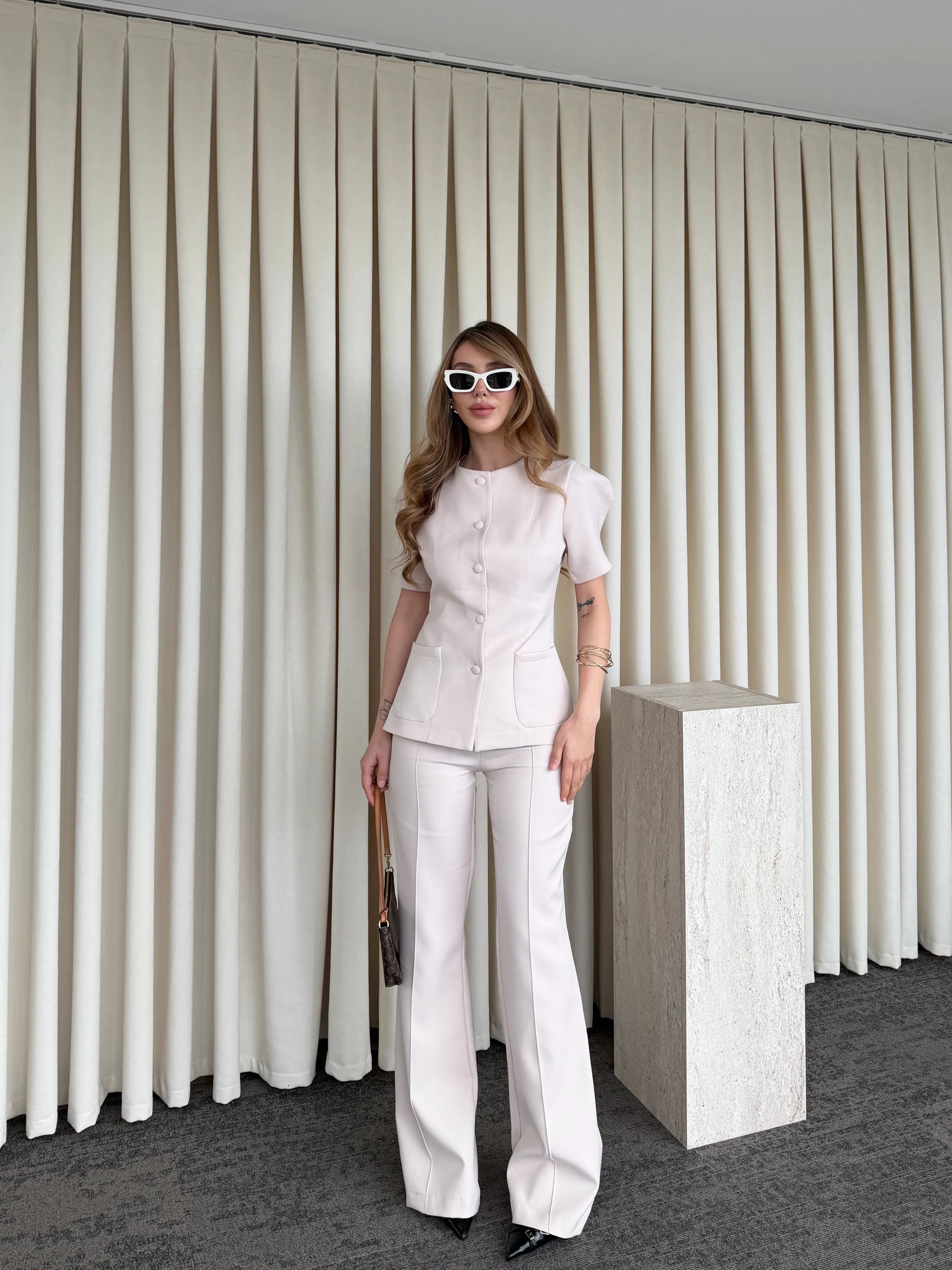 Ofis kombinlerinden özel davetlere kadar geniş bir kullanım alanı sunan bu takım, minimal dokunuşlarla maksimum etki yaratmak isteyenler için tasarlandı. Tek adımda güçlü bir görünüm elde etmek isteyenlerin favorisi olmaya aday.