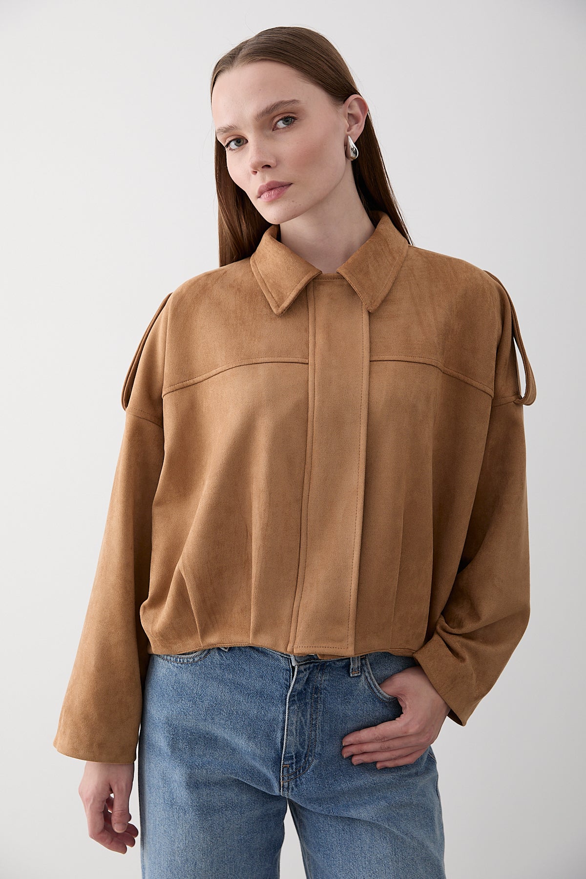 Kahverengi Bağlamalı Şifon Bluz - 5024