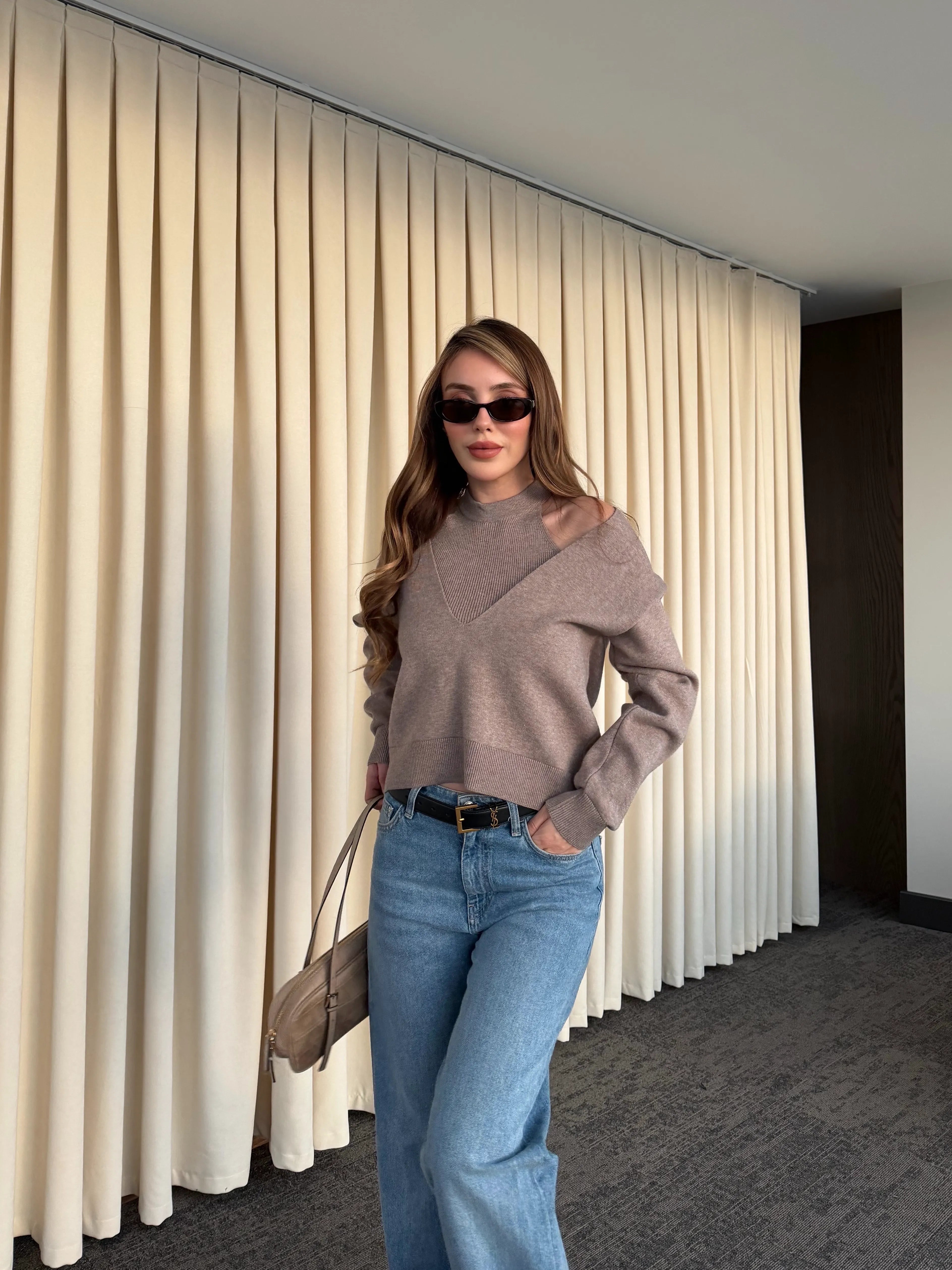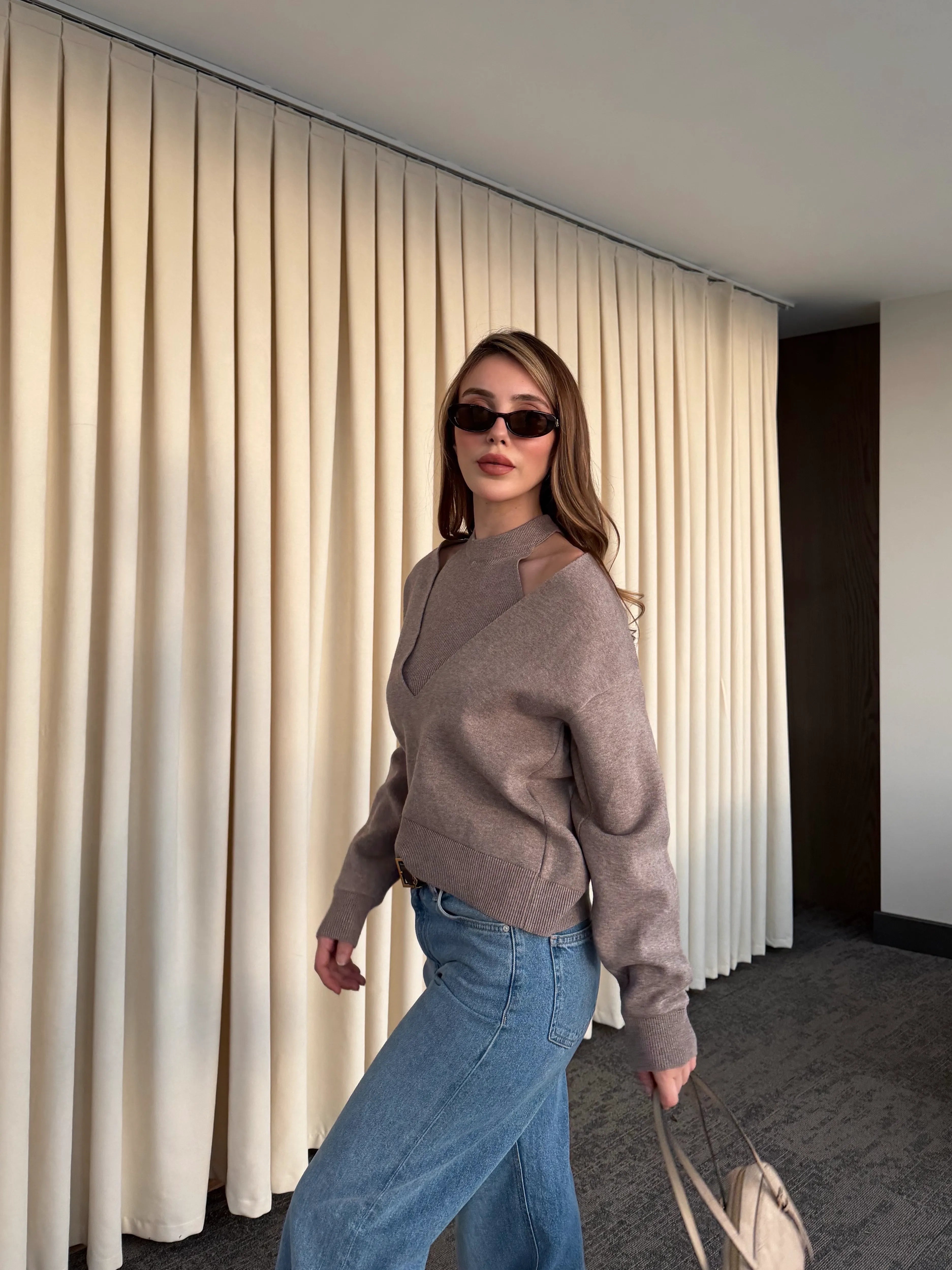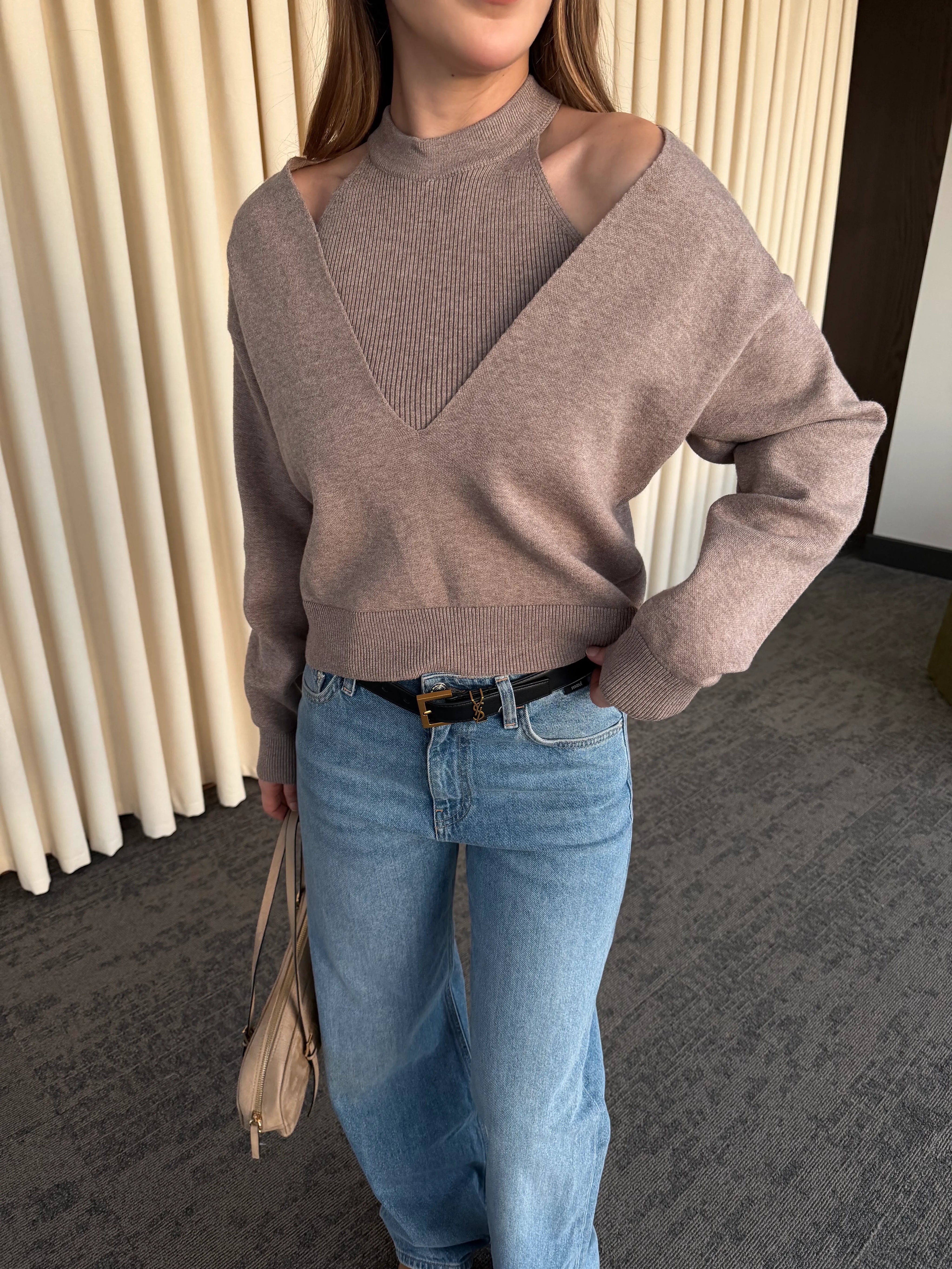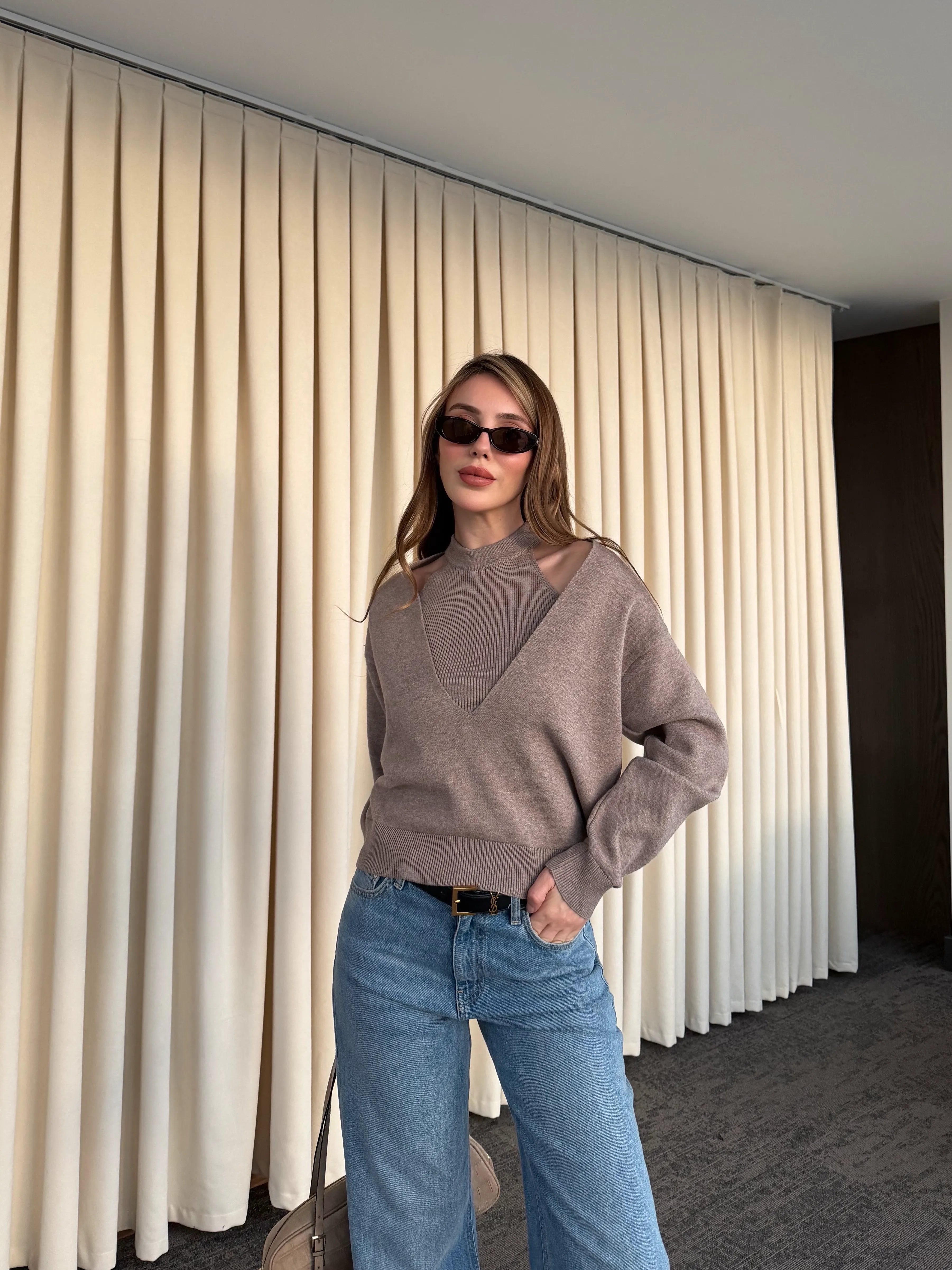 - Bej İkili V Yaka Kazak - 251206