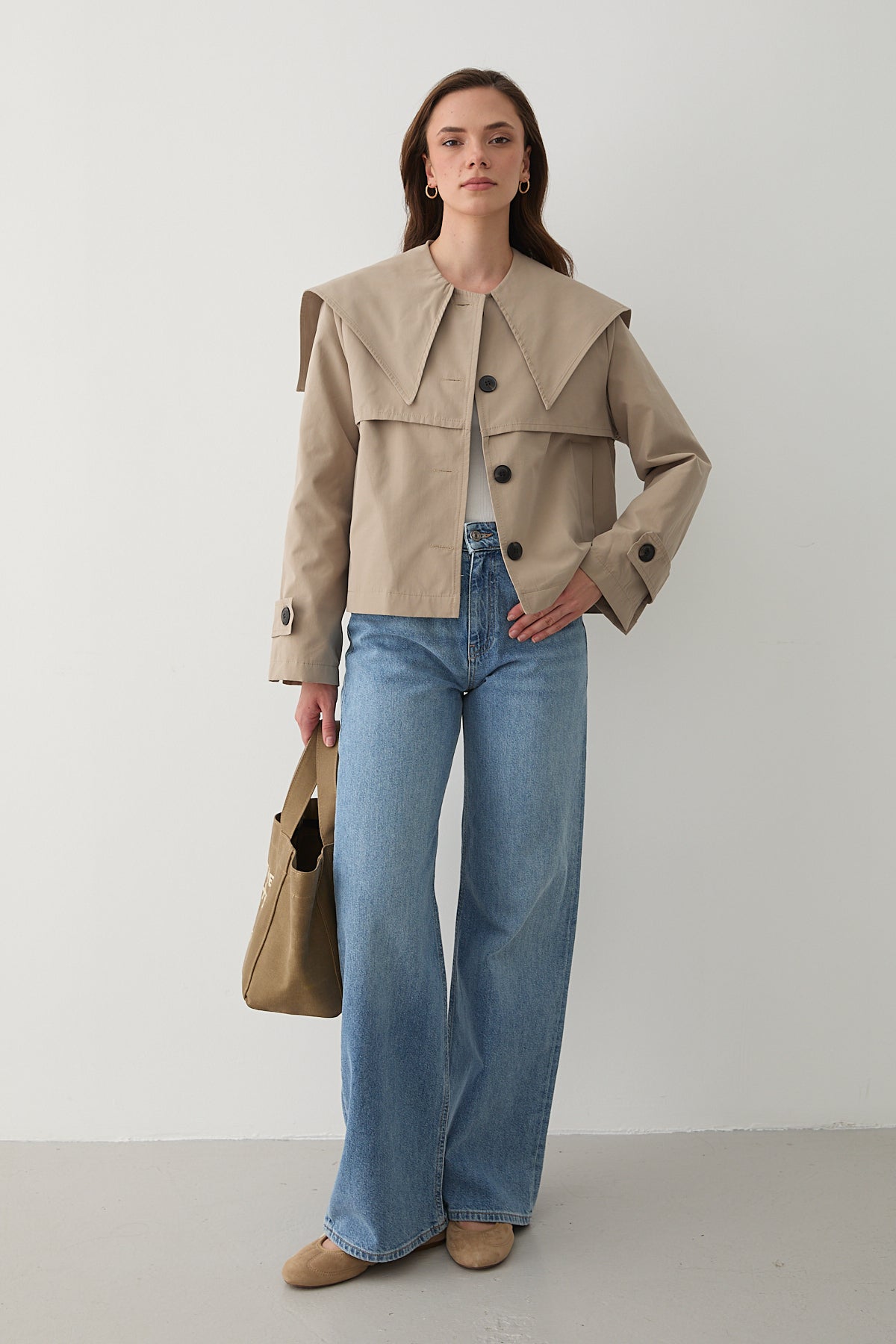 - Bej Sakura Geniş Yaka Kısa Trençkot - 7530