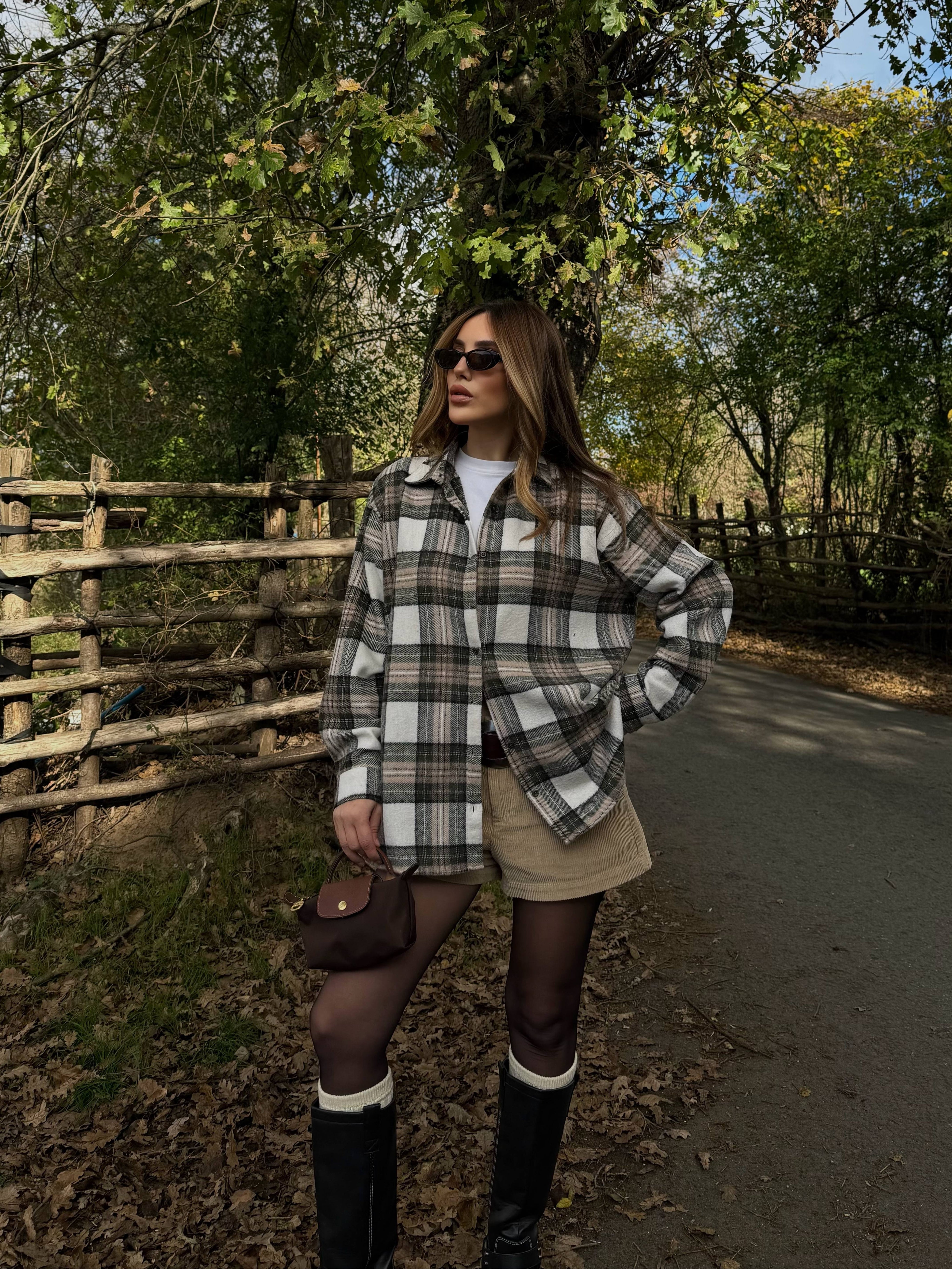 - Bej - Siyah Ekoseli Gömlek - 251065