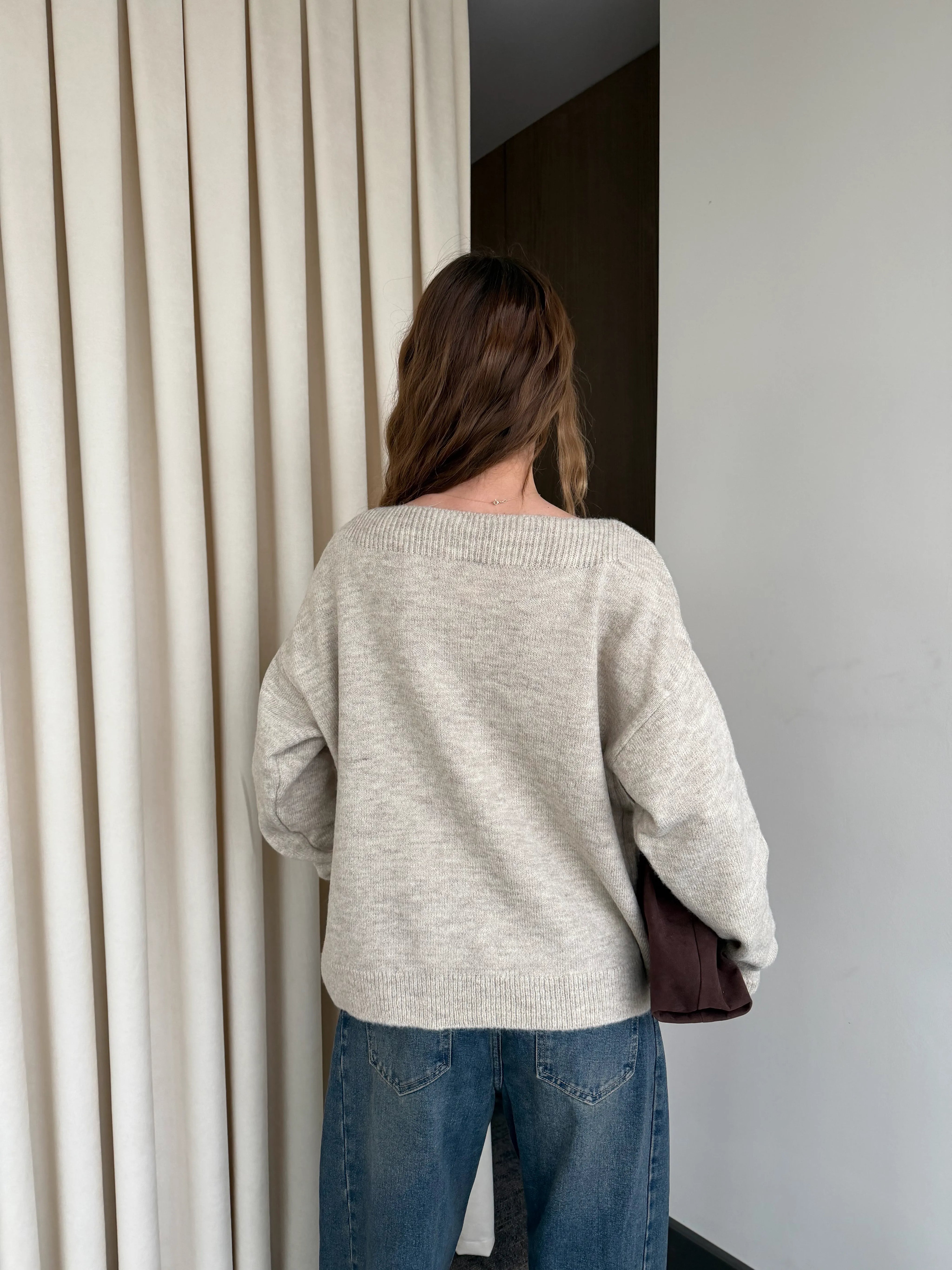 Bej Taş İşlemeli Kayık Yaka Kazak - 251189