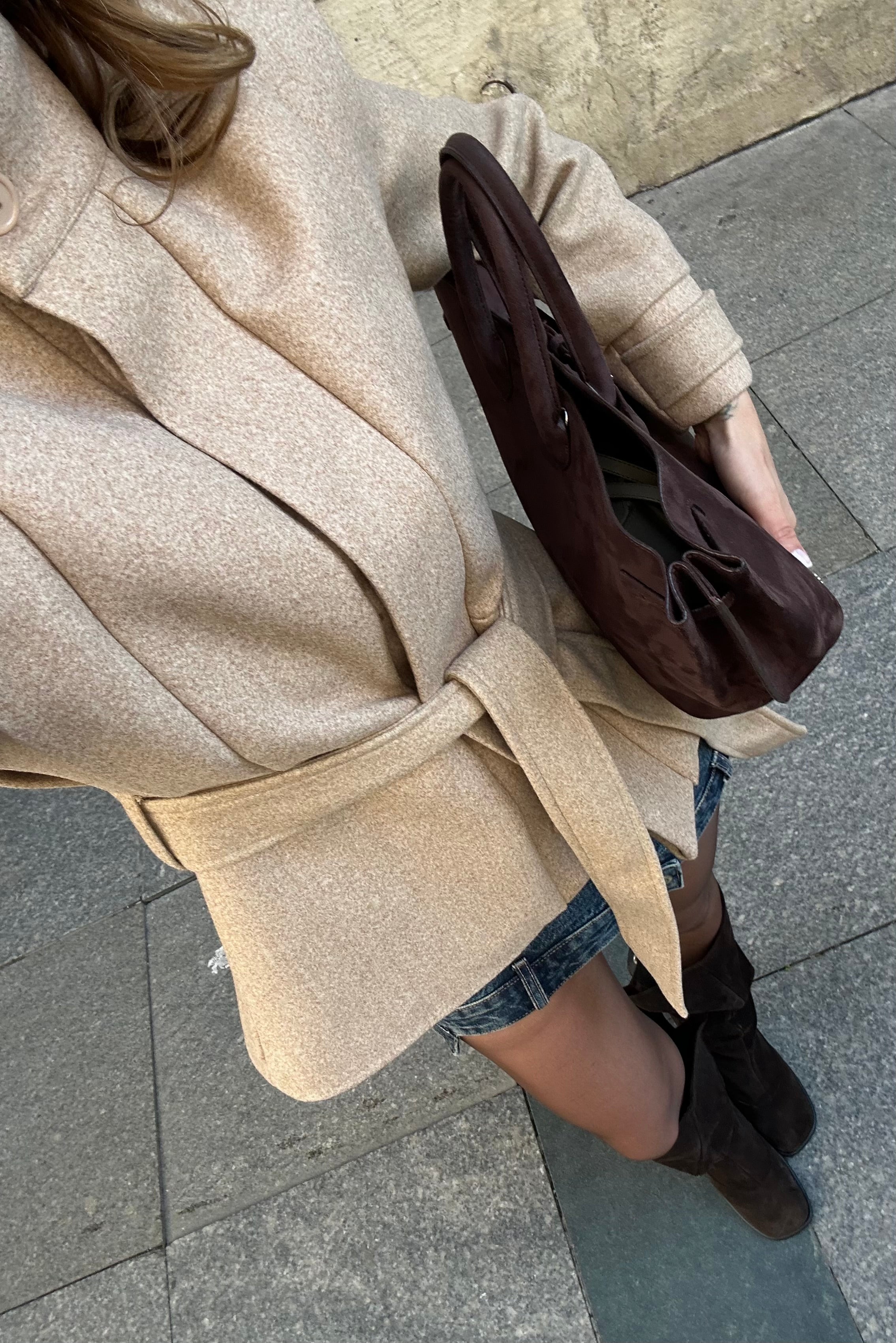 - Bej Vatkalı Kuşaklı Kaşe Ceket - 1001