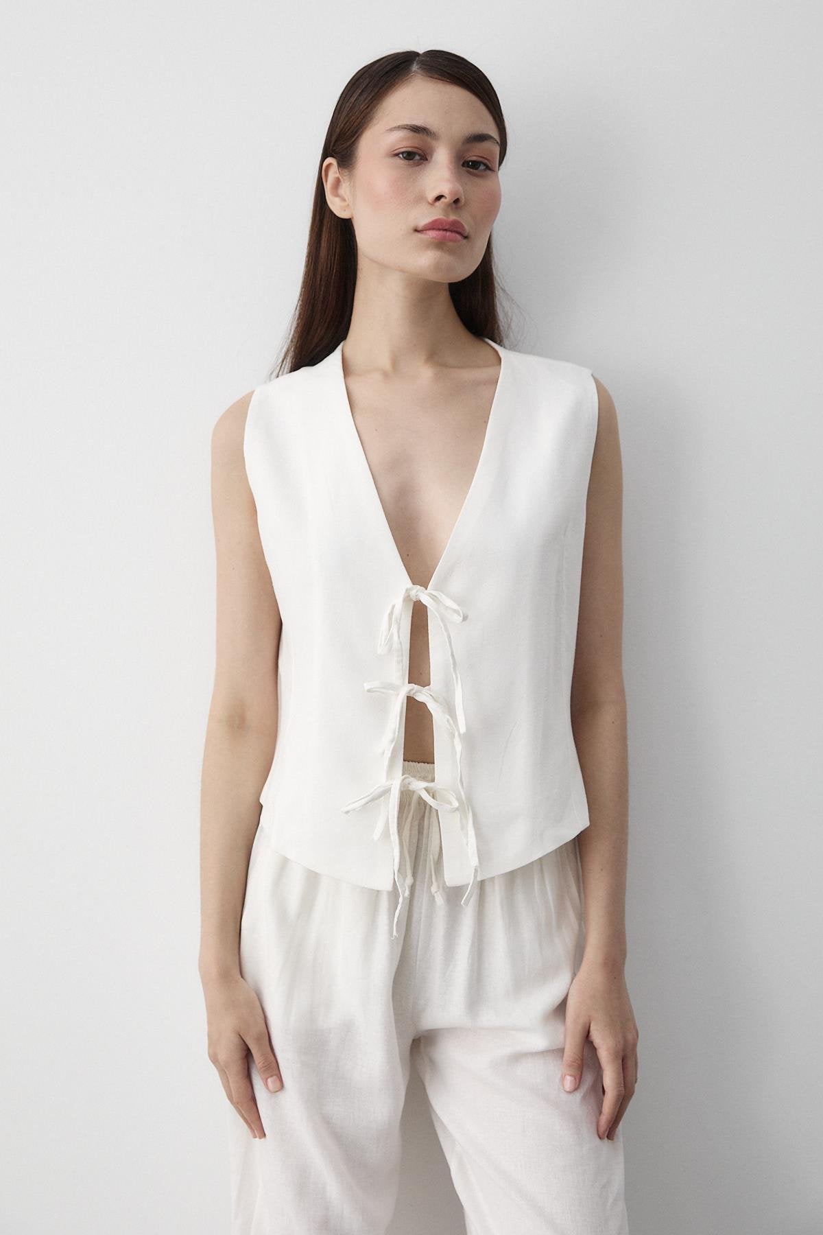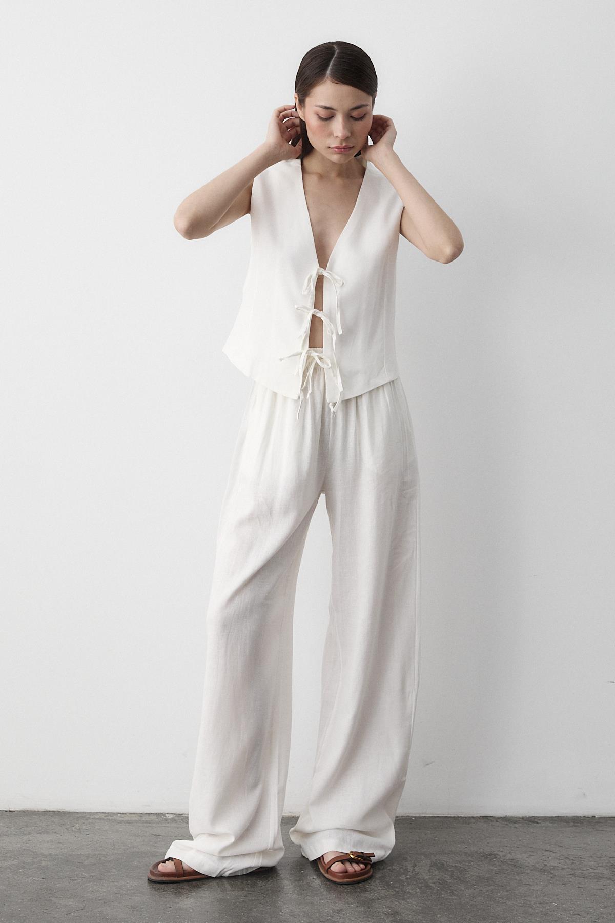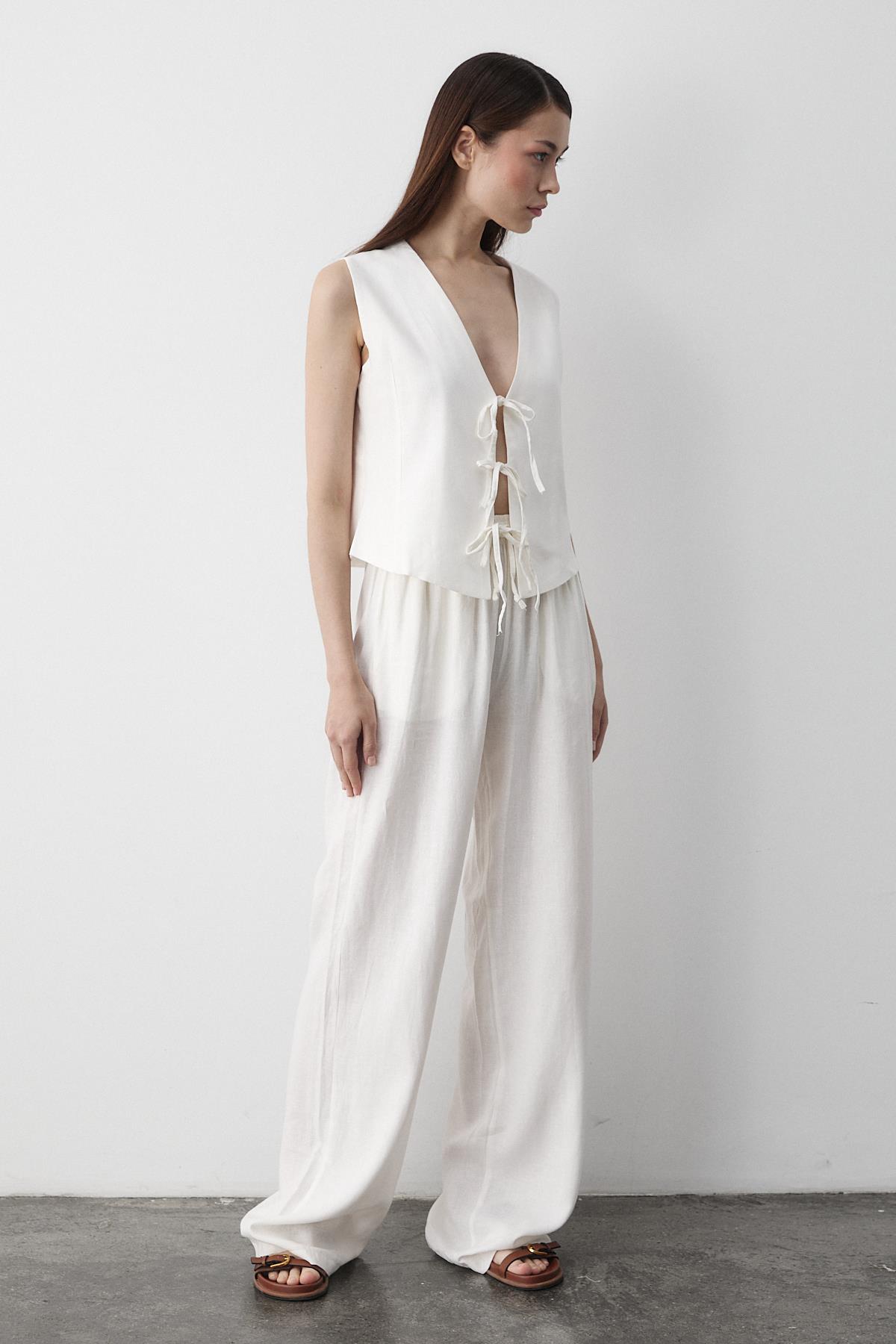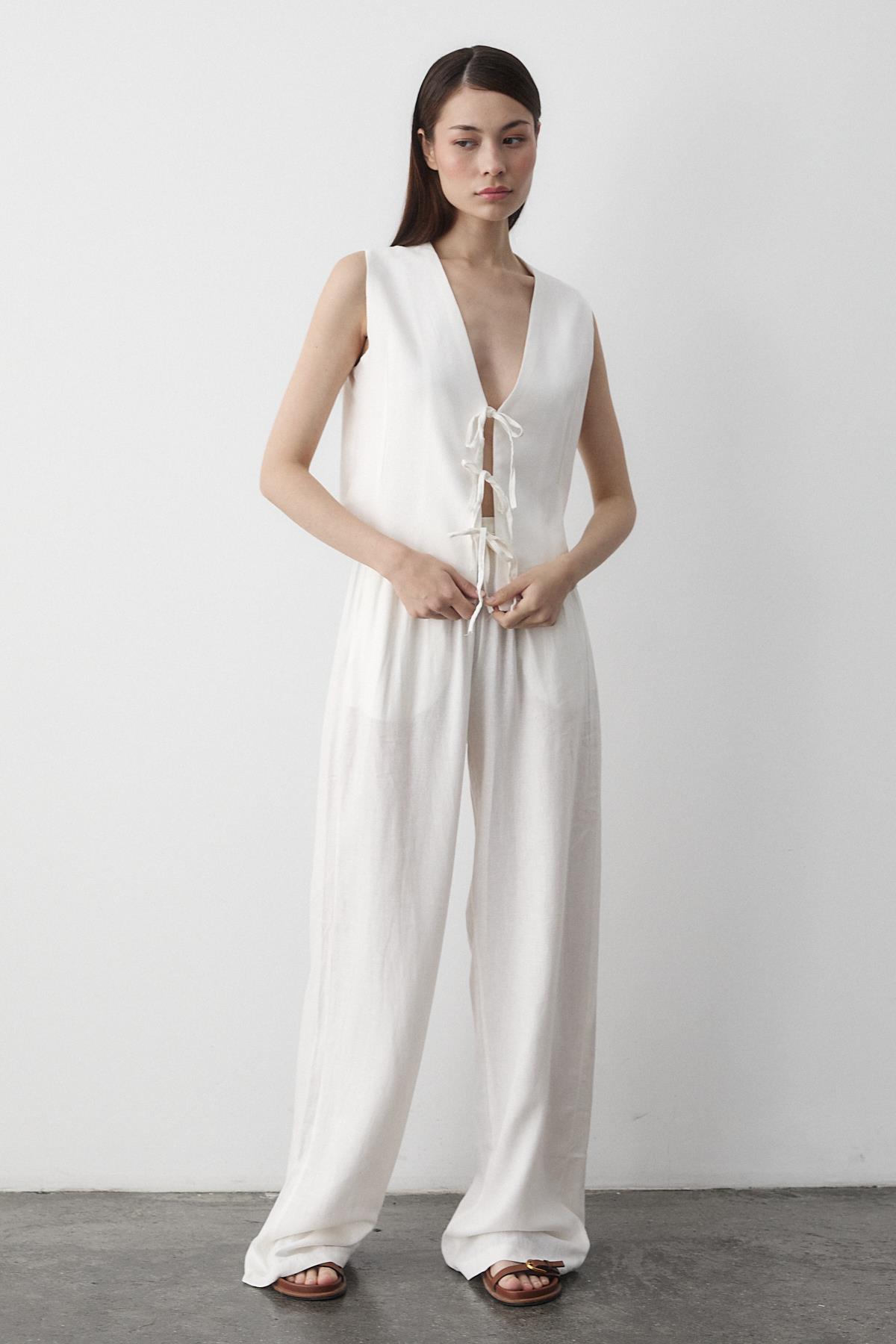 - Beyaz 3 Bağcıklı Yelekli Müslin Takım