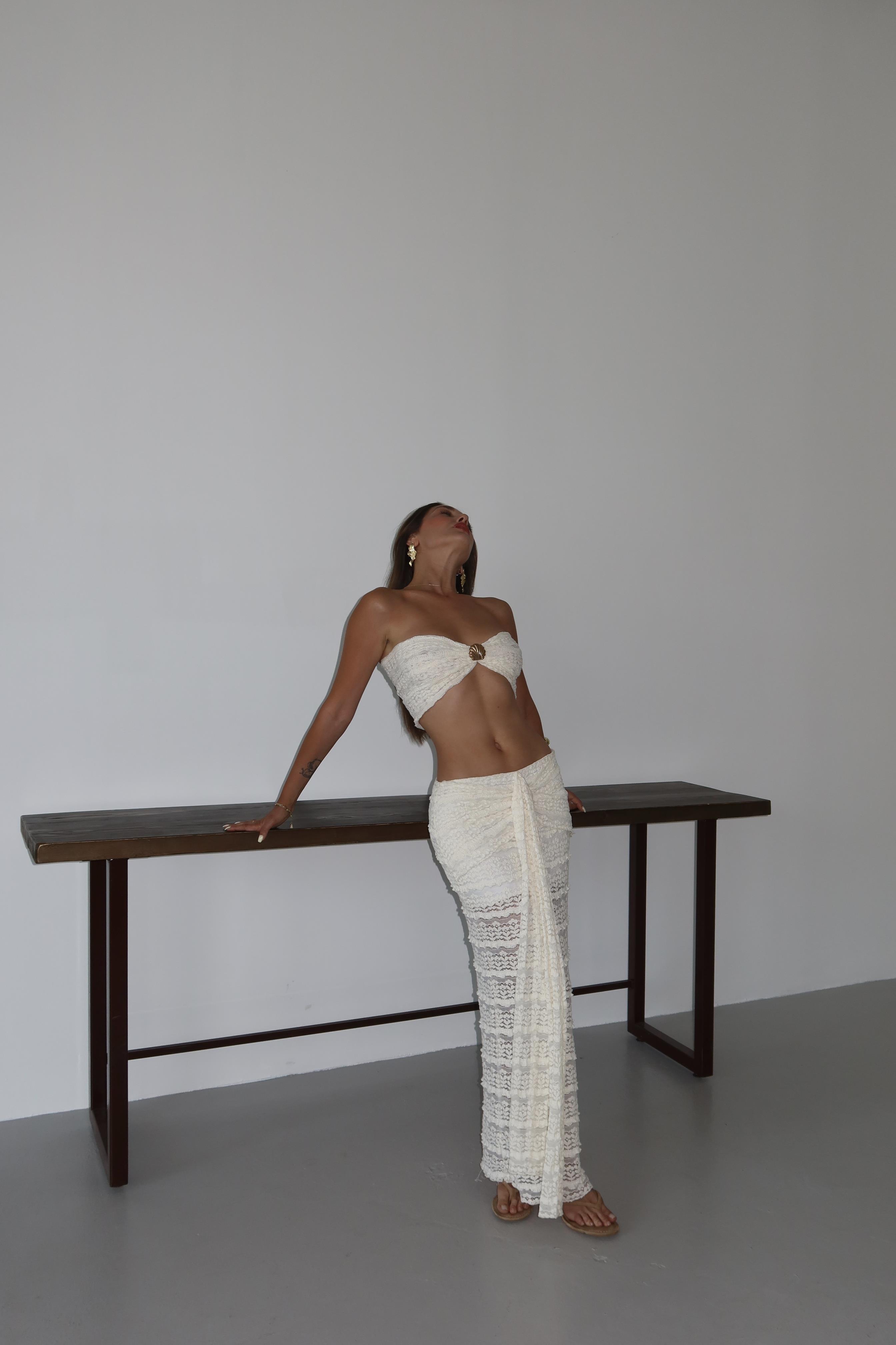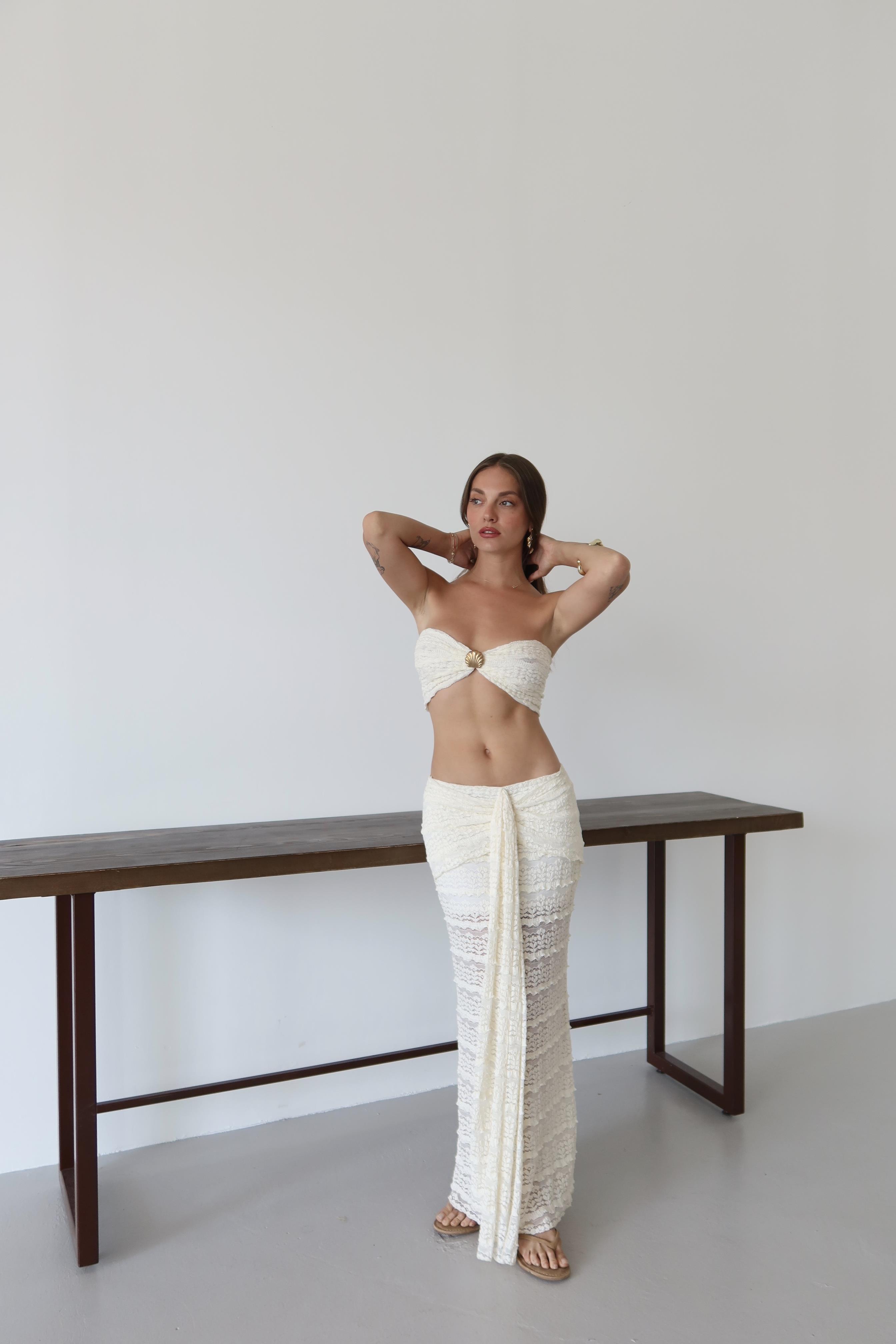 - Beyaz Dantel Detaylı Crop Takım