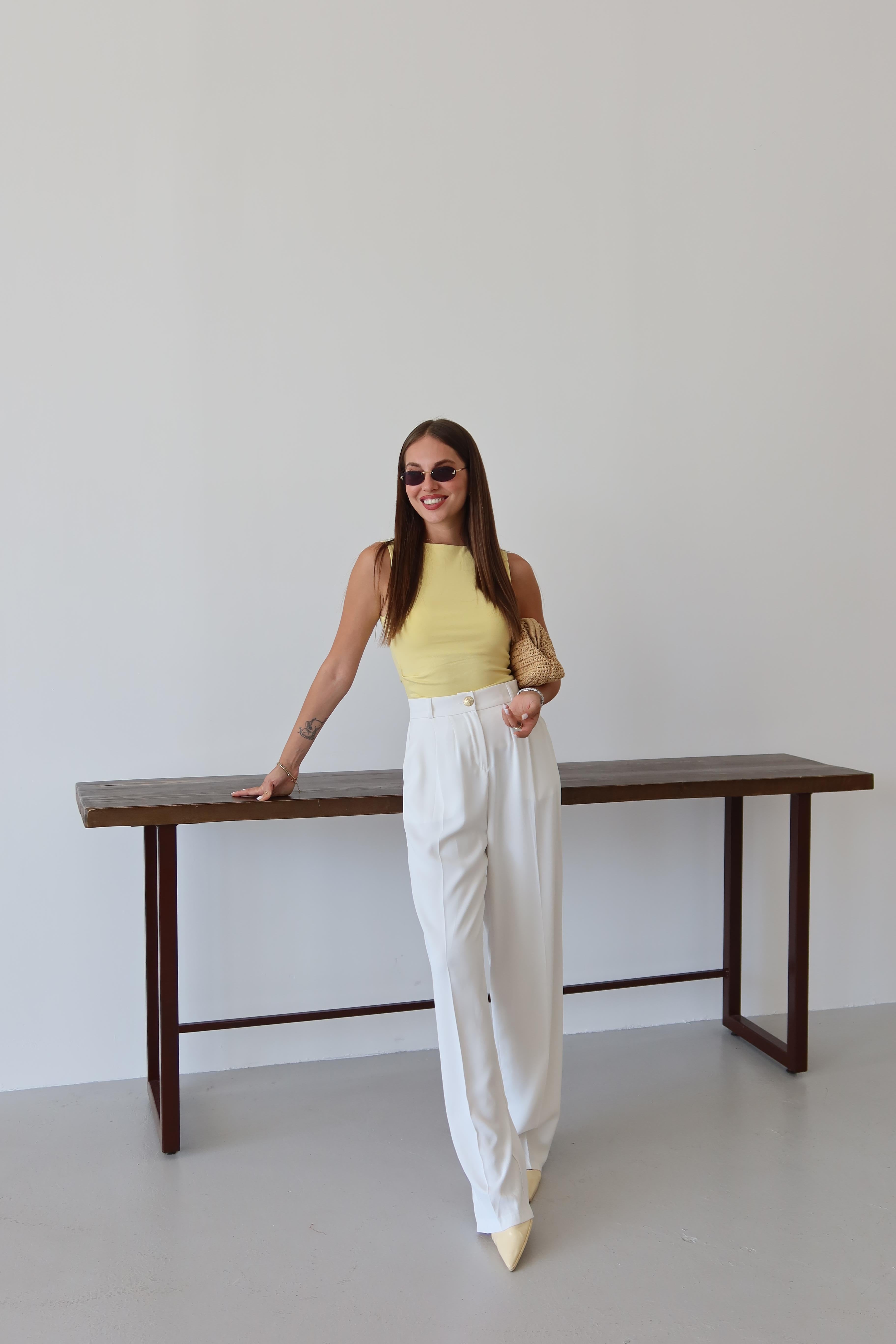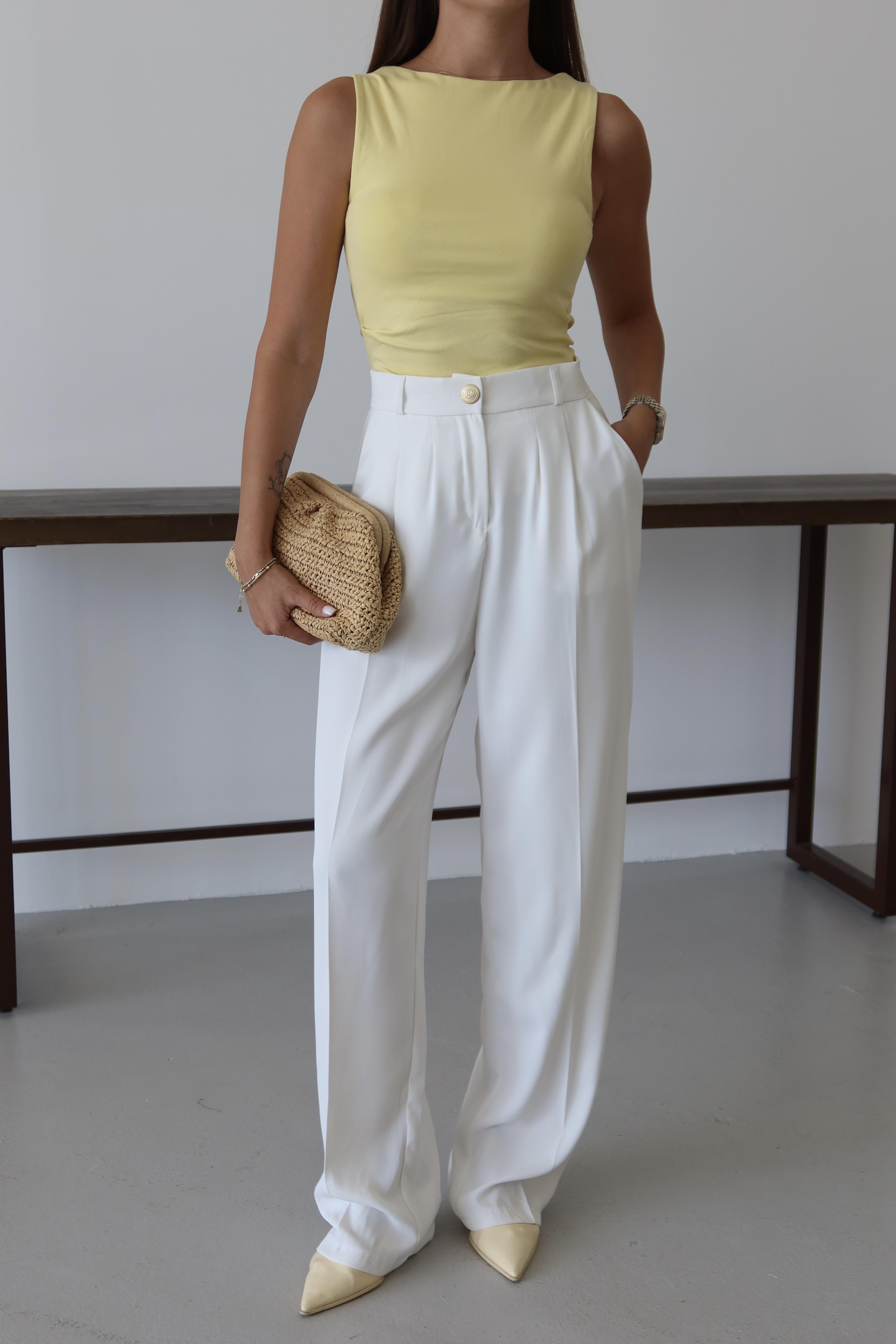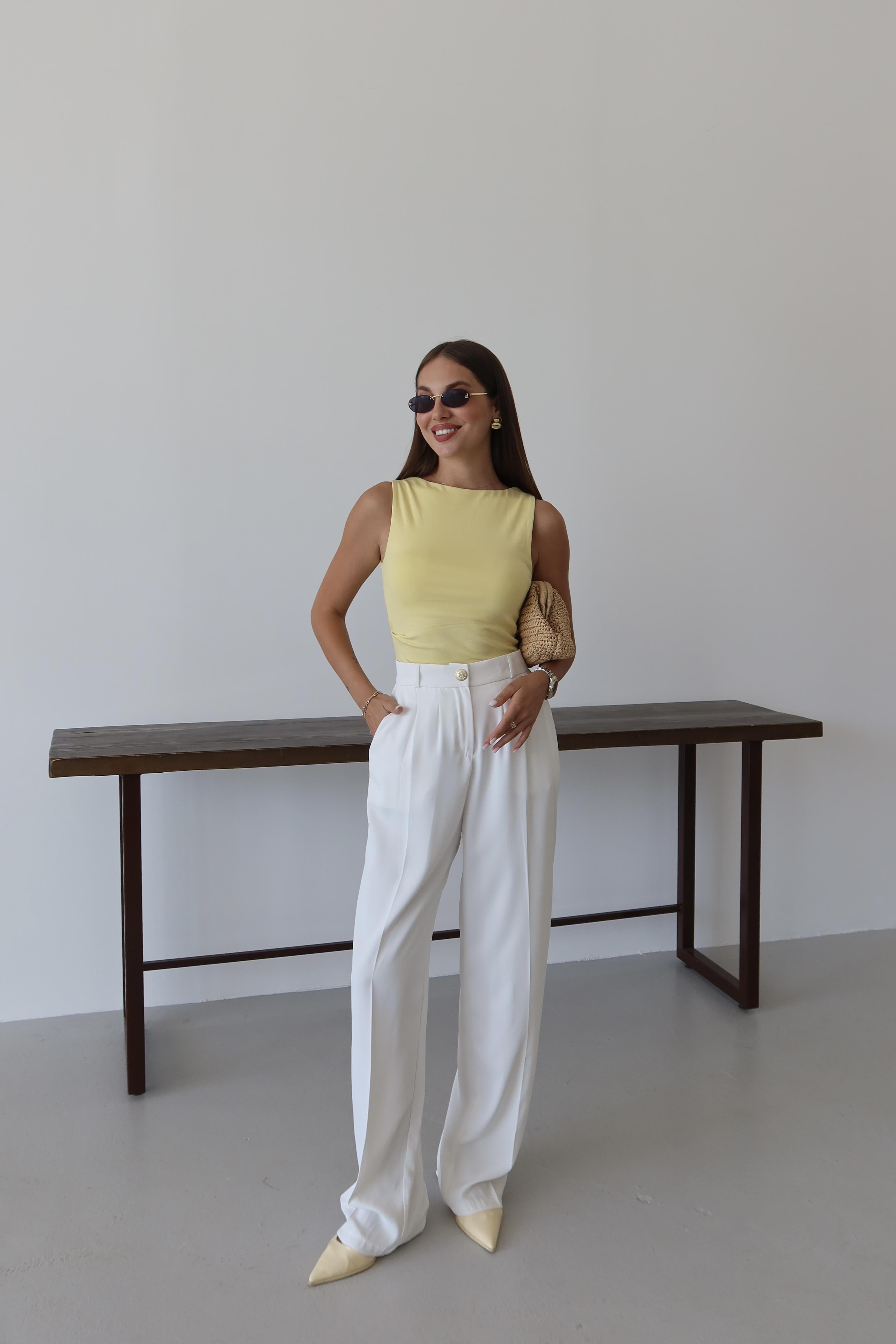 - Beyaz Gold Düğmeli Beli Lastikli Palazzo Pantolon