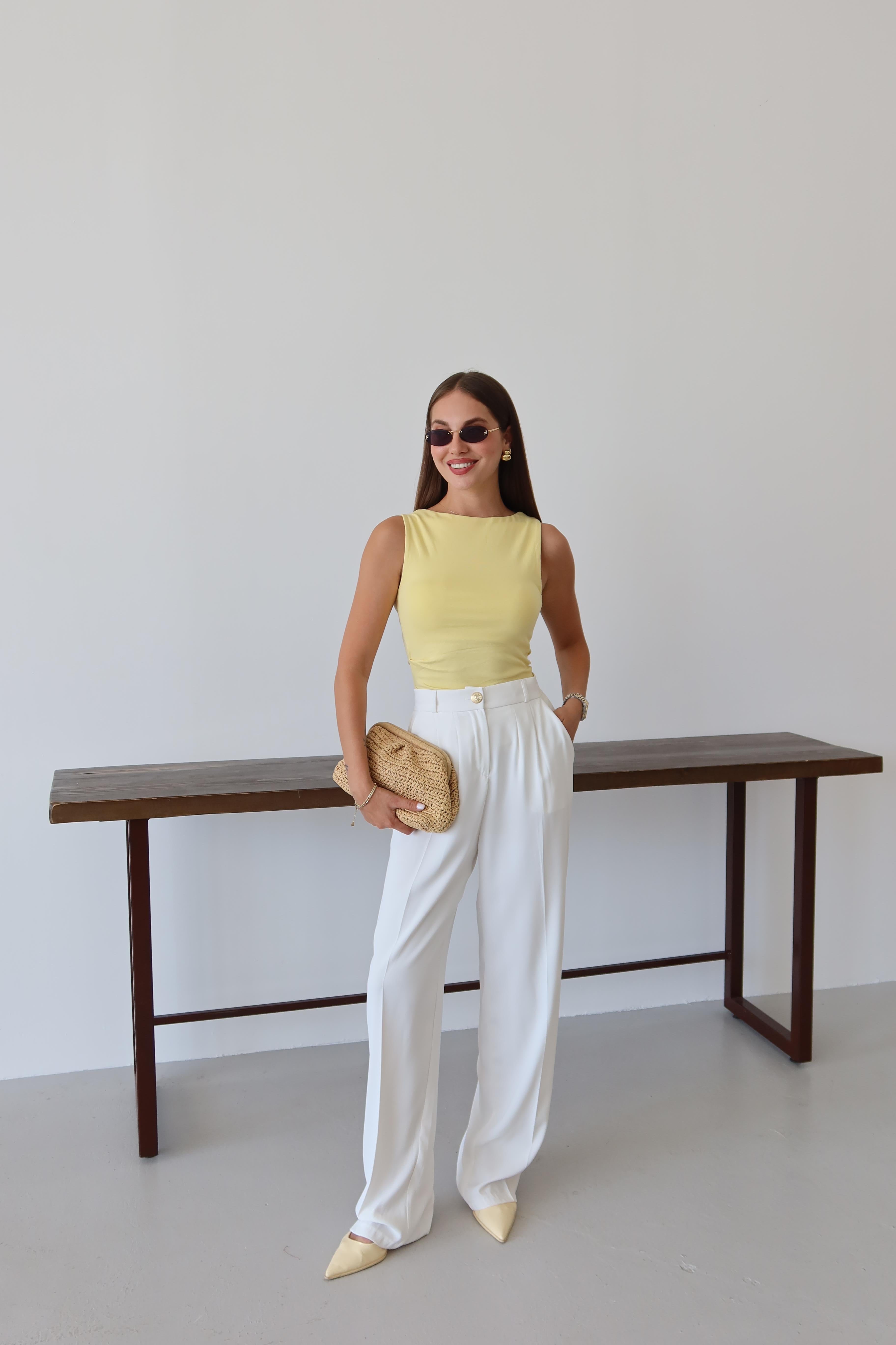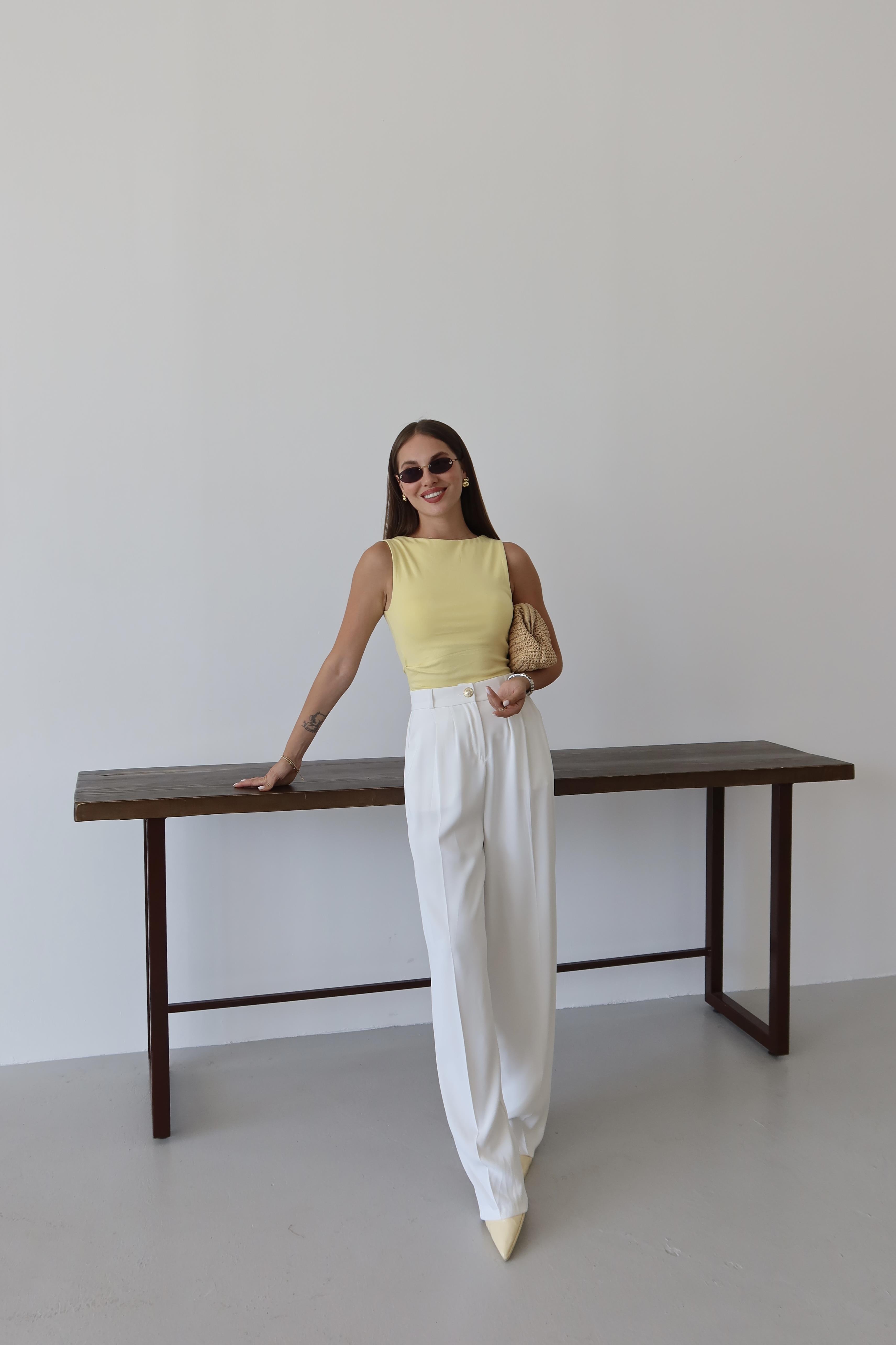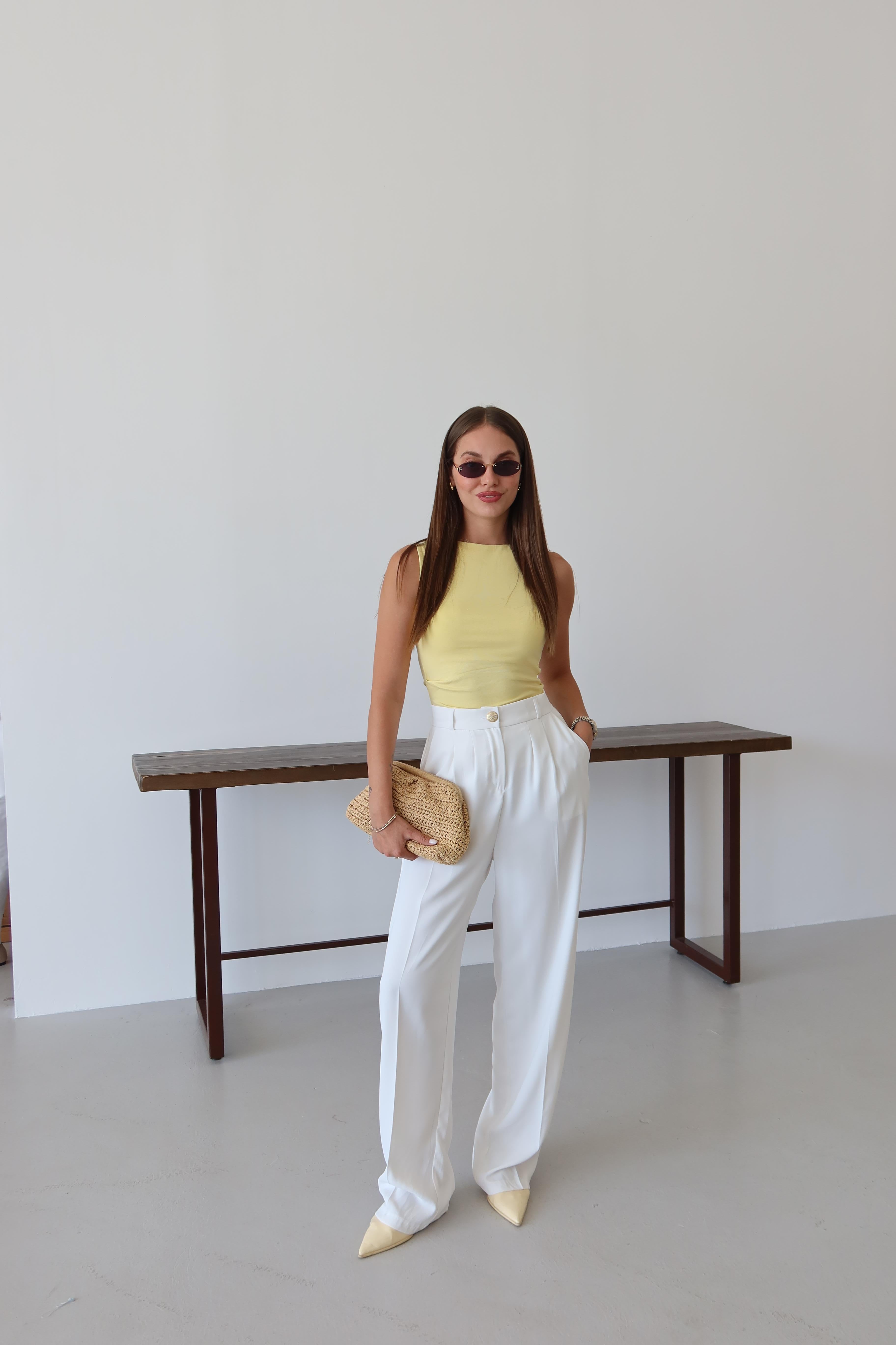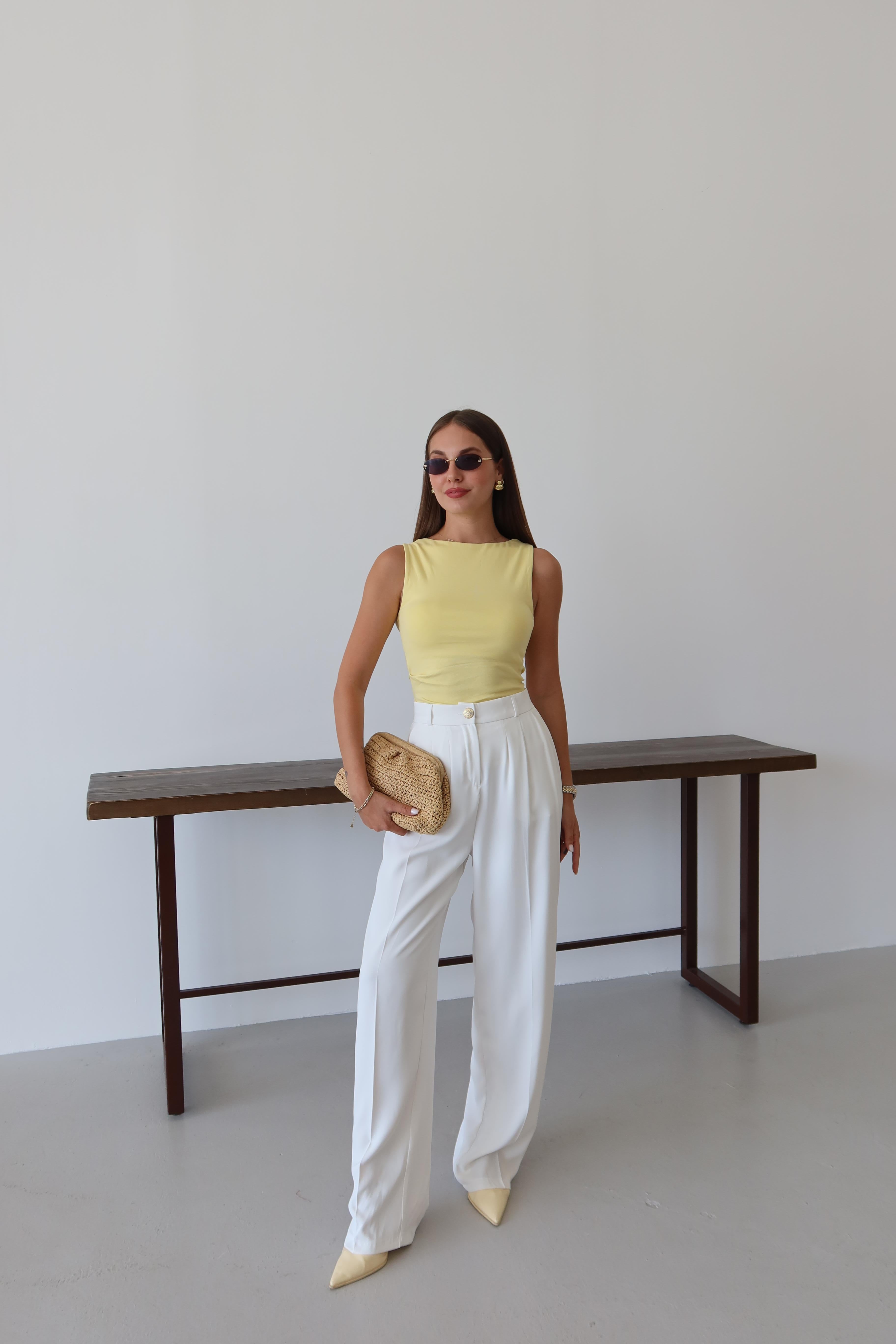 - Beyaz Gold Düğmeli Beli Lastikli Palazzo Pantolon
