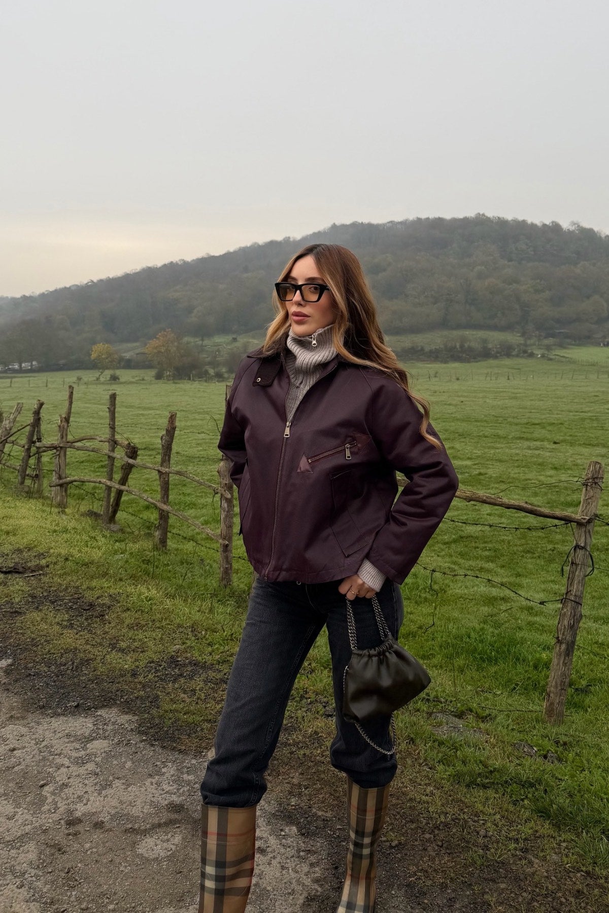 Bordo Cepli Kadife Yaka Ceket - 5124