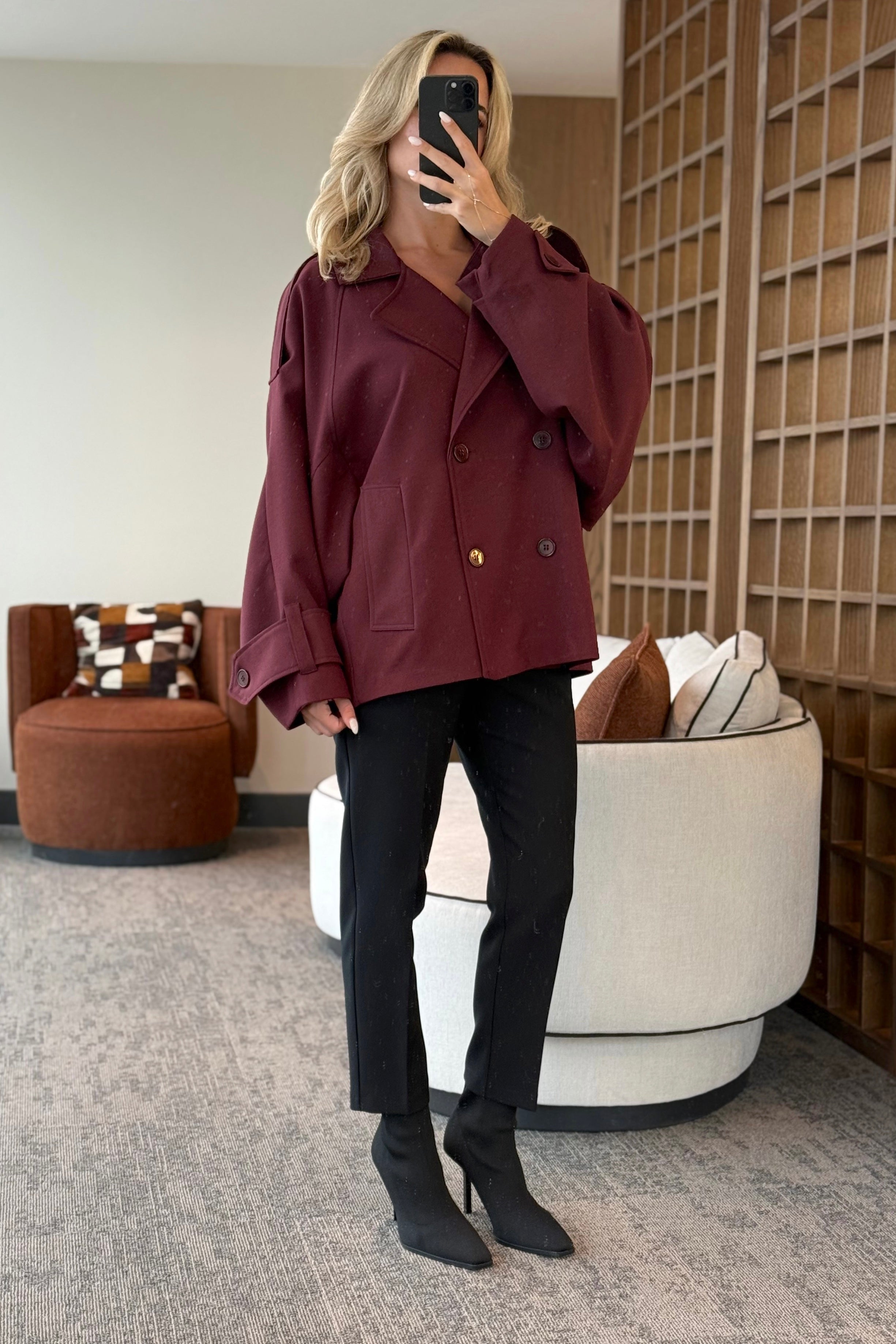 - Bordo Kruvaze Kısa Trençkot - 7537