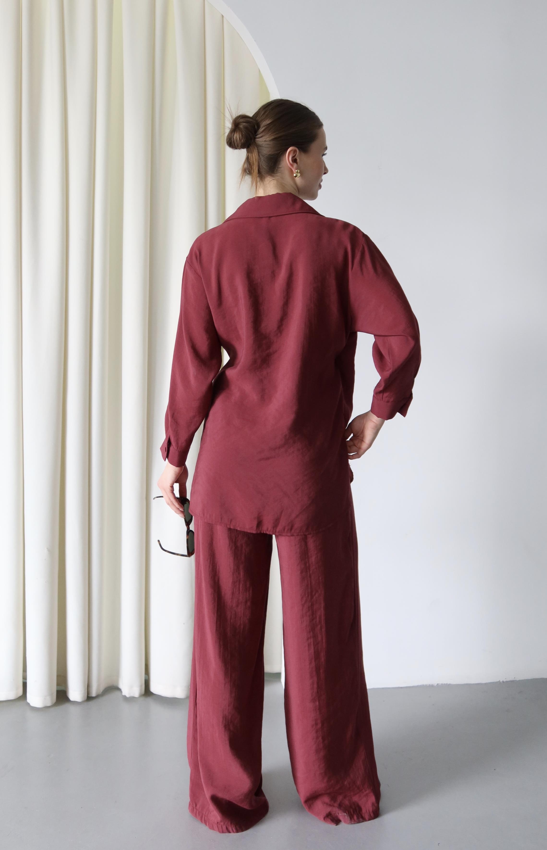 - Bordo Yaka Detaylı Bağlamalı Kimono Takım