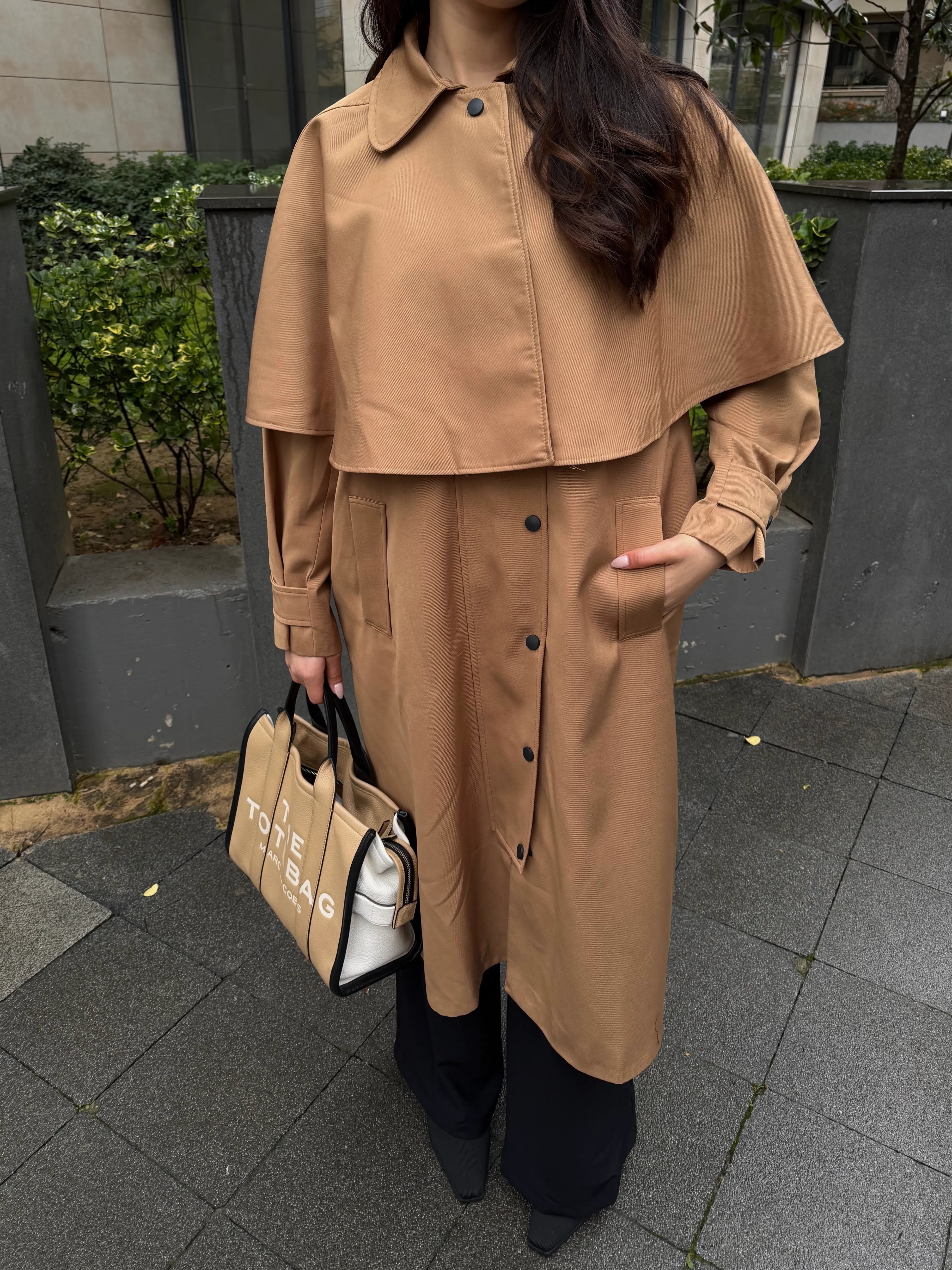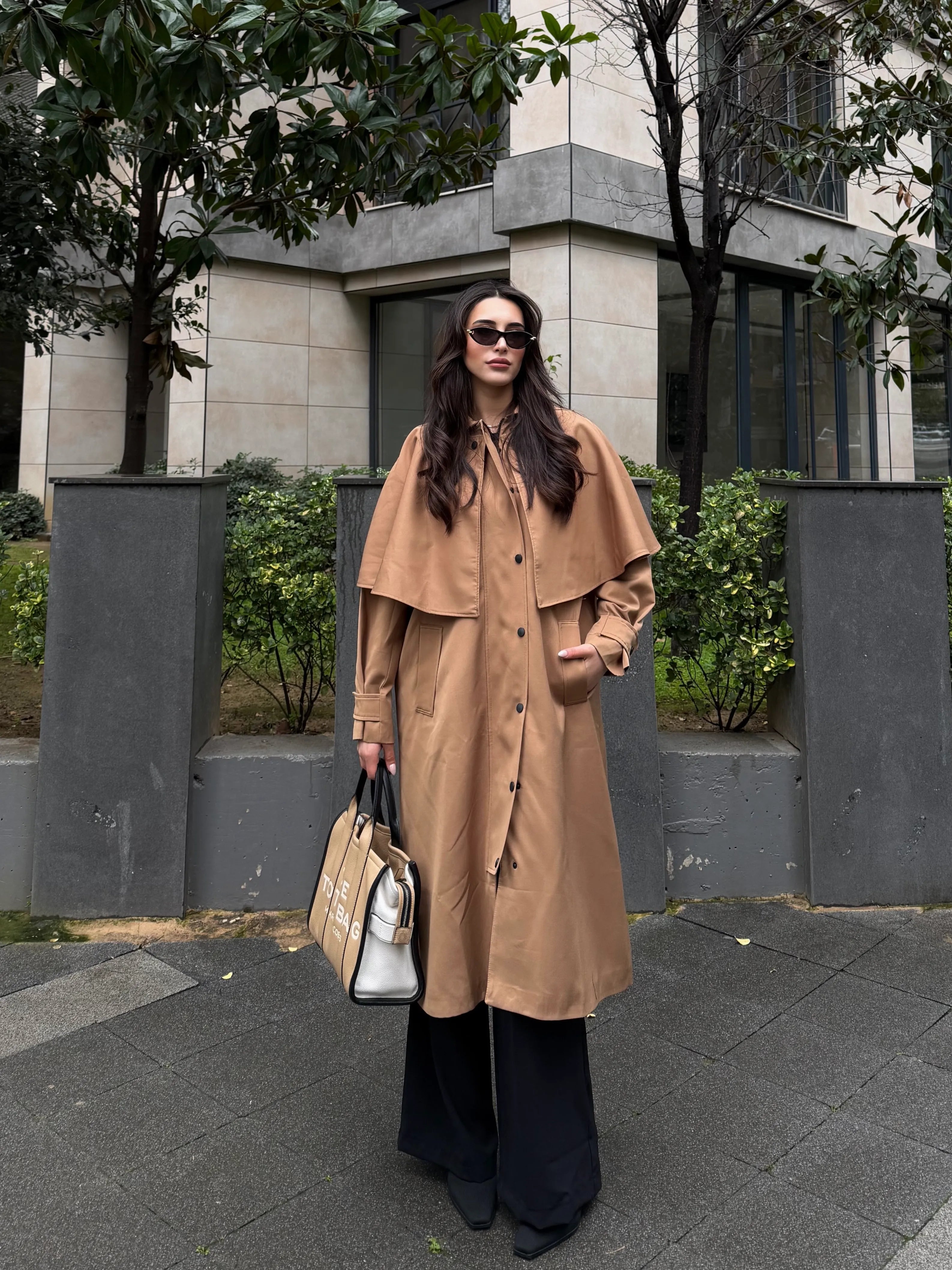 Zamansız tasarımı, güçlü duruşu ve pratik detaylarıyla öne çıkan bu trençkot; gardırobunuzun en kurtarıcı parçalarından biri olmaya aday.