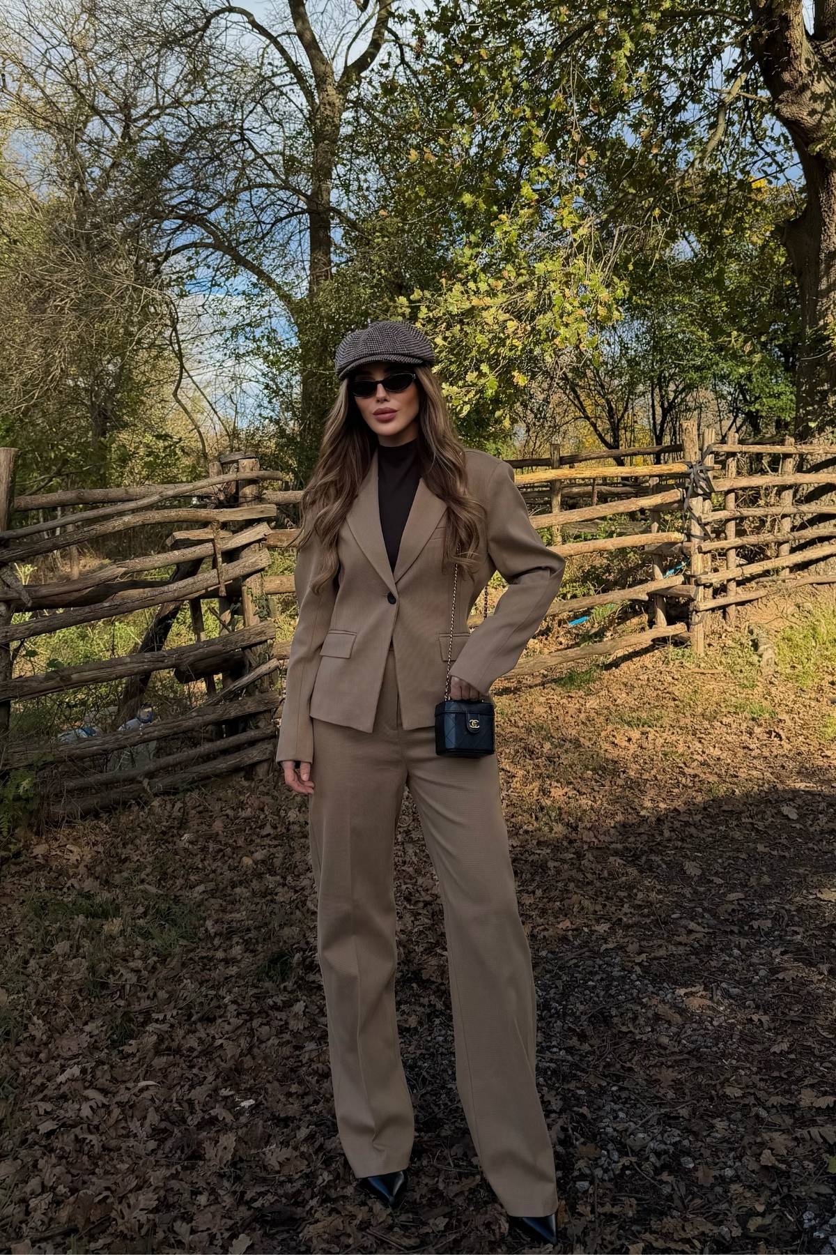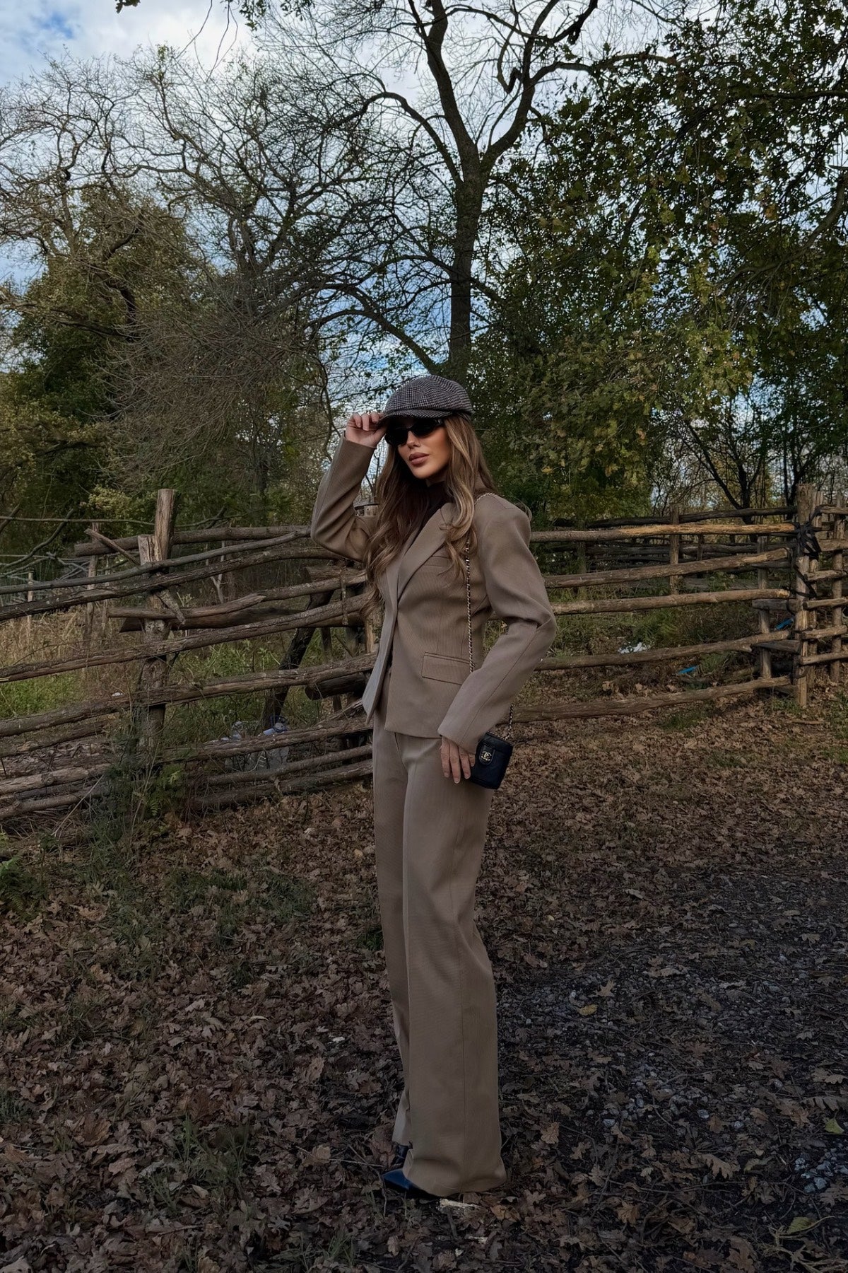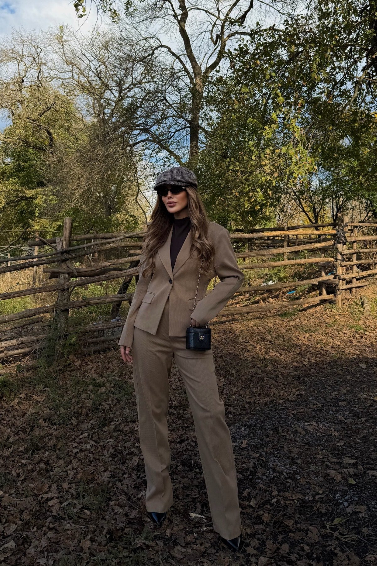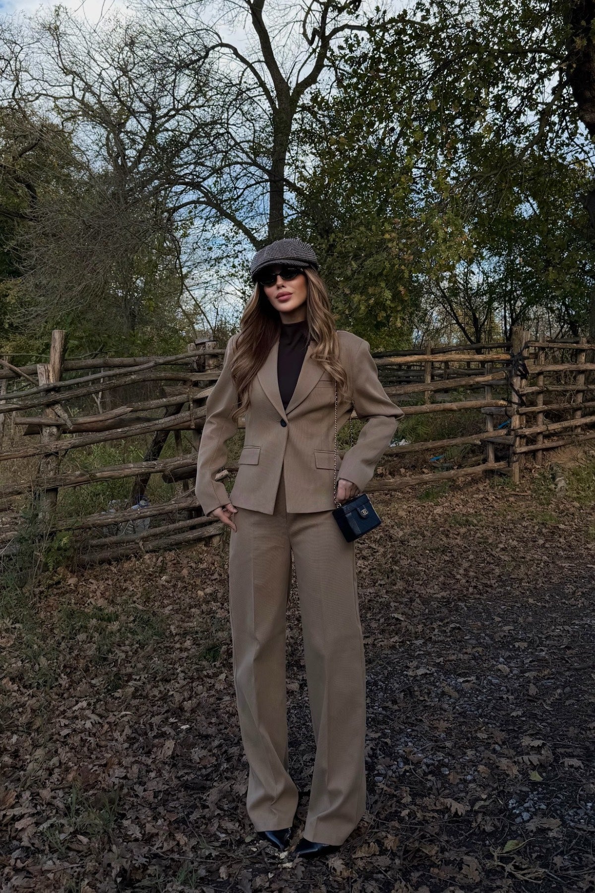 - Camel Tek Düğmeli Ceket Pantolon Takım - 9480