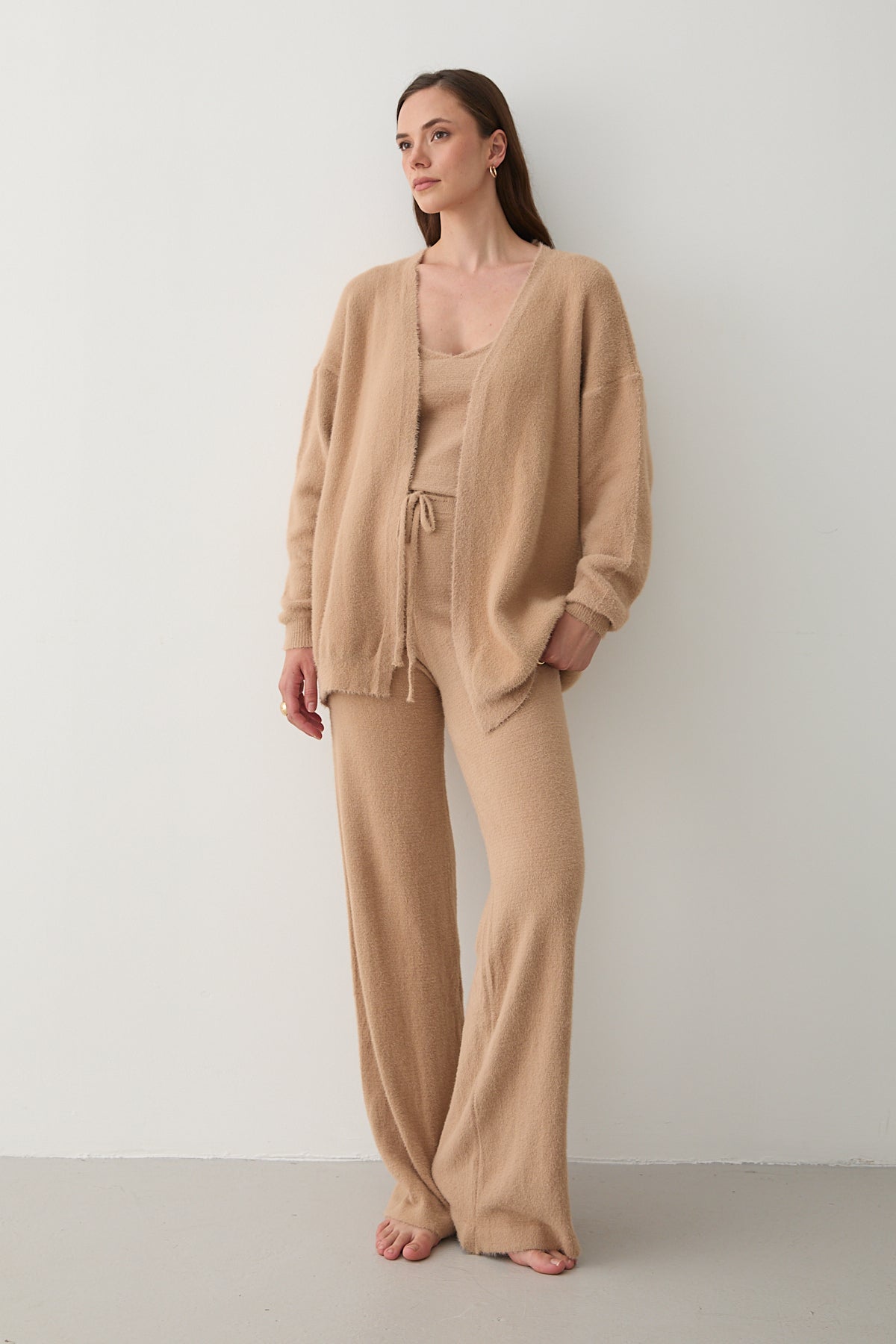 Bej Taş İşlemeli Kayık Yaka Kazak - 251189