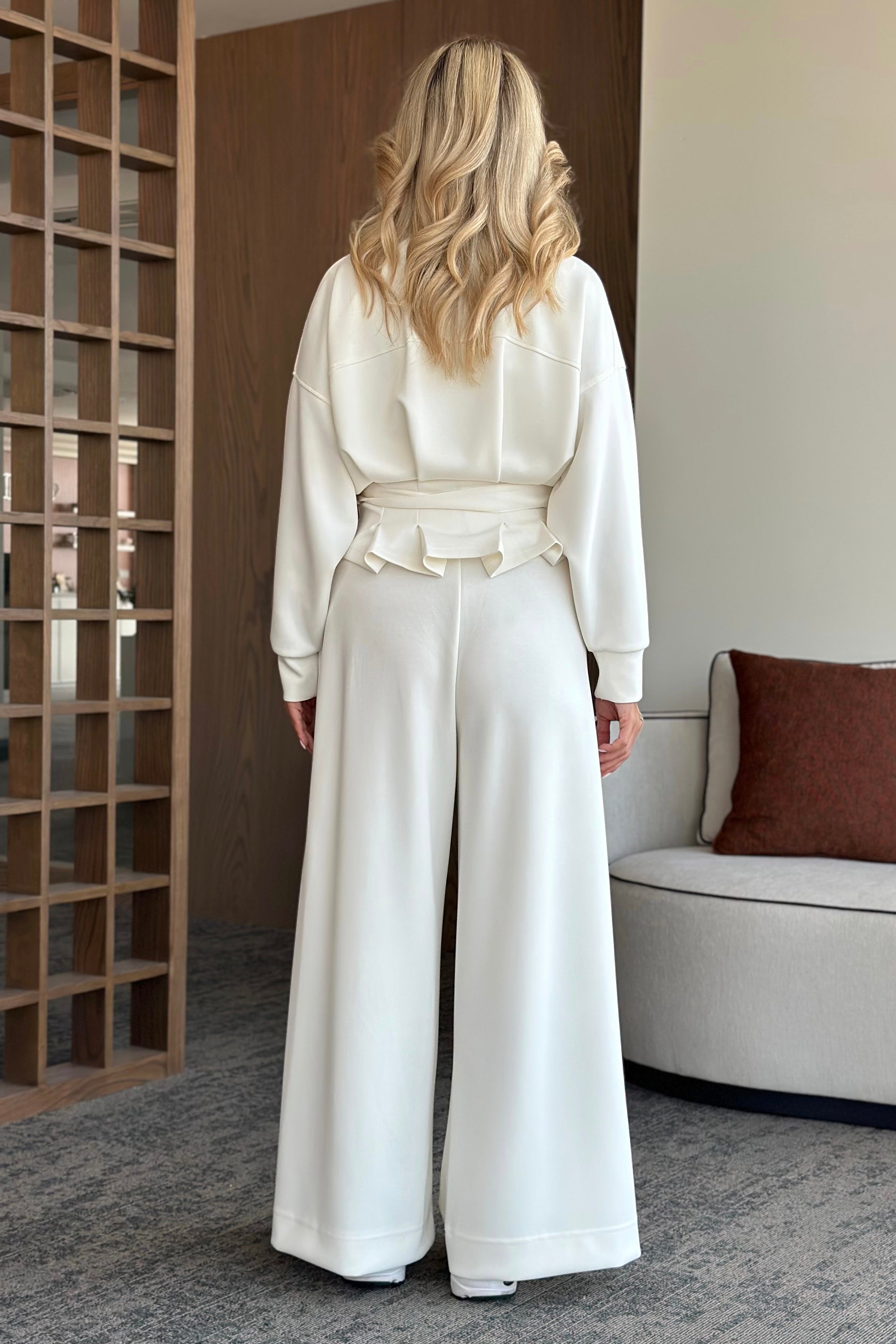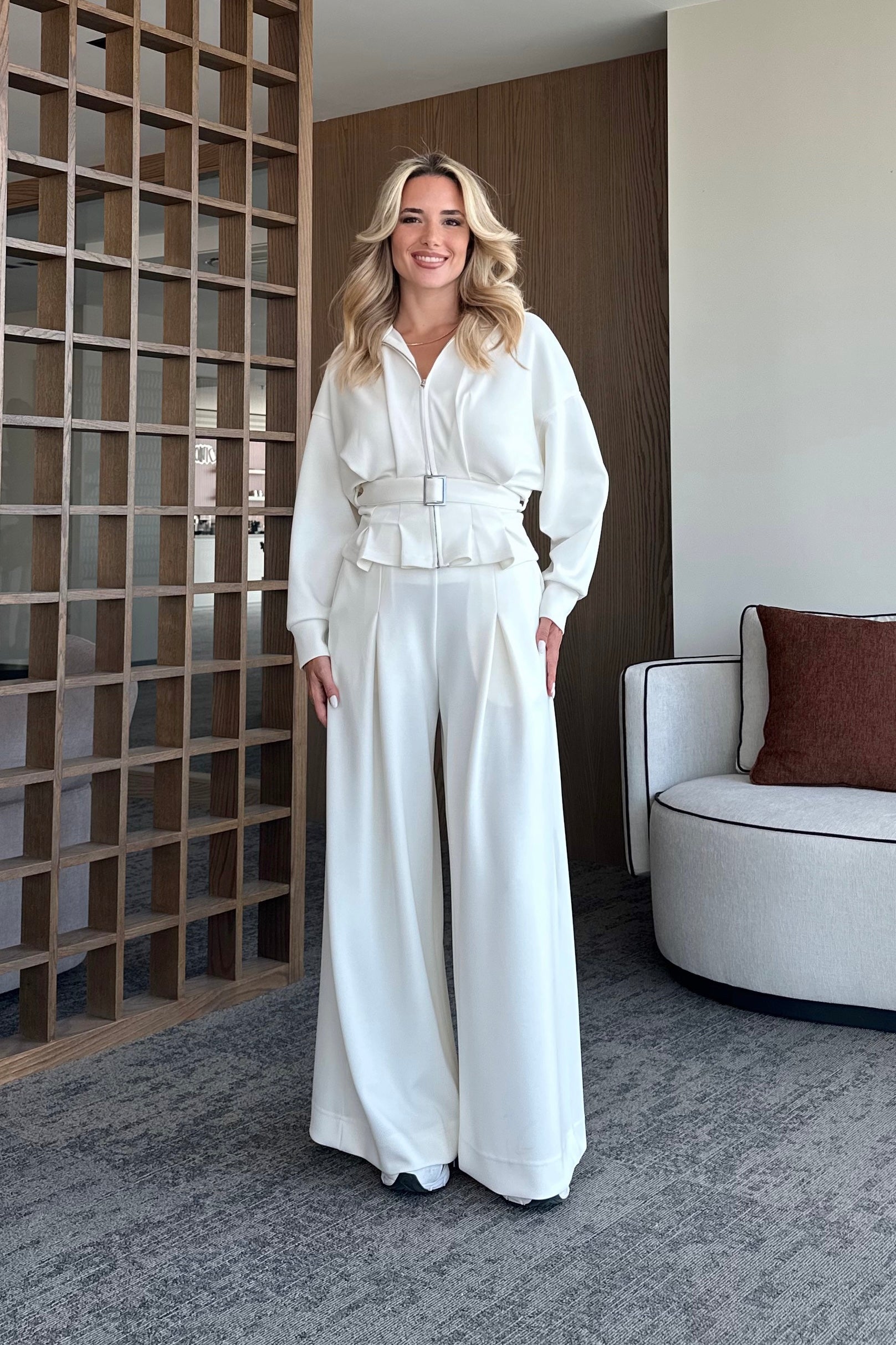 Ekru Bel Kemerli Pantolon Pensli Takım - 7278