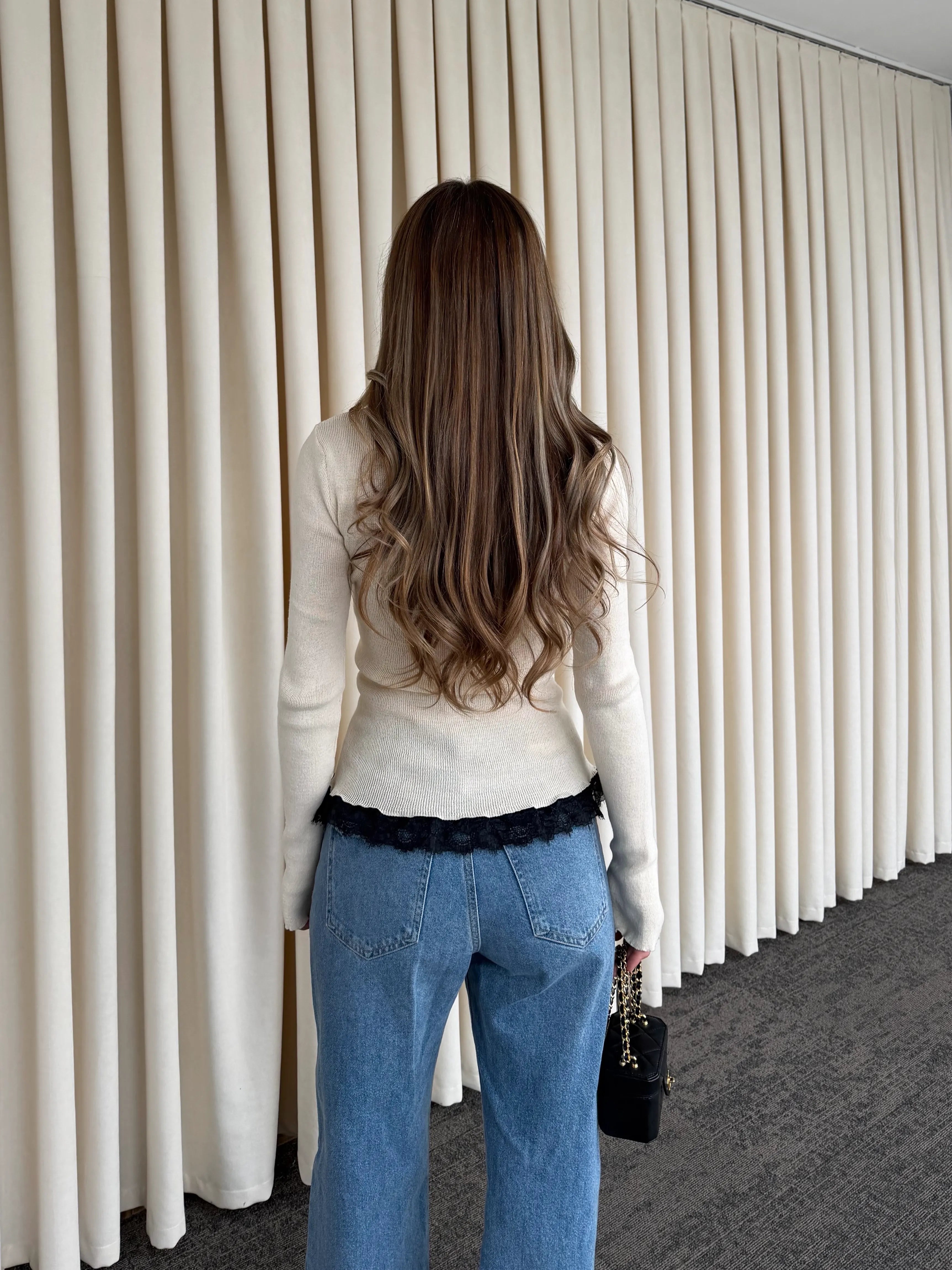 Etek ucundaki dantel bitişi ve hafif volanlı manşet formu, tasarımı sıradanlıktan uzaklaştırarak stilinize sofistike bir hareket kazandırır. Günlük kombinlerde denimlerle rahatlıkla tamamlanabilir, daha şık kombinlerde ise zarif bir tamamlayıcı olarak öne çıkar.