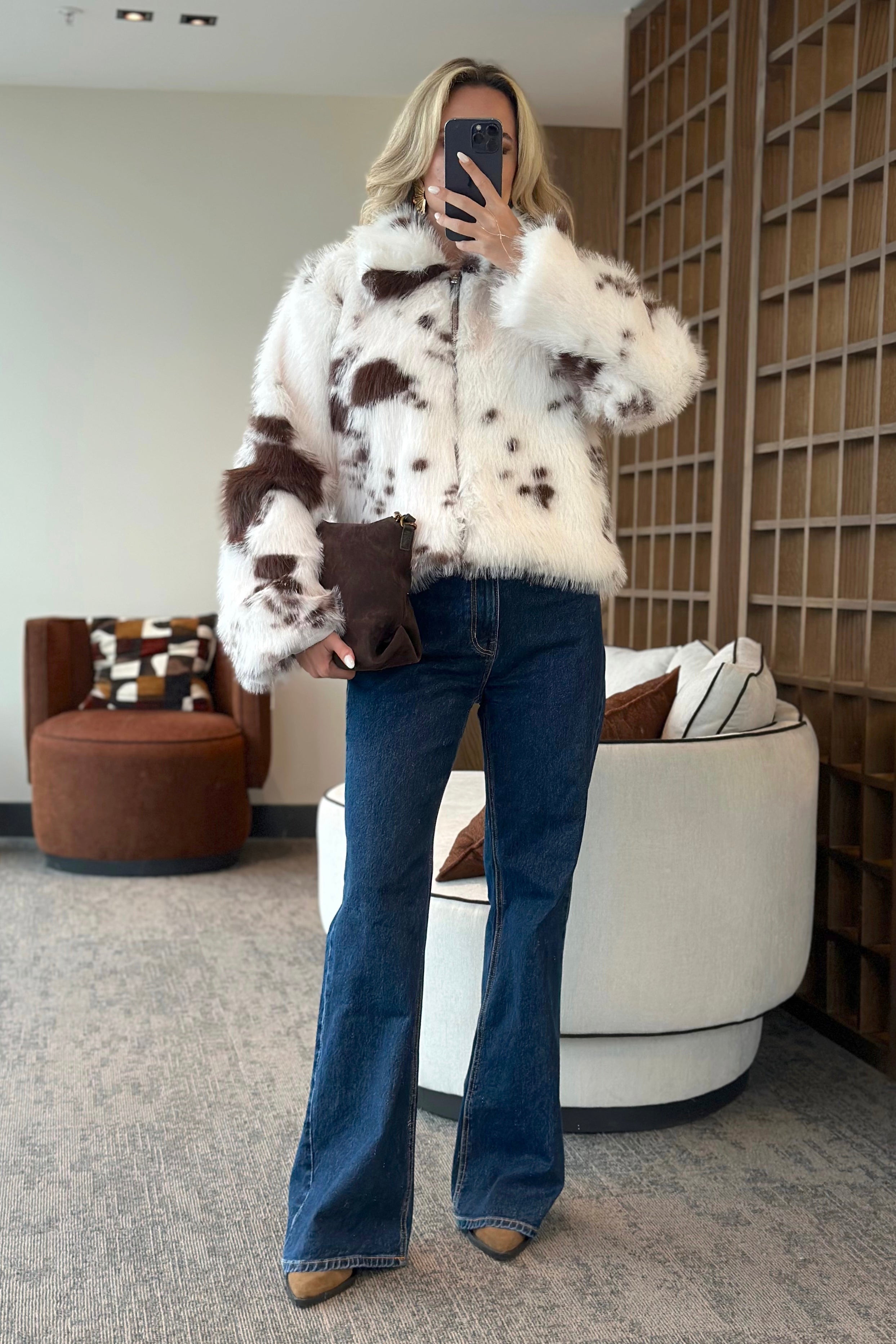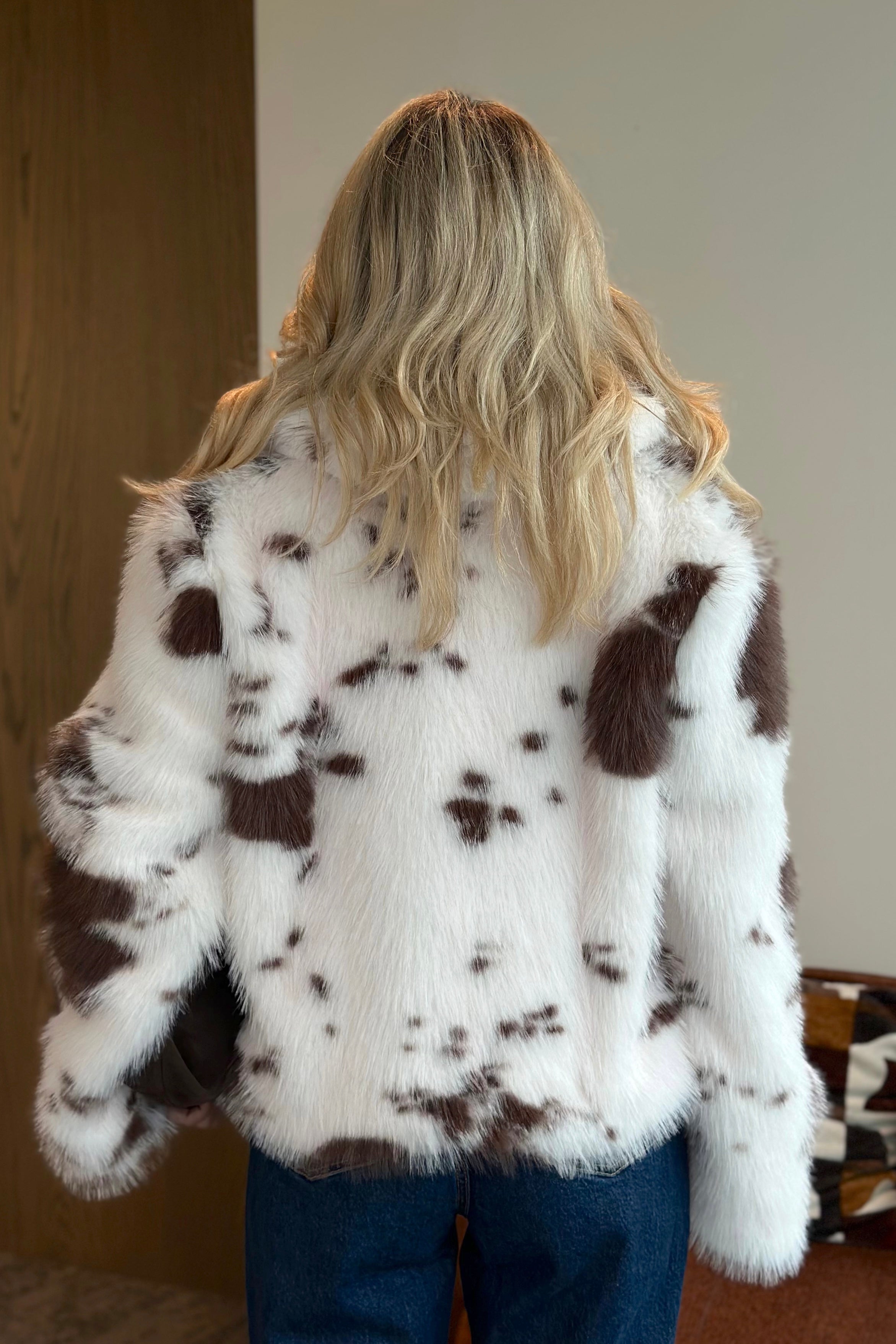 - Ekru Kahverengi Desenli Fermuarlı Kürk - 85154
