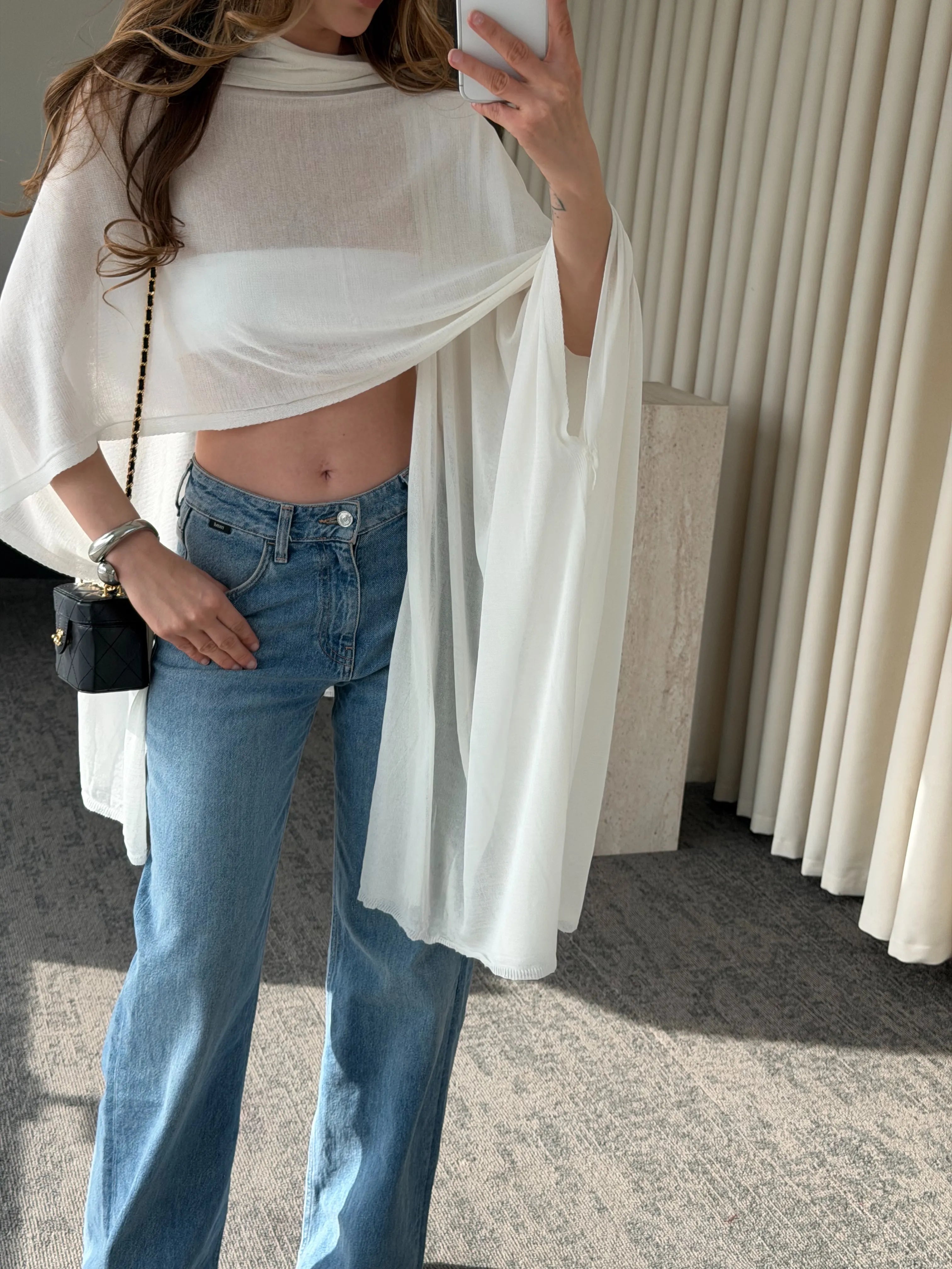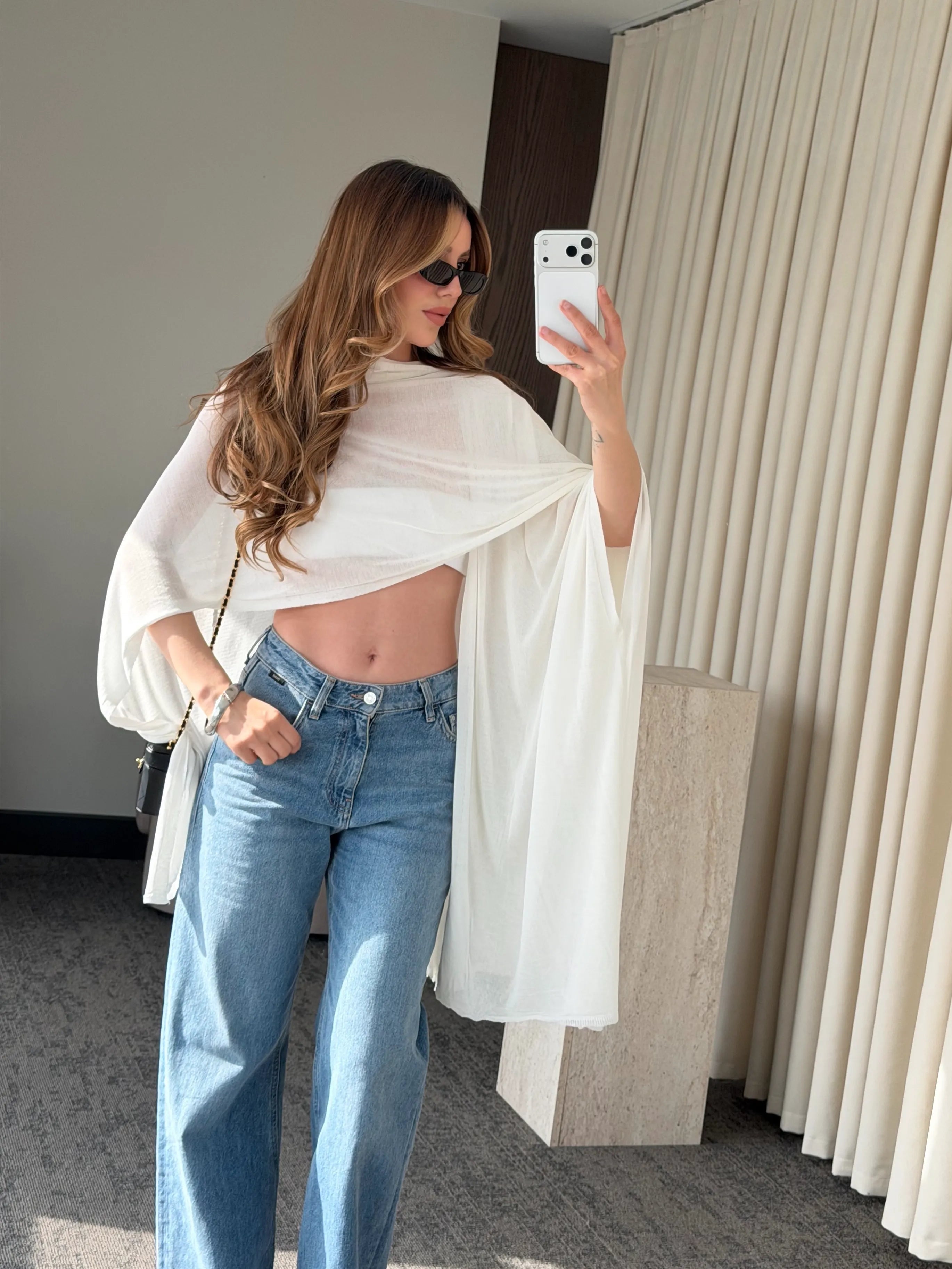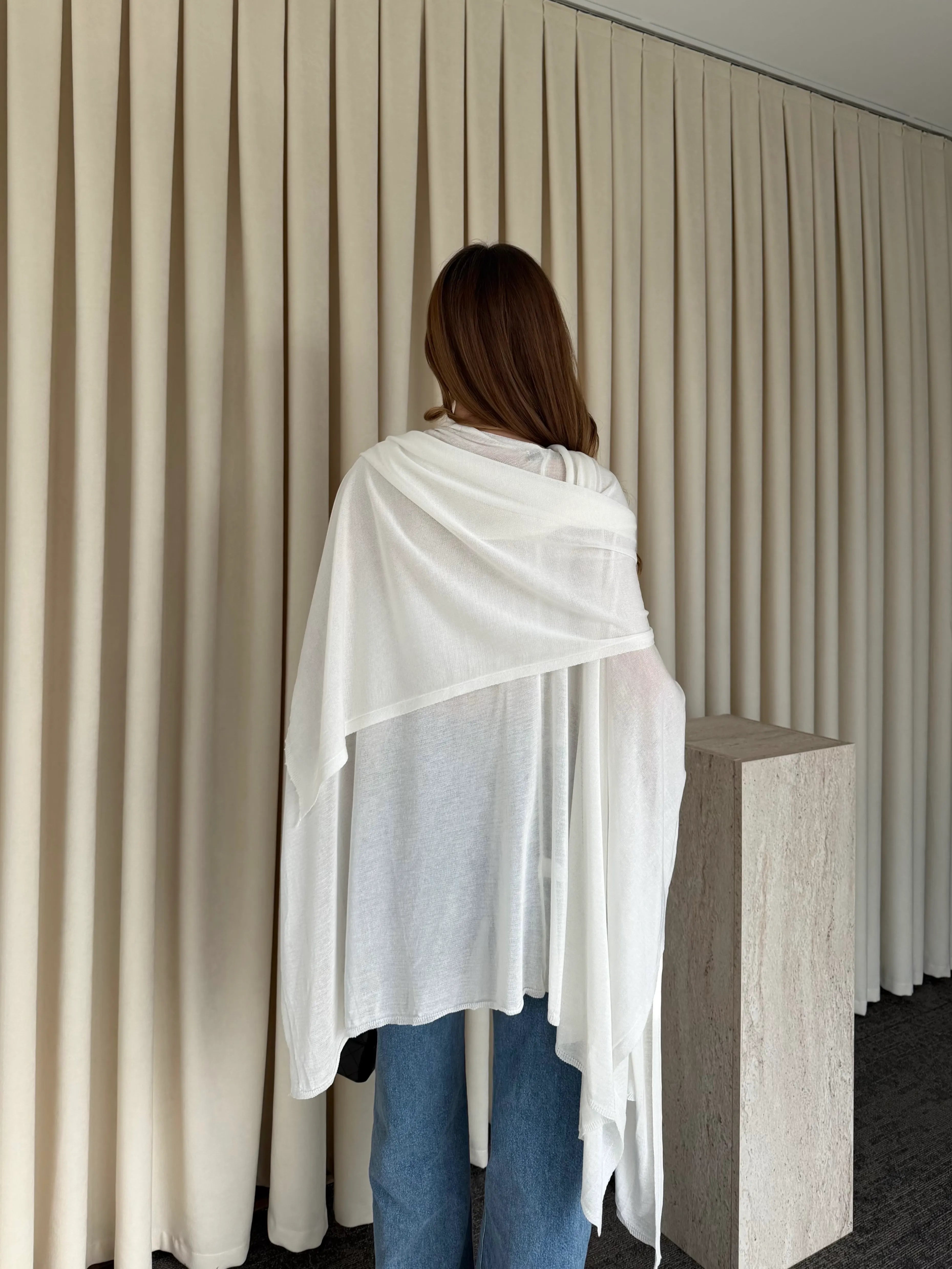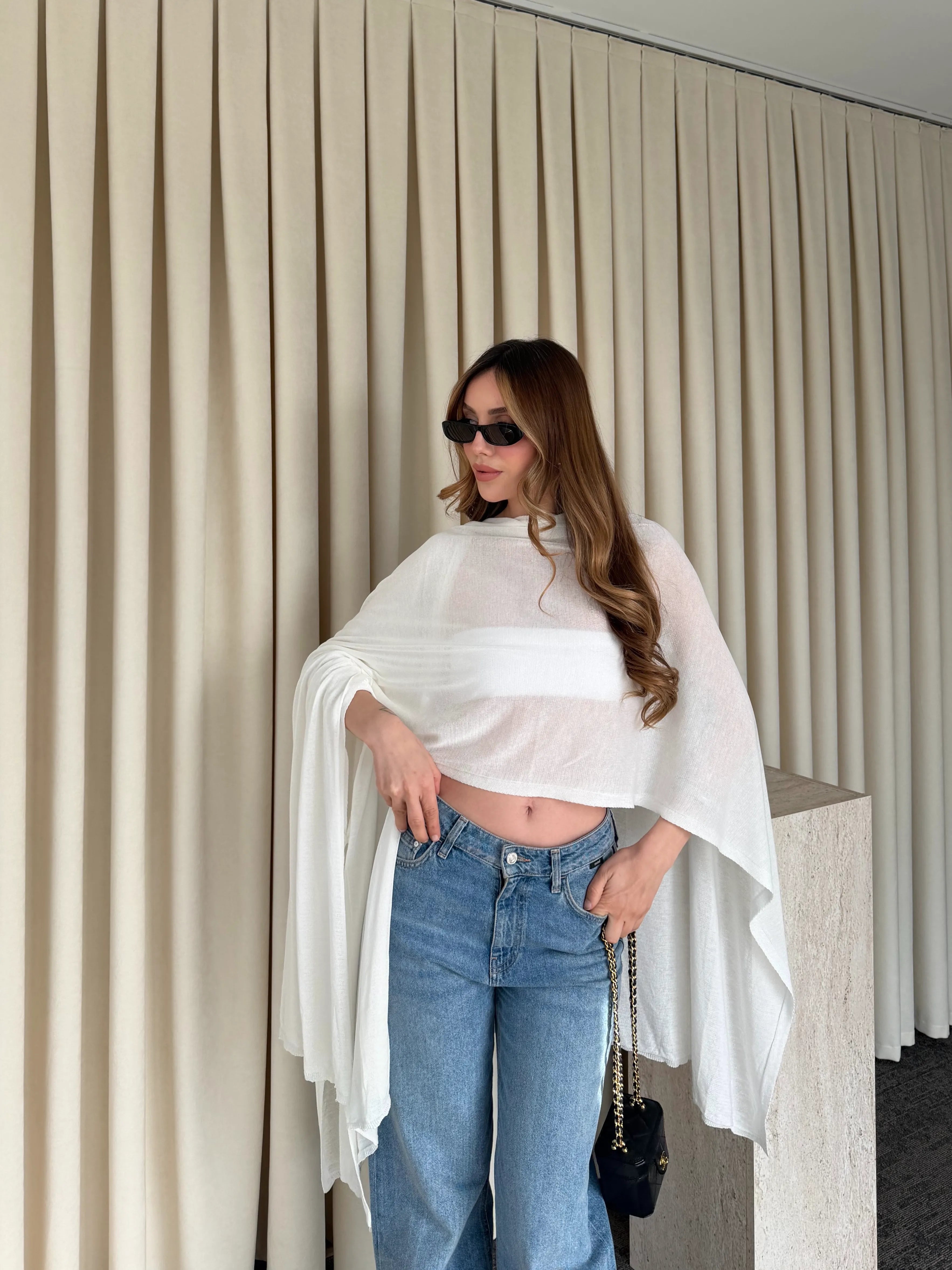 Yumuşak dokusu ciltle nazikçe temas ederken, geniş kesimi farklı şekillerde kullanıma imkân tanır. İster omuzlarınıza serbestçe bırakın, ister boynunuza dolayarak daha güçlü bir stil oluşturun. Günlük kombinlerden özel anlara kadar her stile uyum sağlayan çok yönlü bir tamamlayıcıdır.