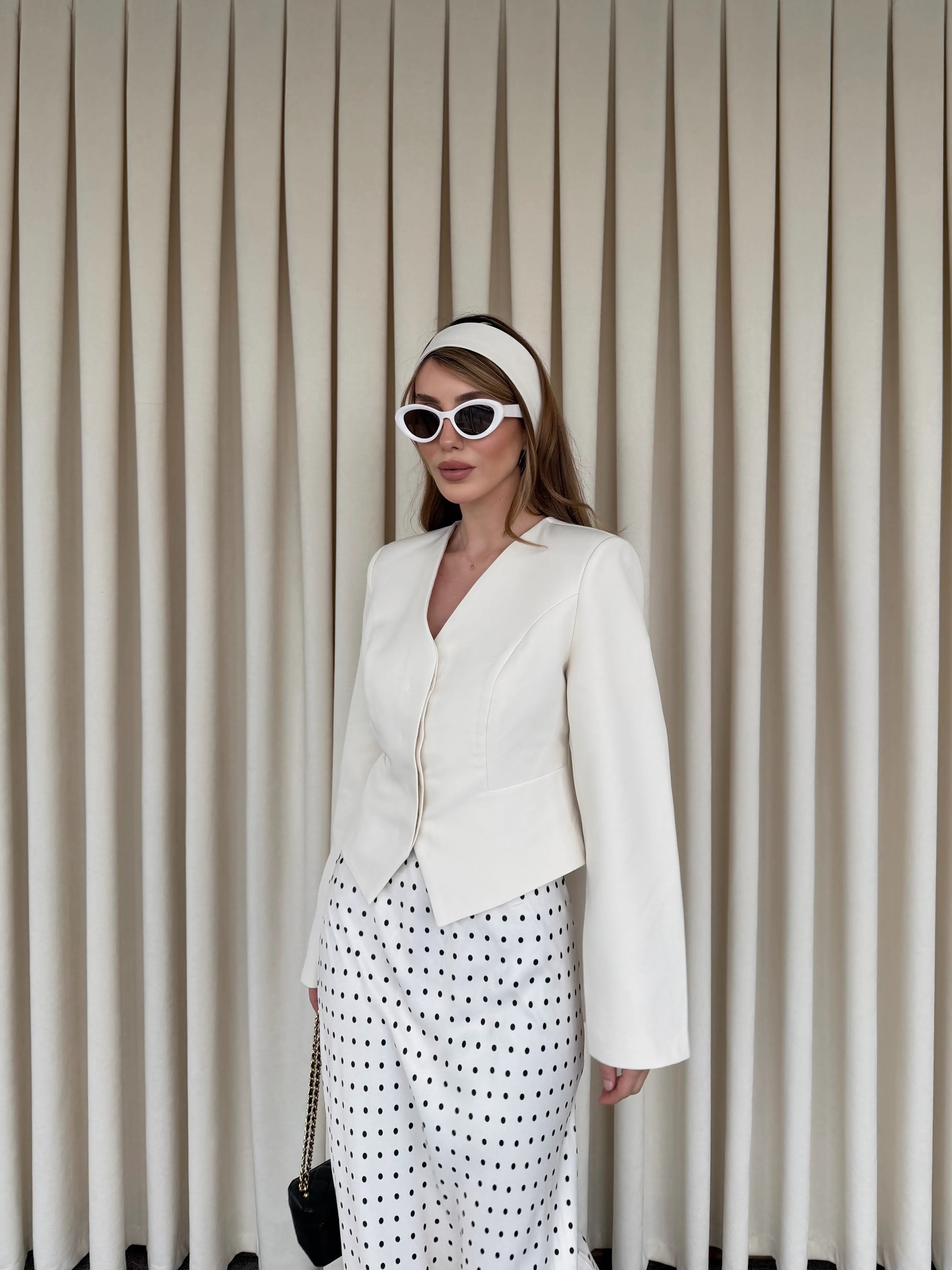 - Ekru Vatkalı Fularlı Ceket - 85175