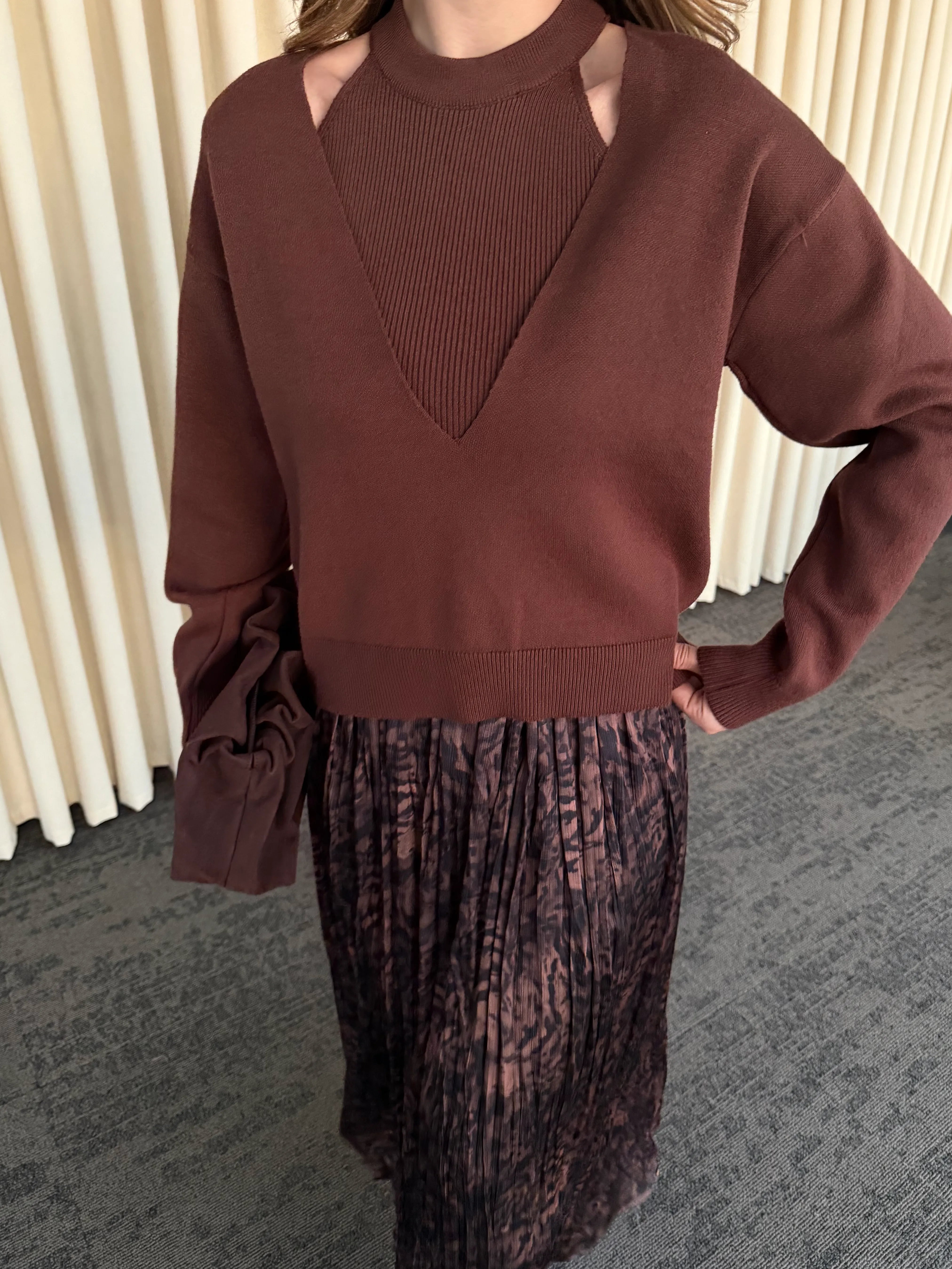 Kahverengi Yakası Fiyonk Detaylı Elbise- 2001