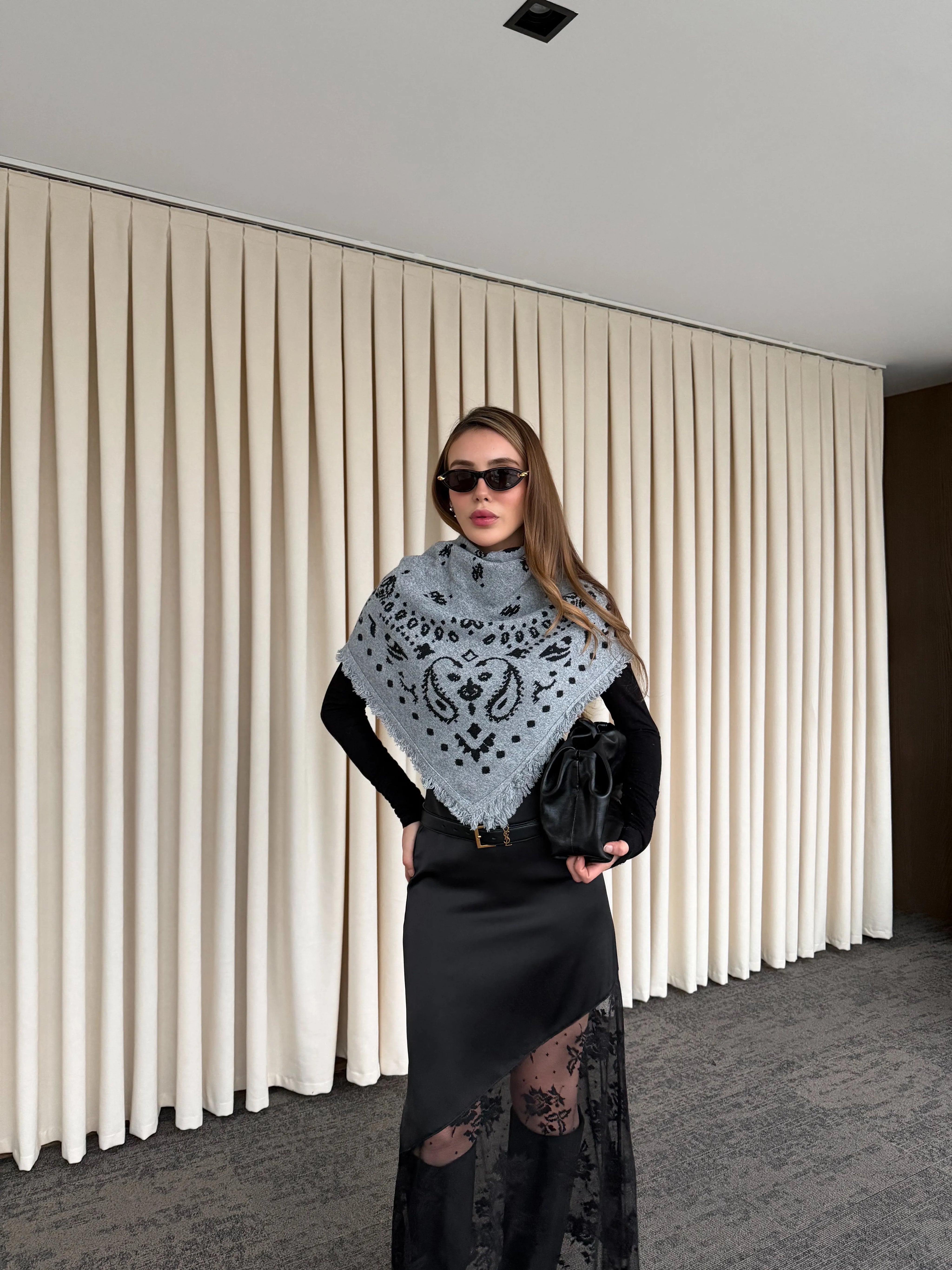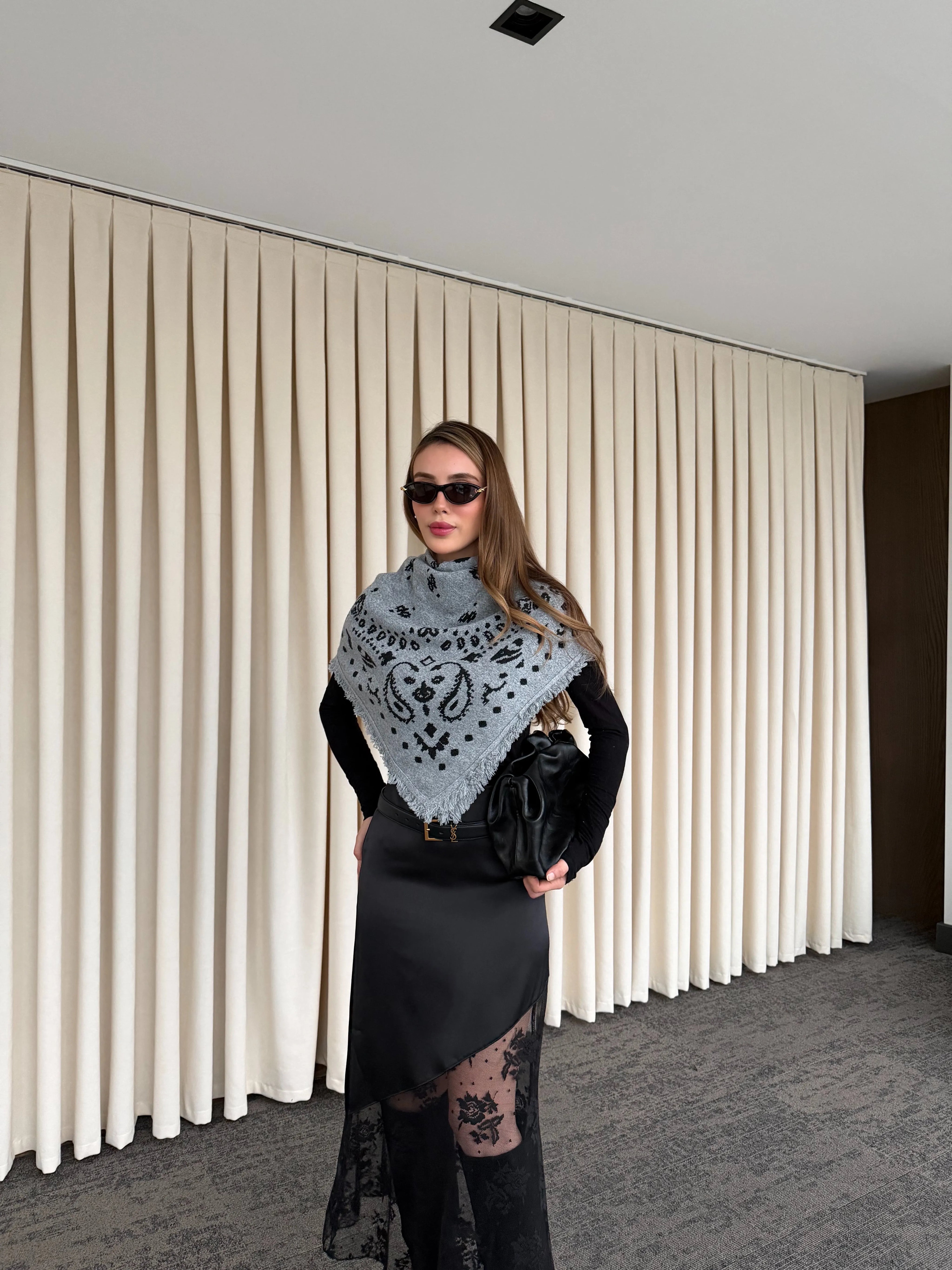 - Gri - Antrasit Desenli Triko Şal - 251003