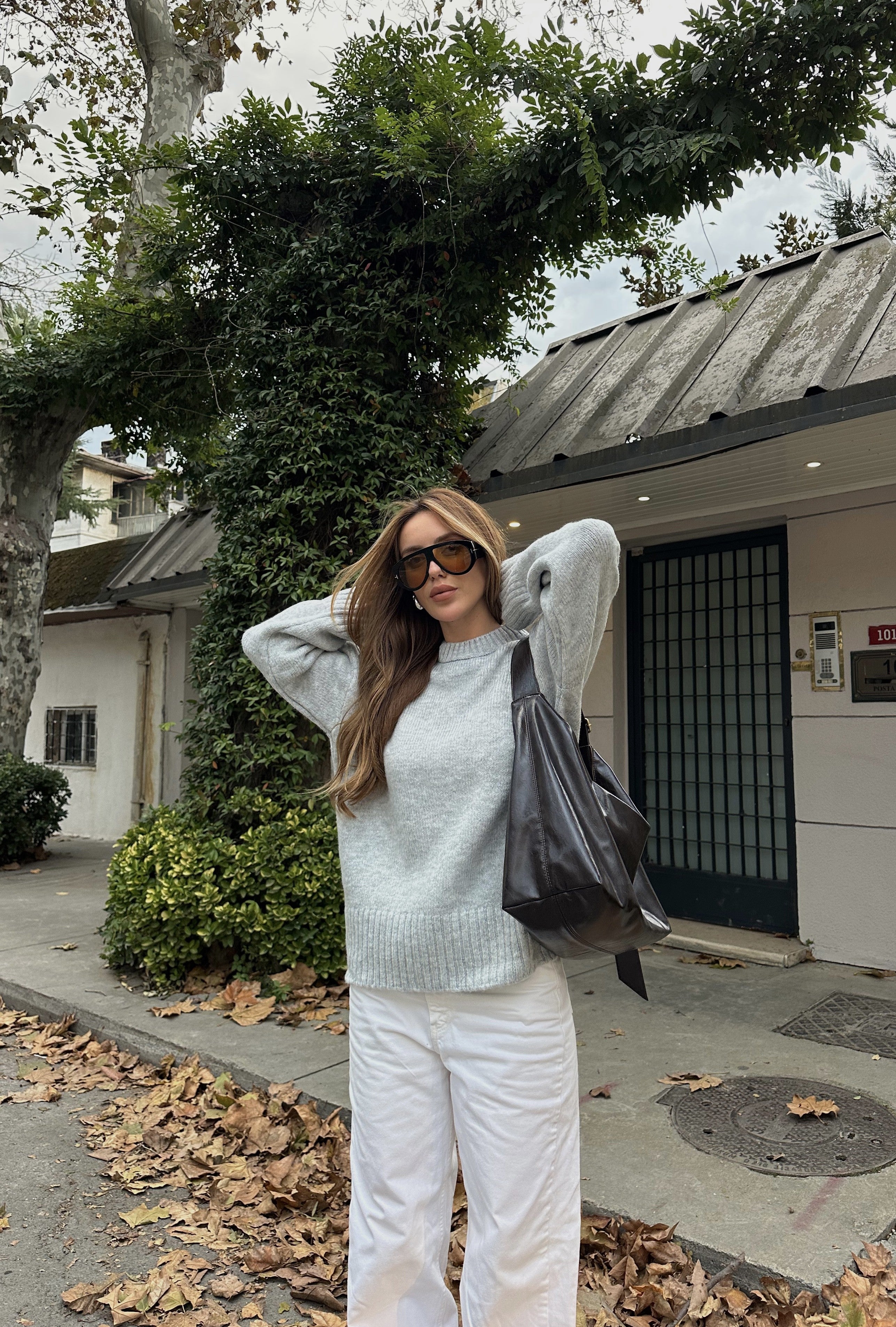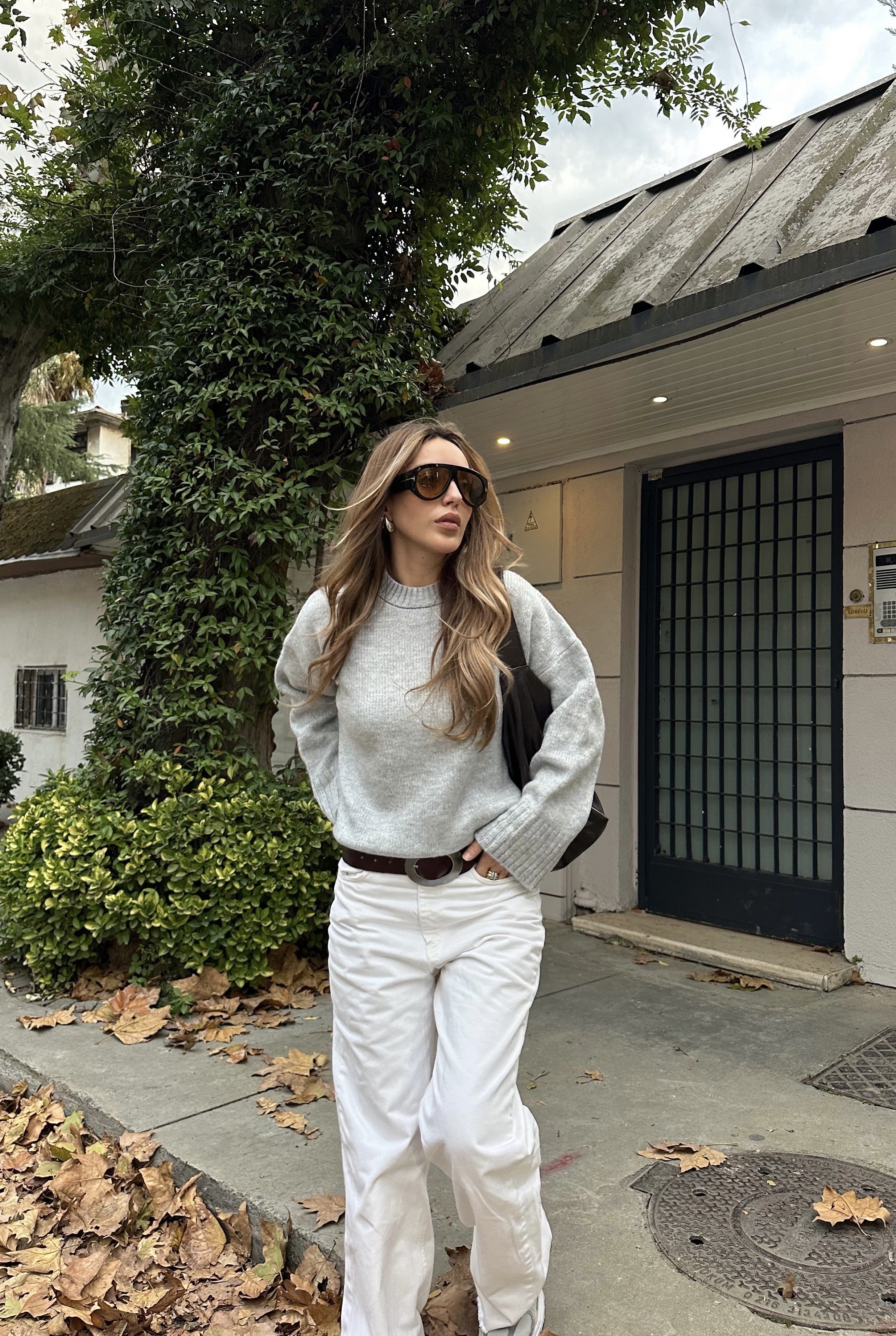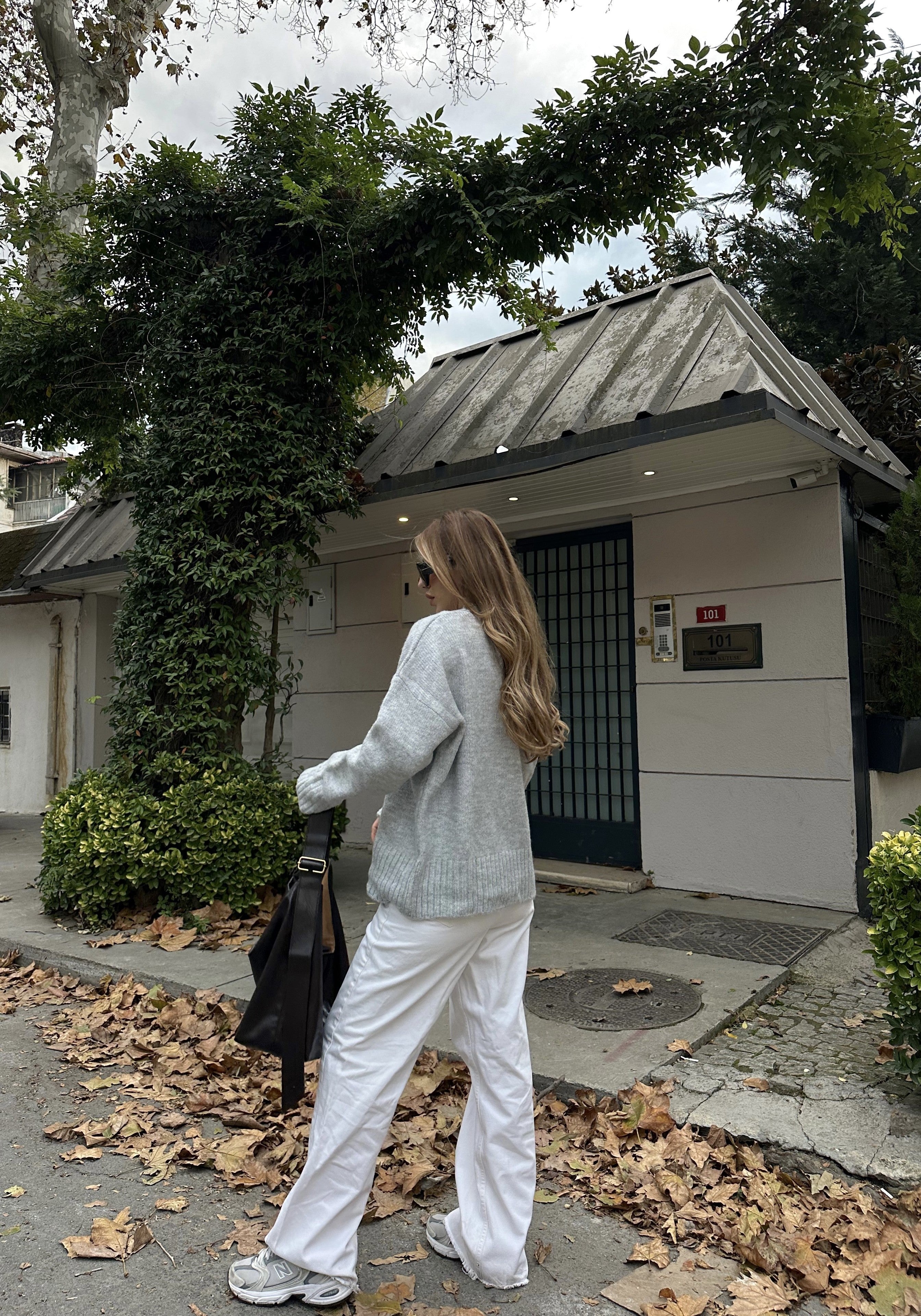 - Gri Bisiklet Yaka Basic Kazak - 2217