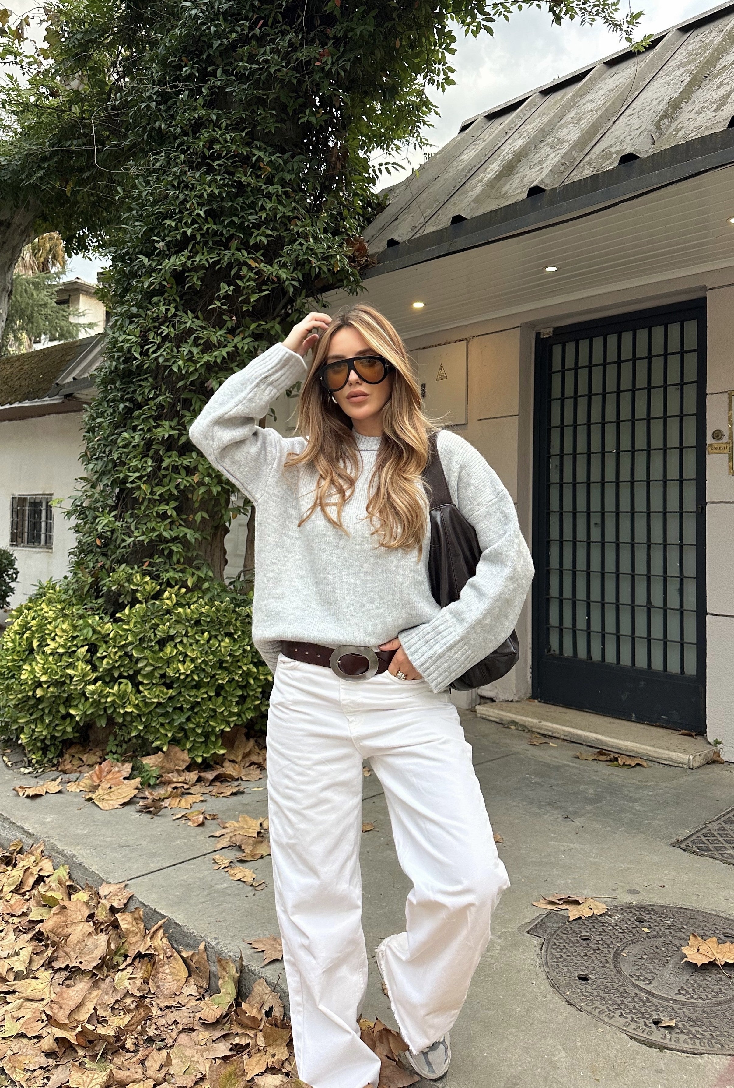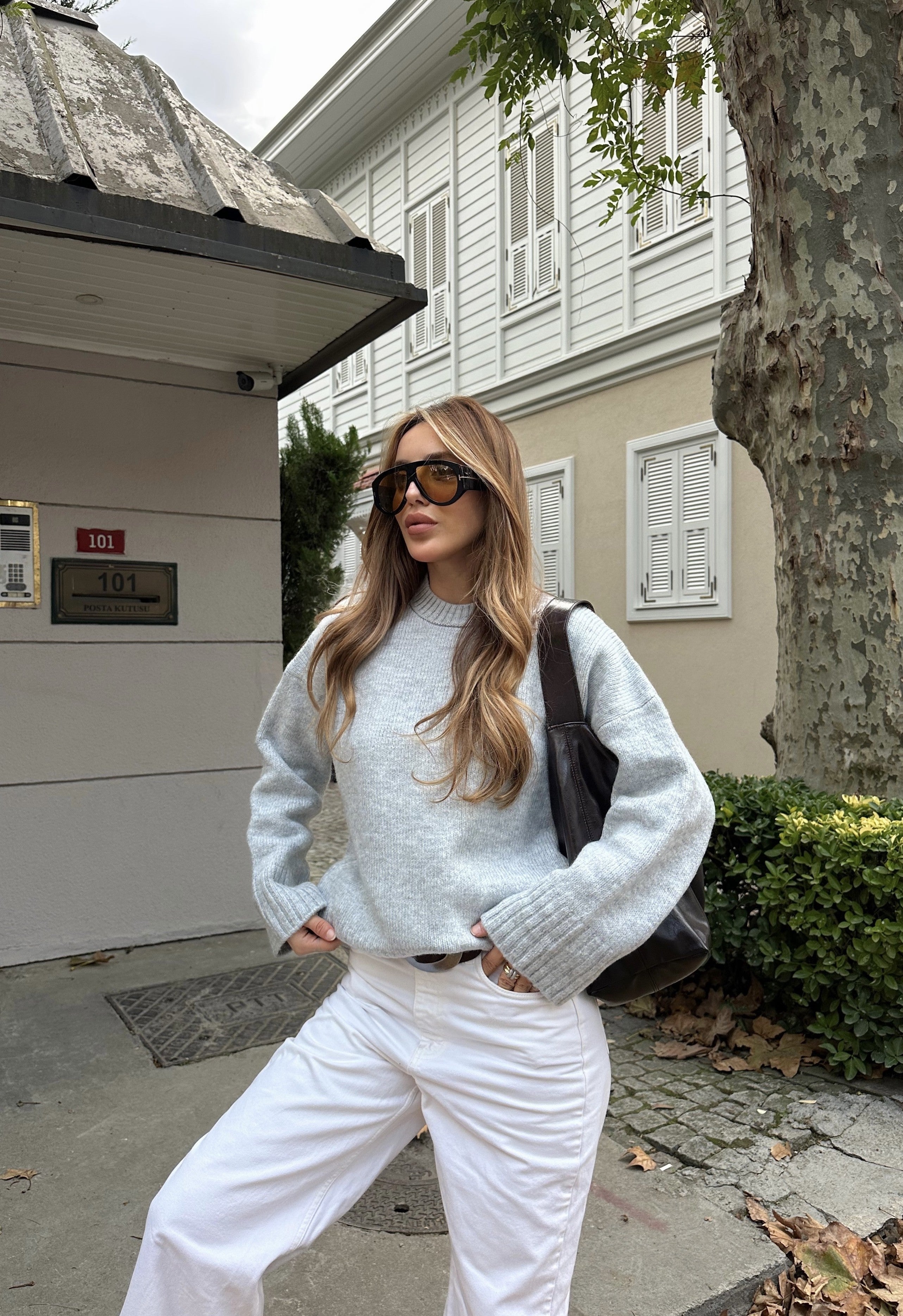 Gri Bisiklet Yaka Basic Kazak - 2217