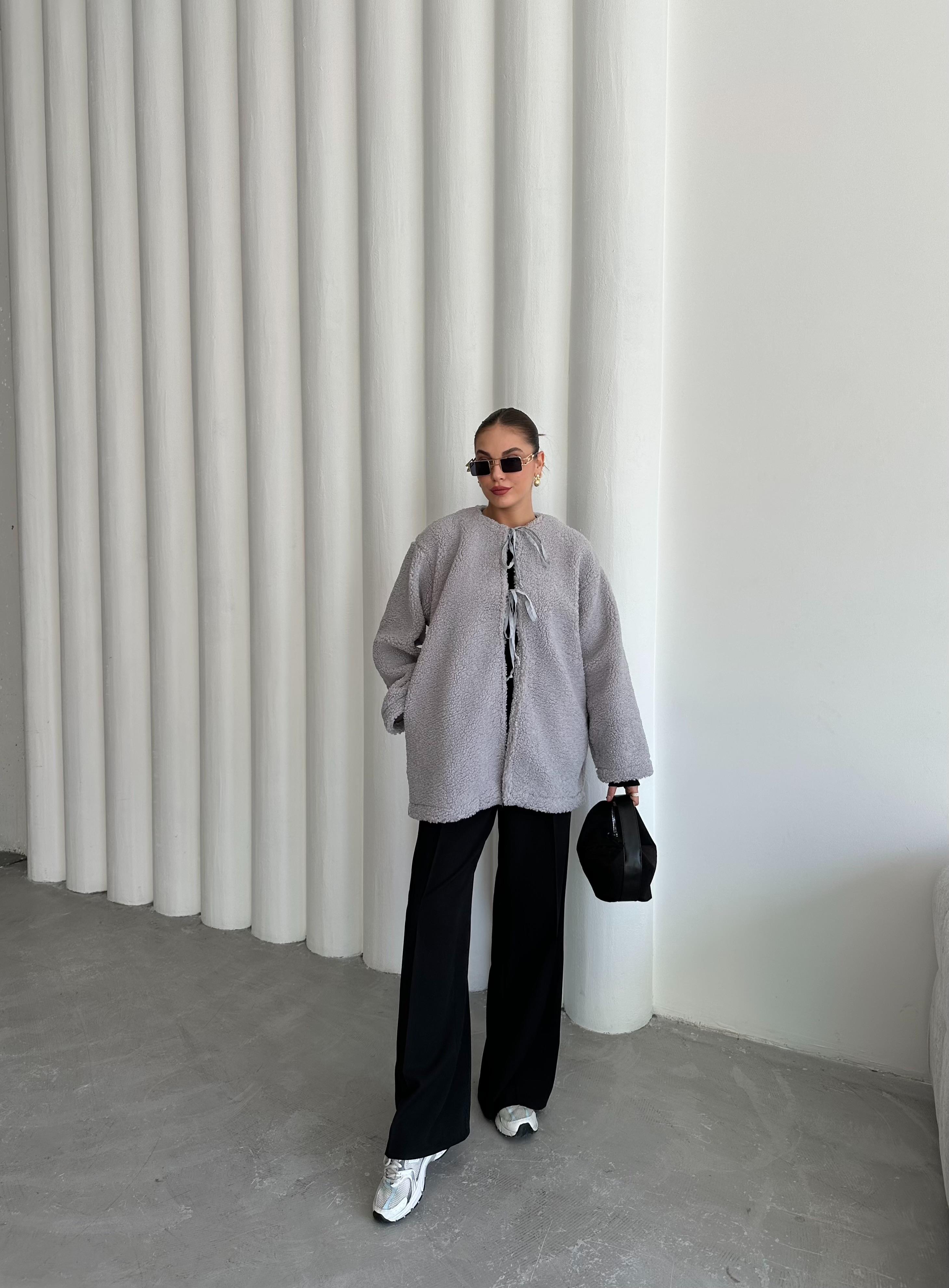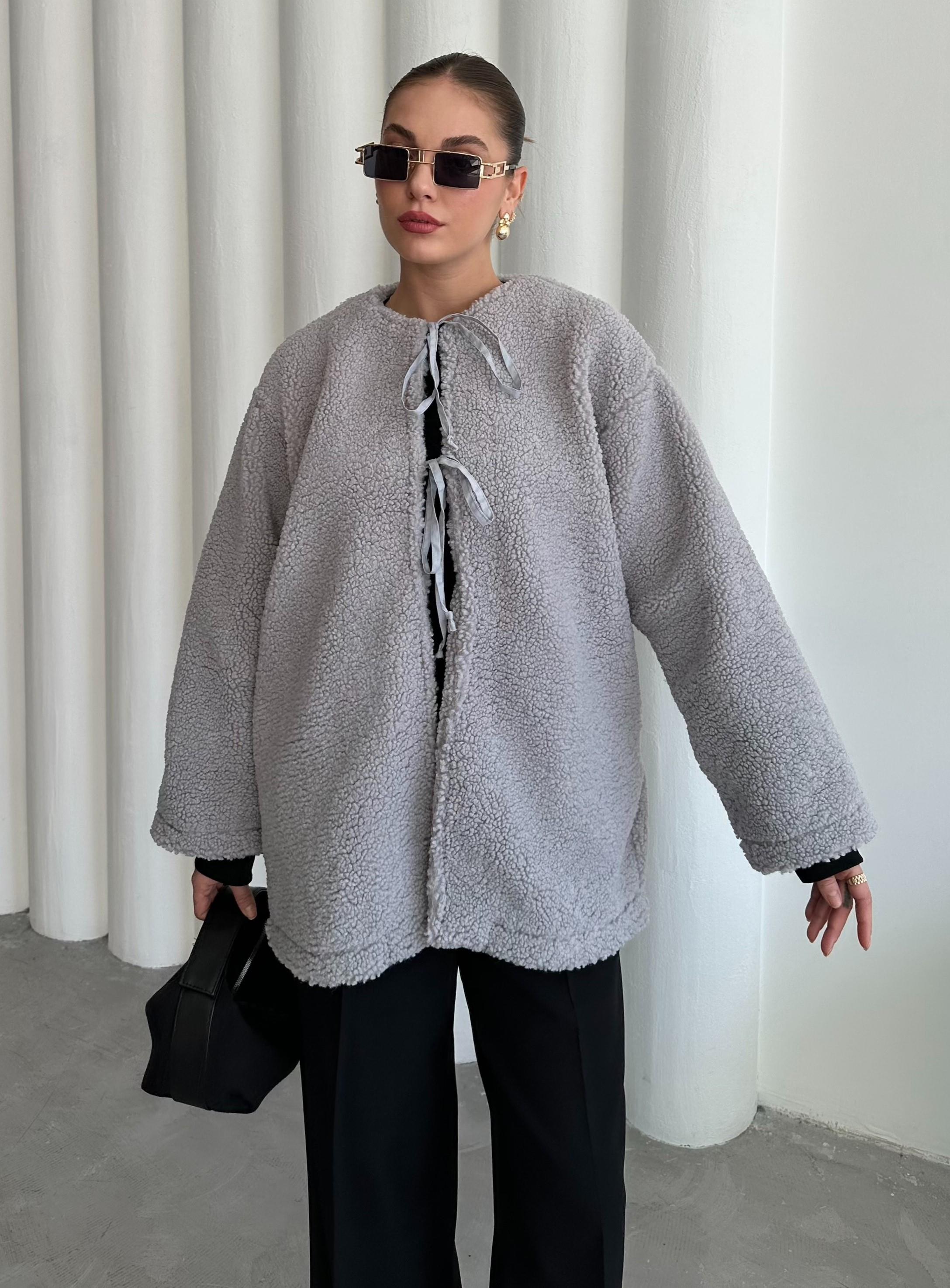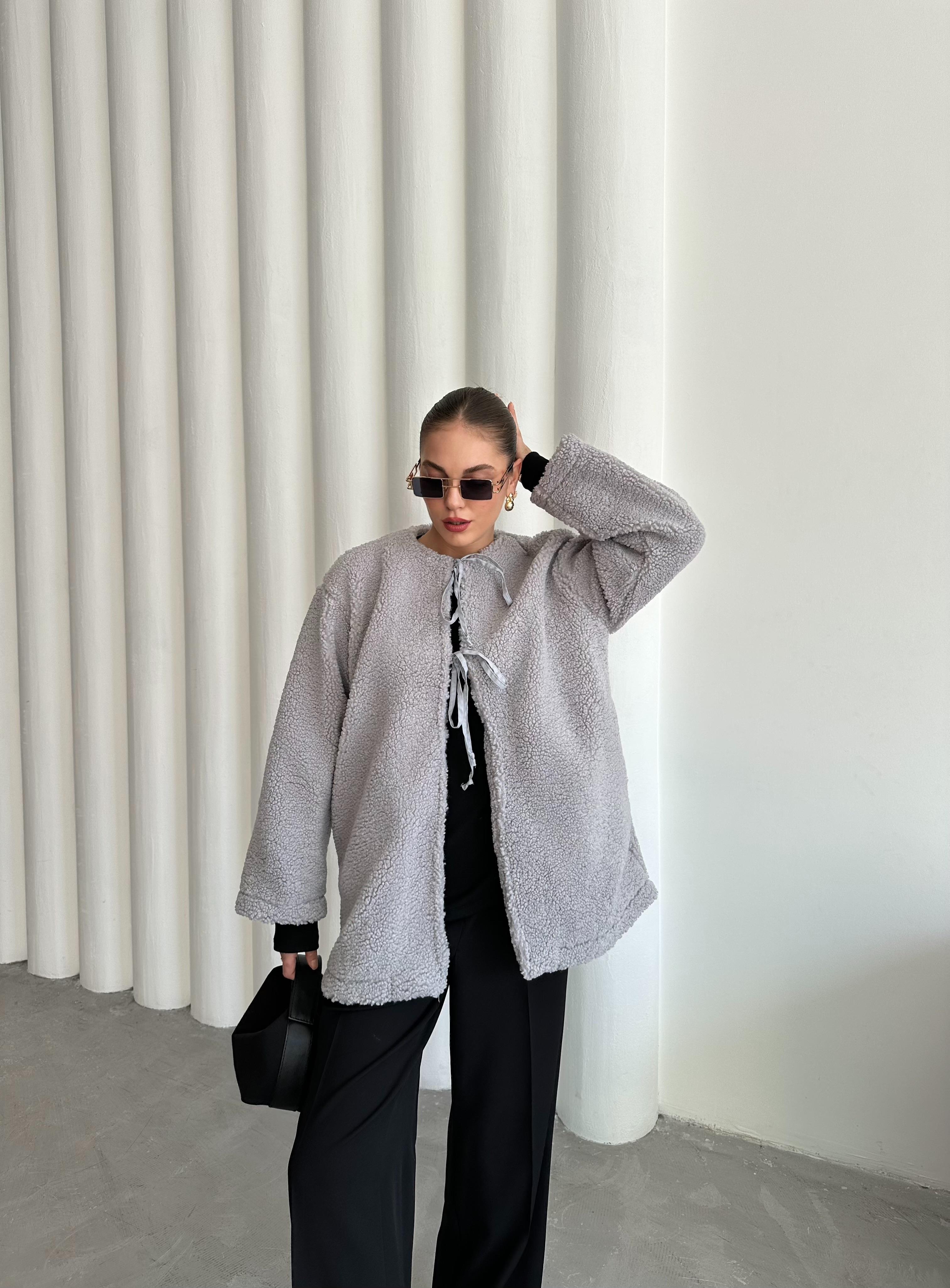 - Gri Önü Bağlamalı Teddy Ceket
