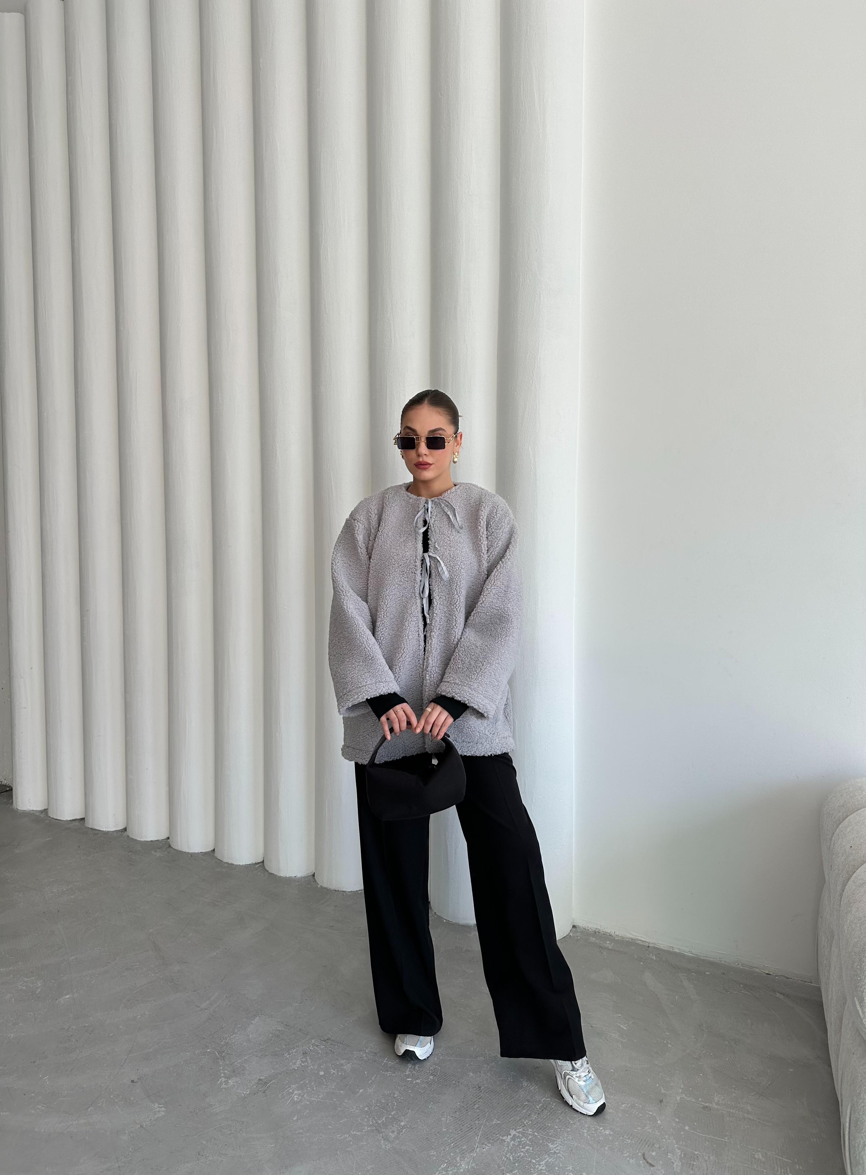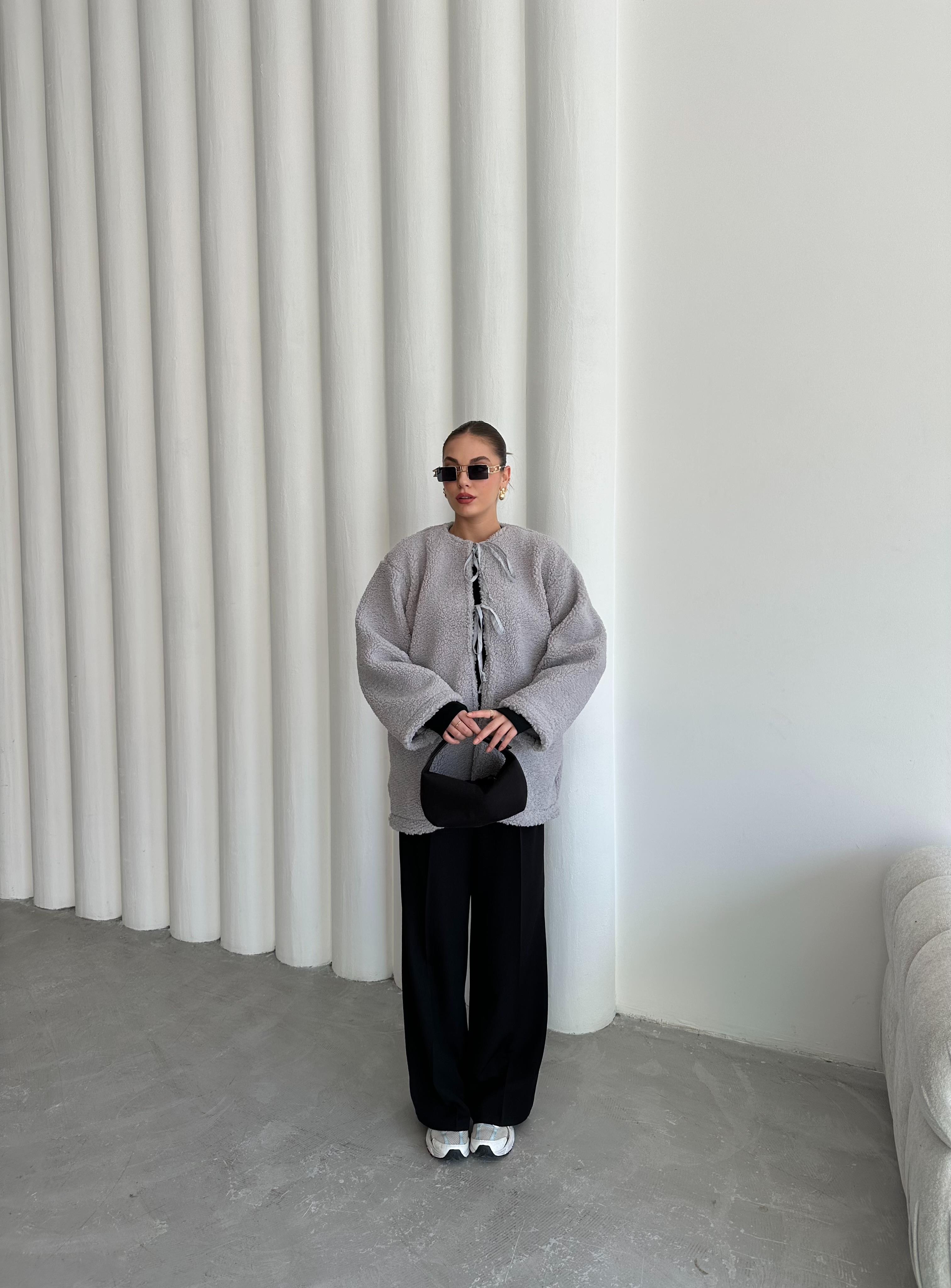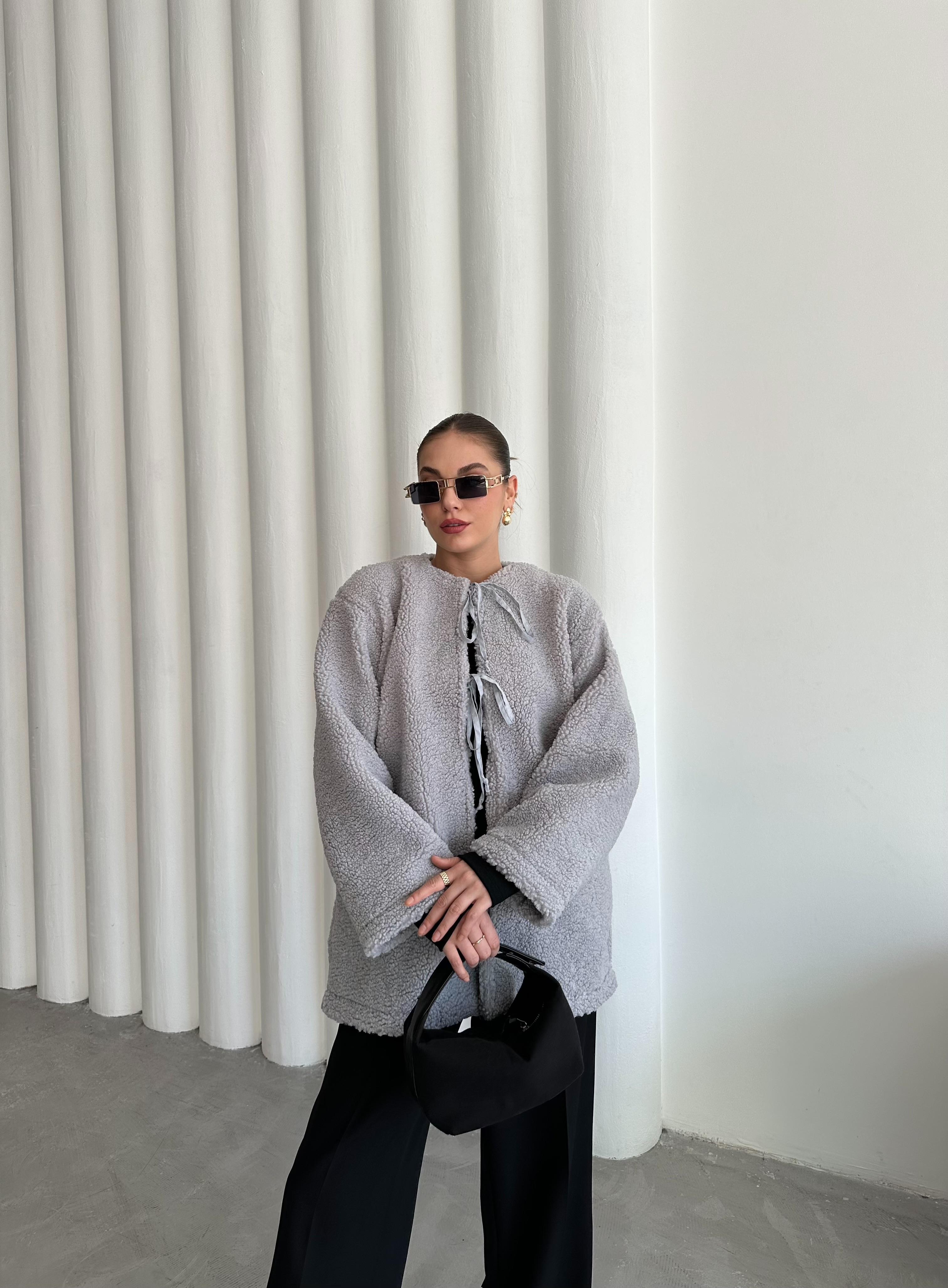 - Gri Önü Bağlamalı Teddy Ceket