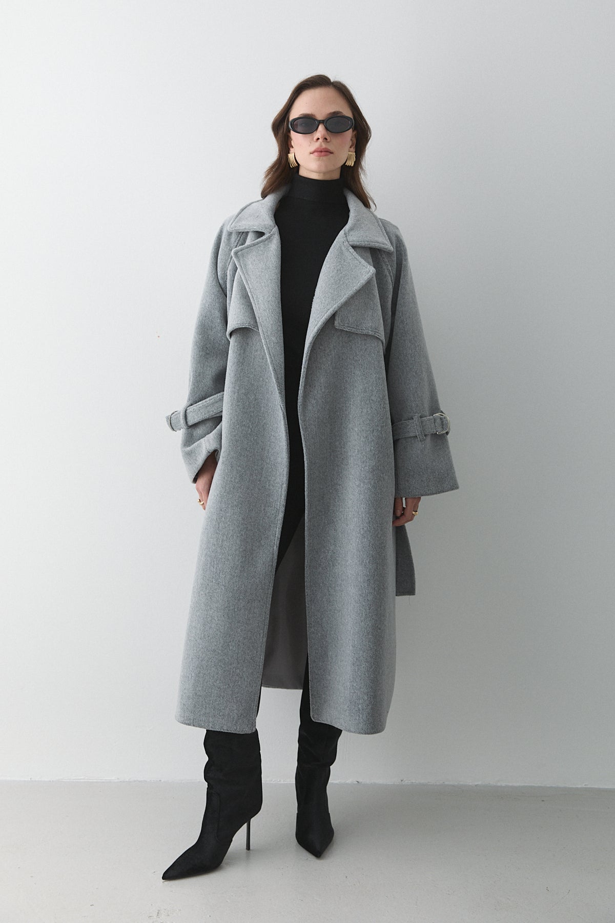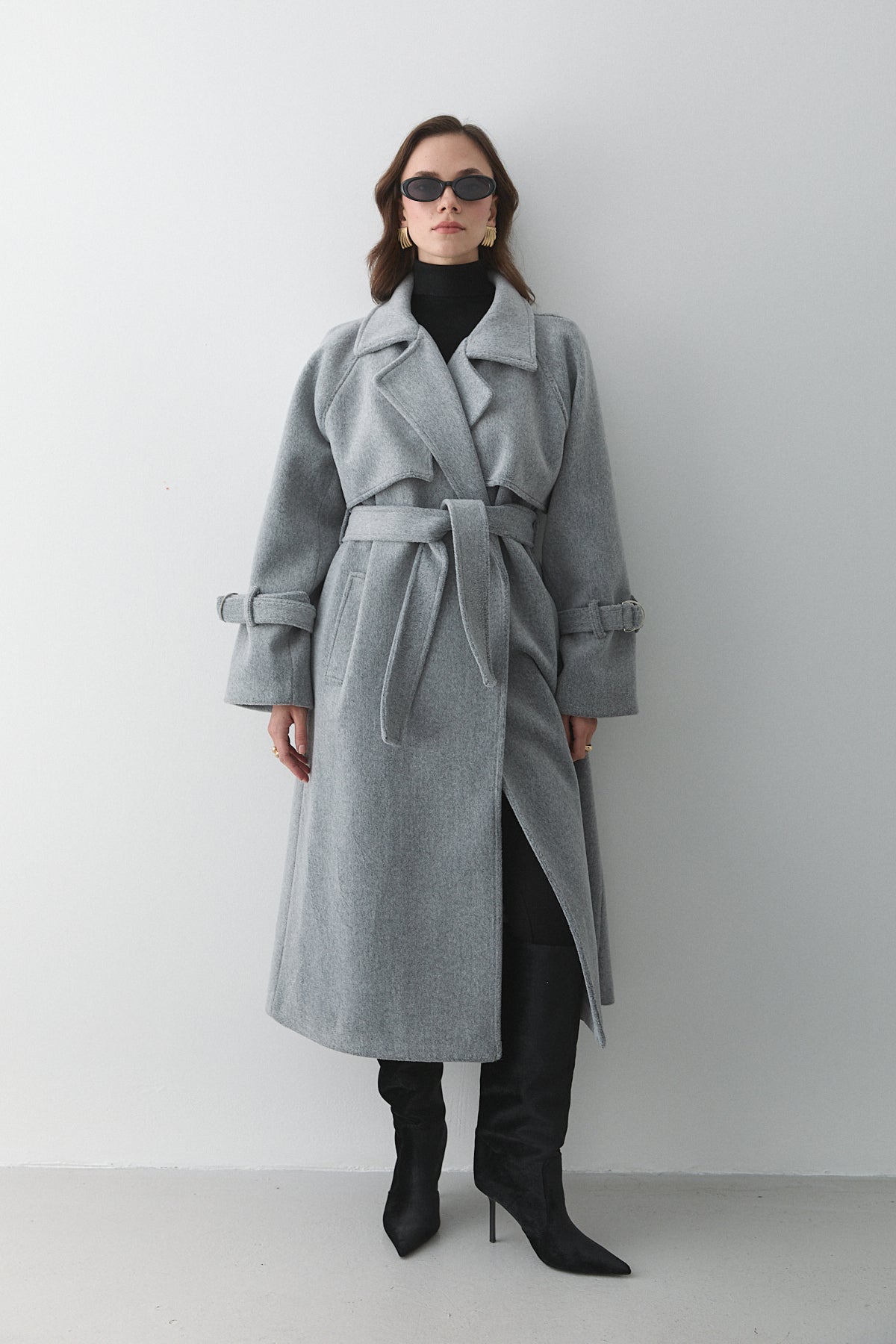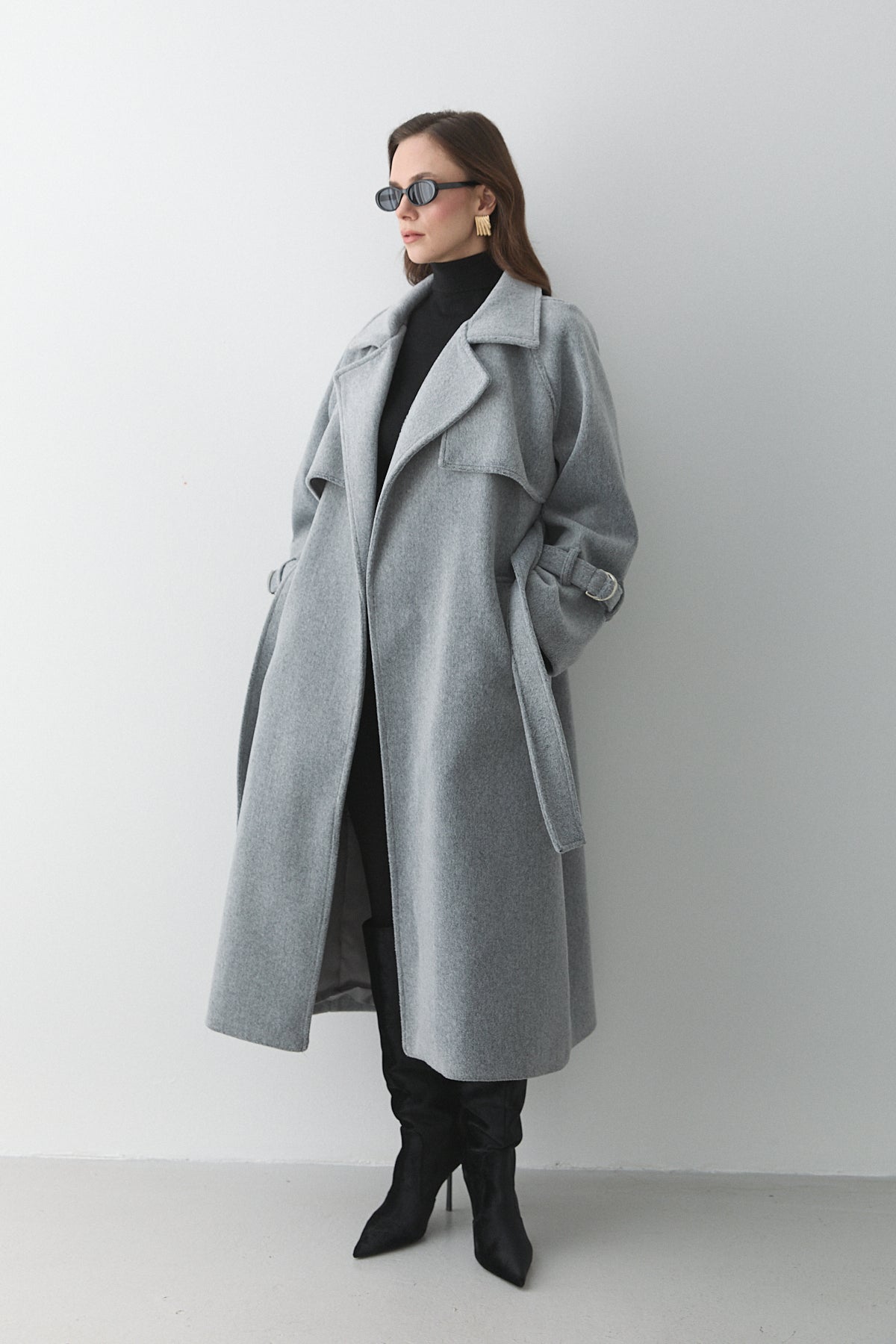 Siyah Kemerli Atlas Ceket - 9691