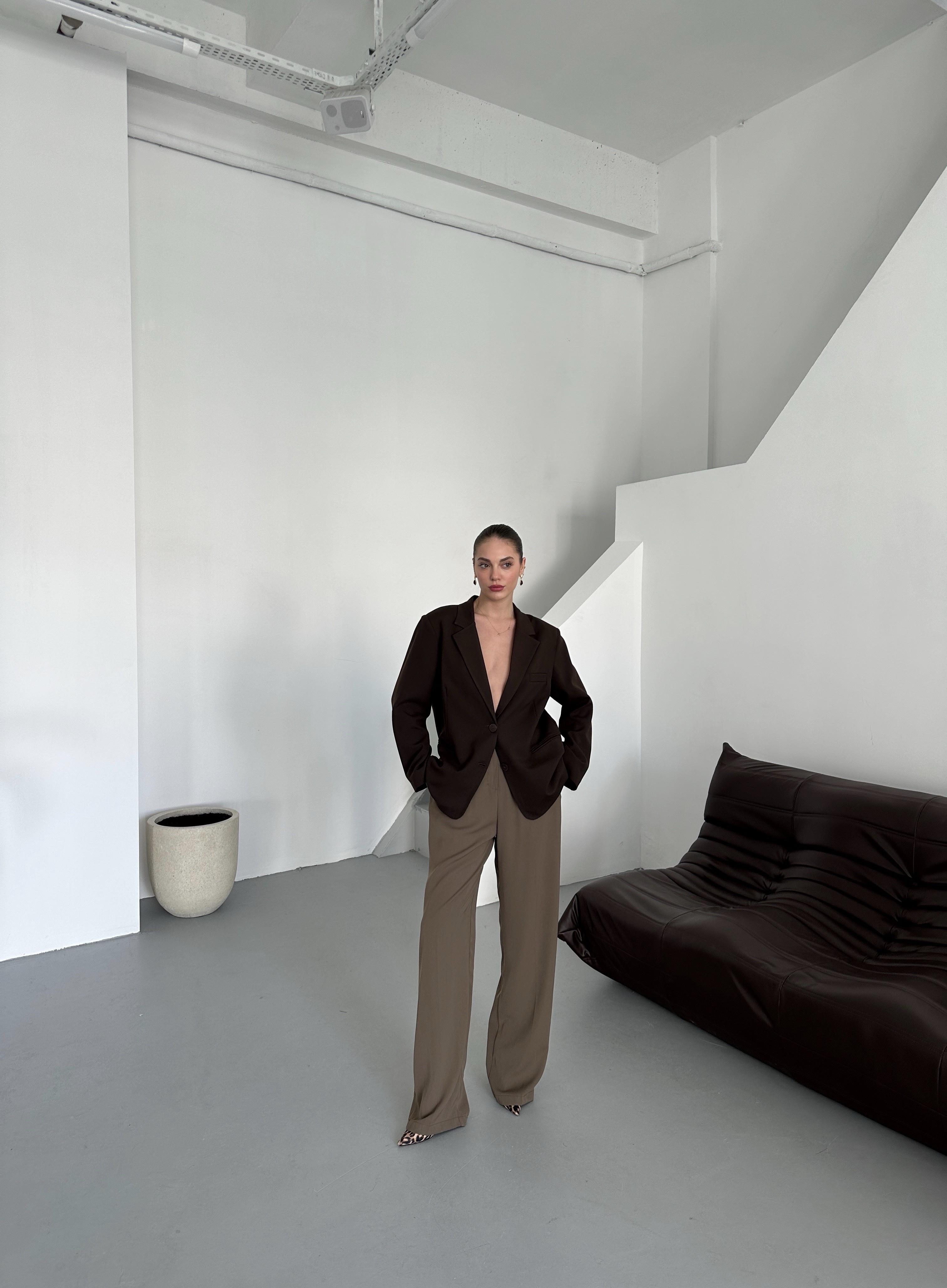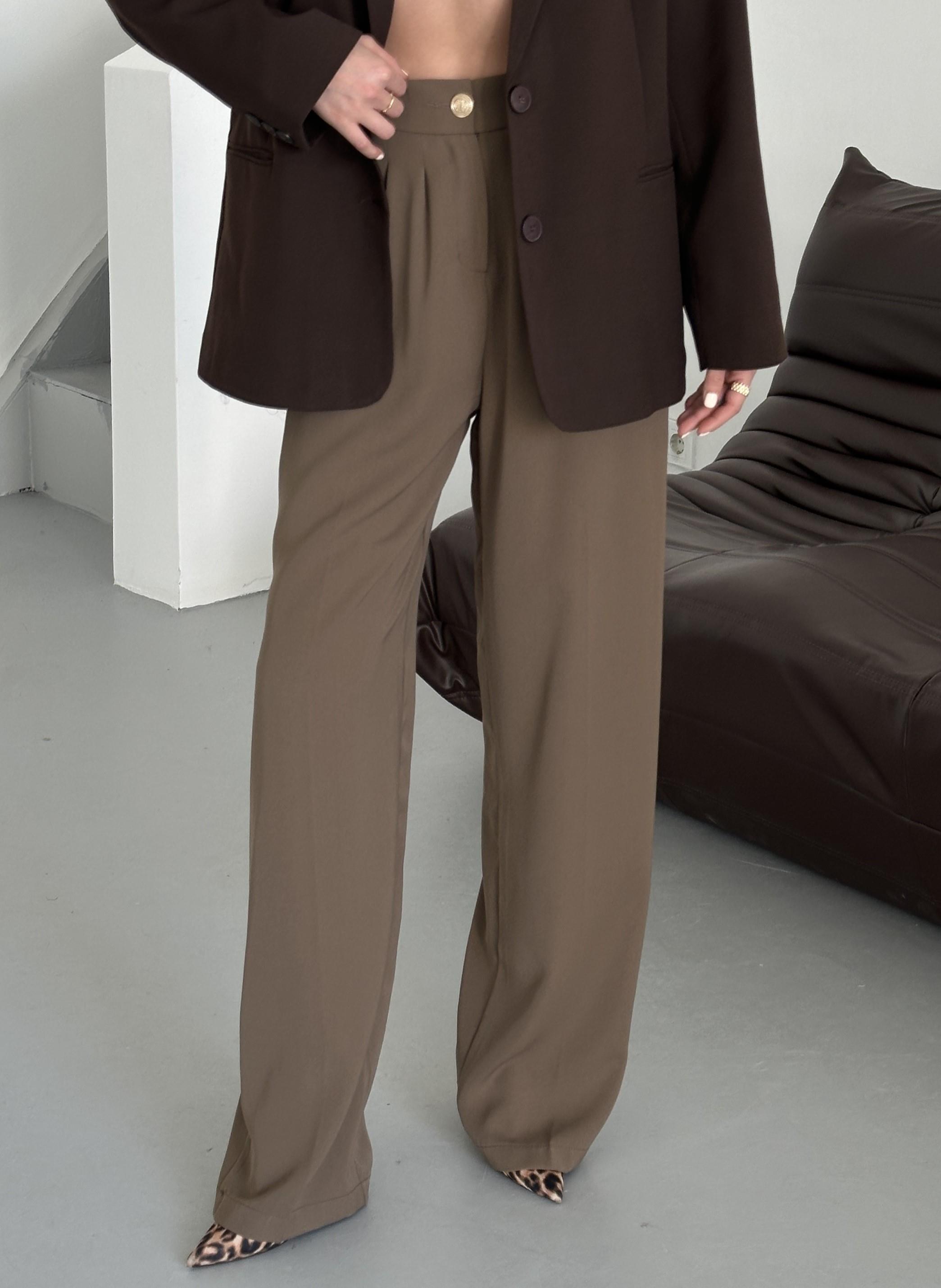 - Haki Gold Düğmeli Beli Lastikli Palazzo Pantolon