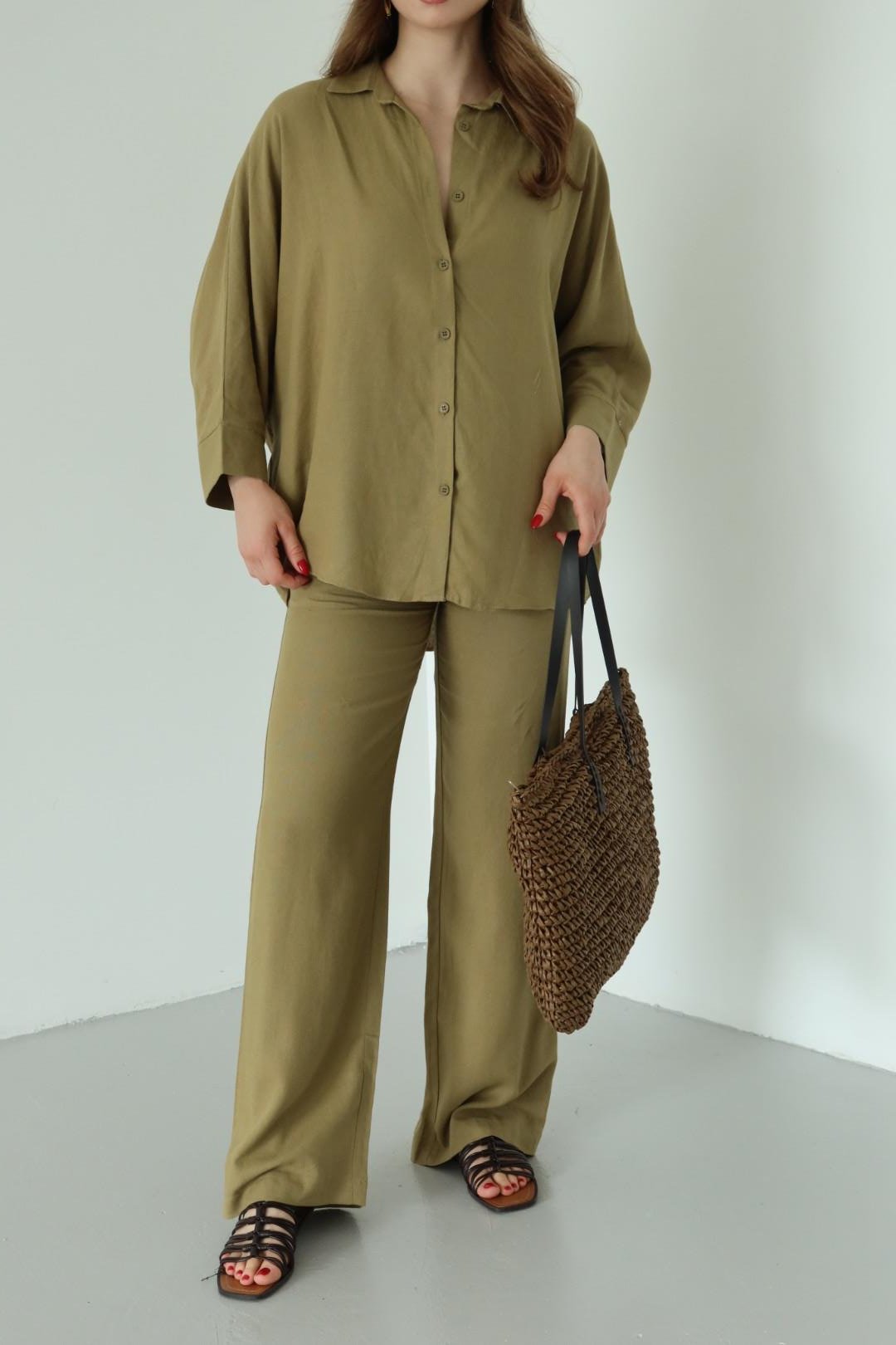 - Haki Lirio Gömlek Pantolon Takım