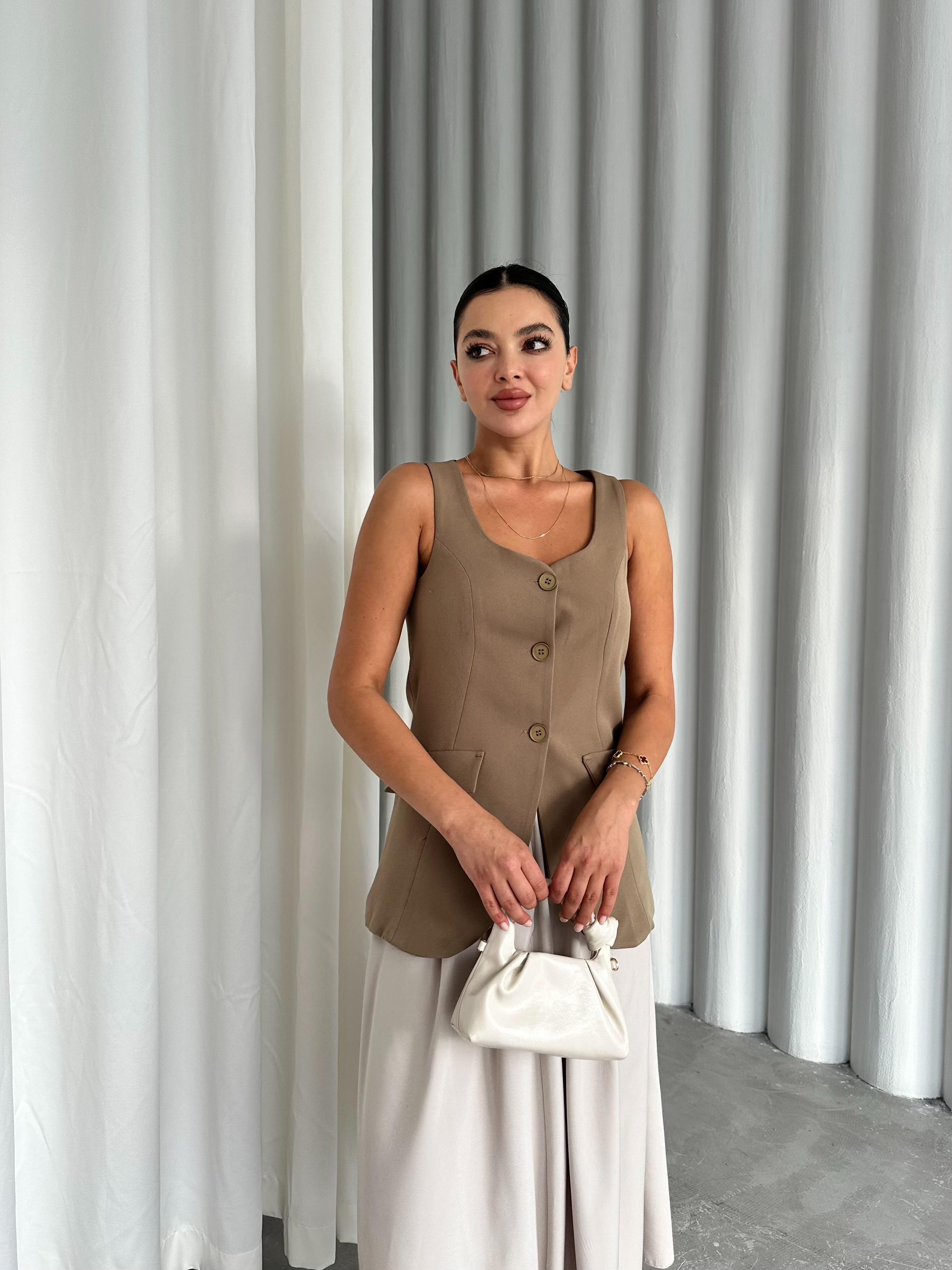 - Haki Milano Düğmeli Premium Yelek
