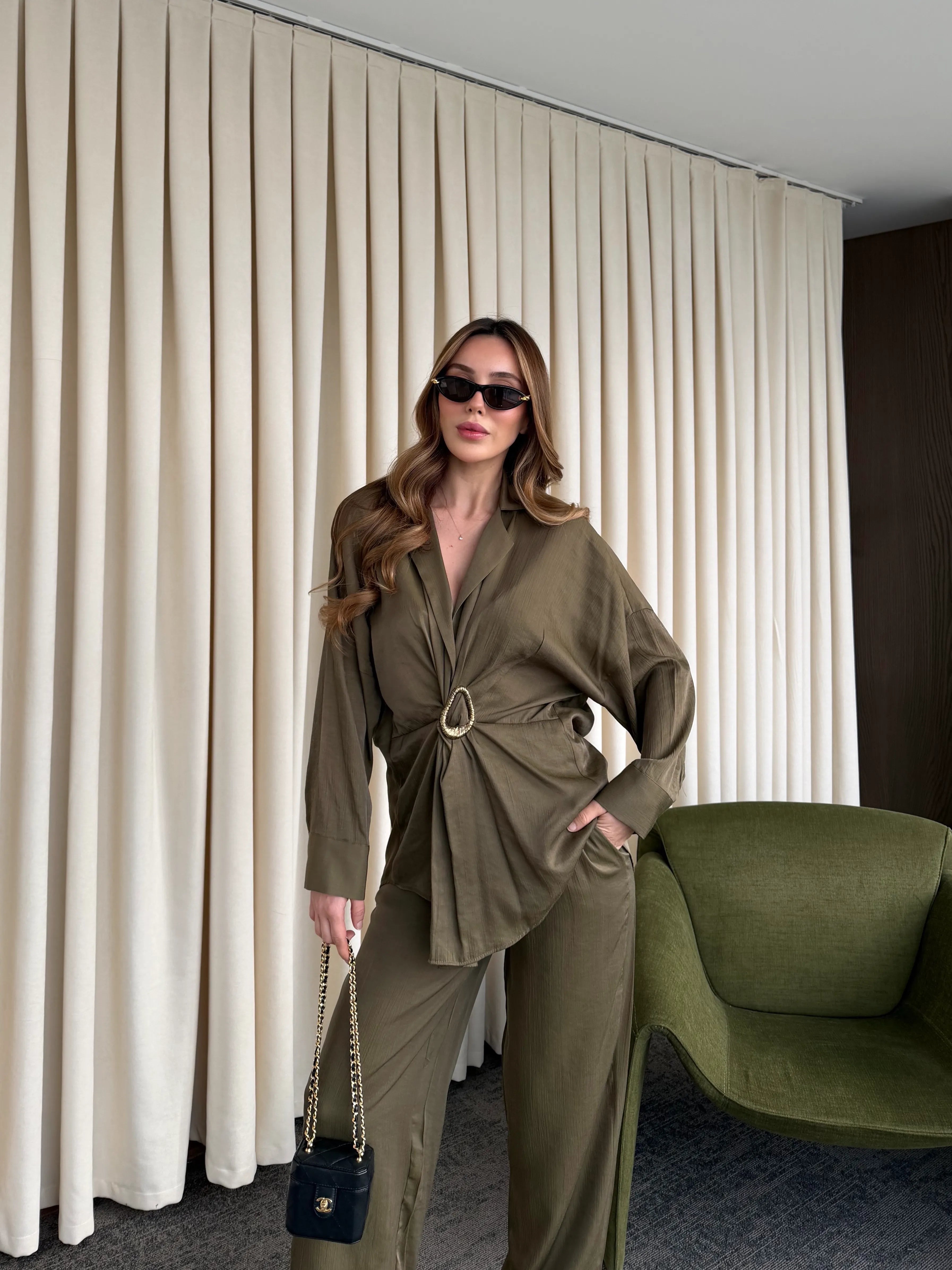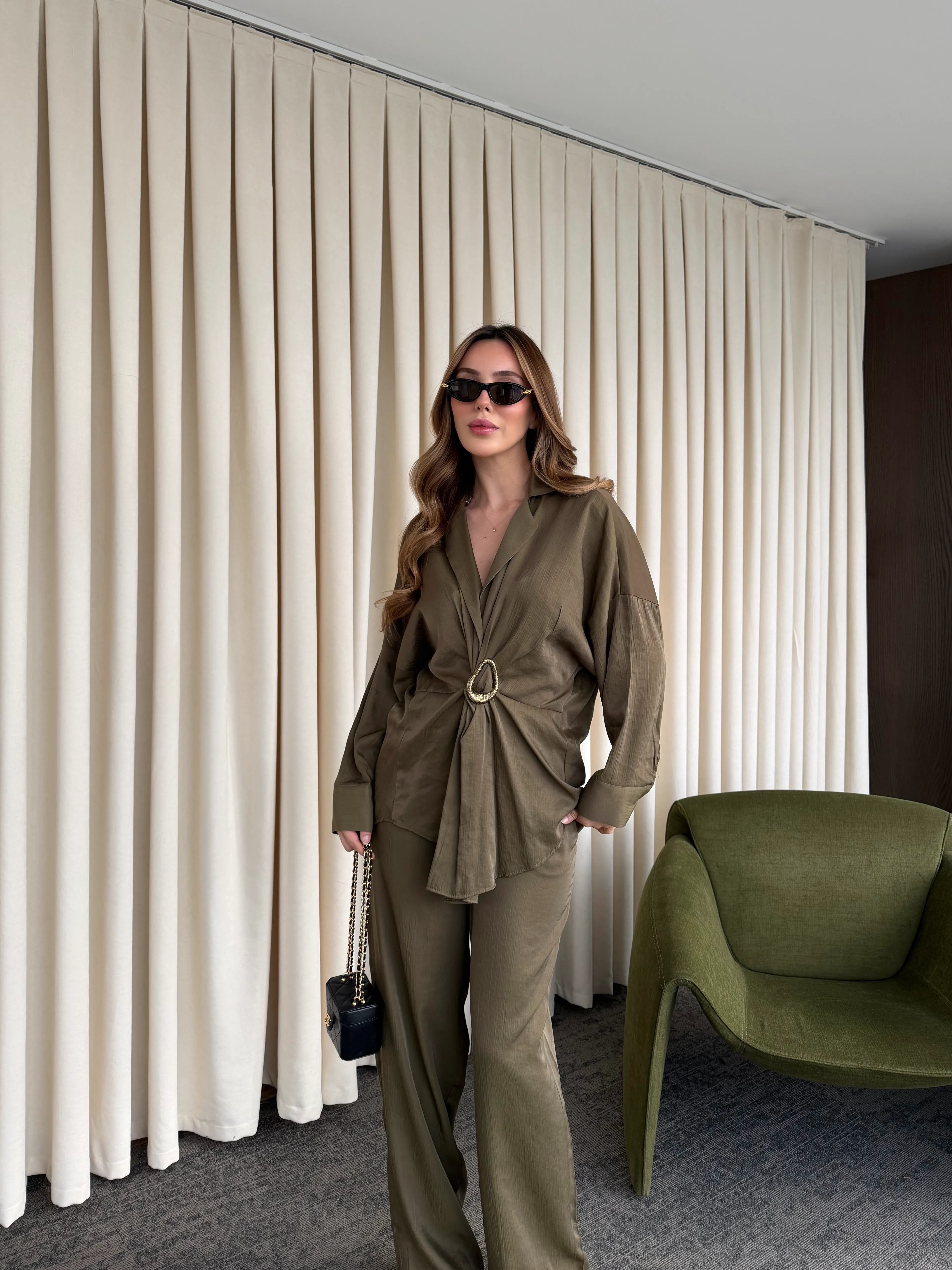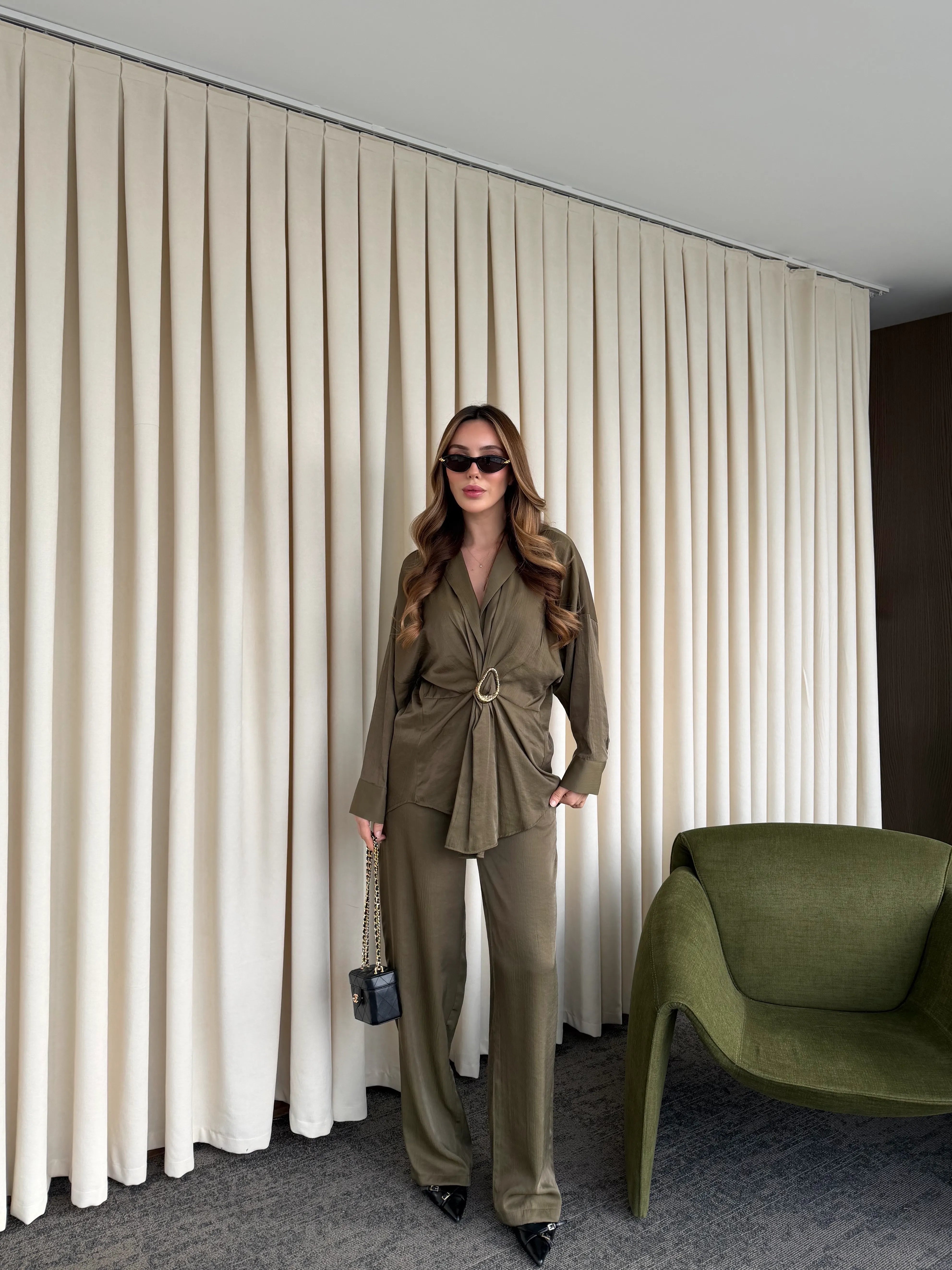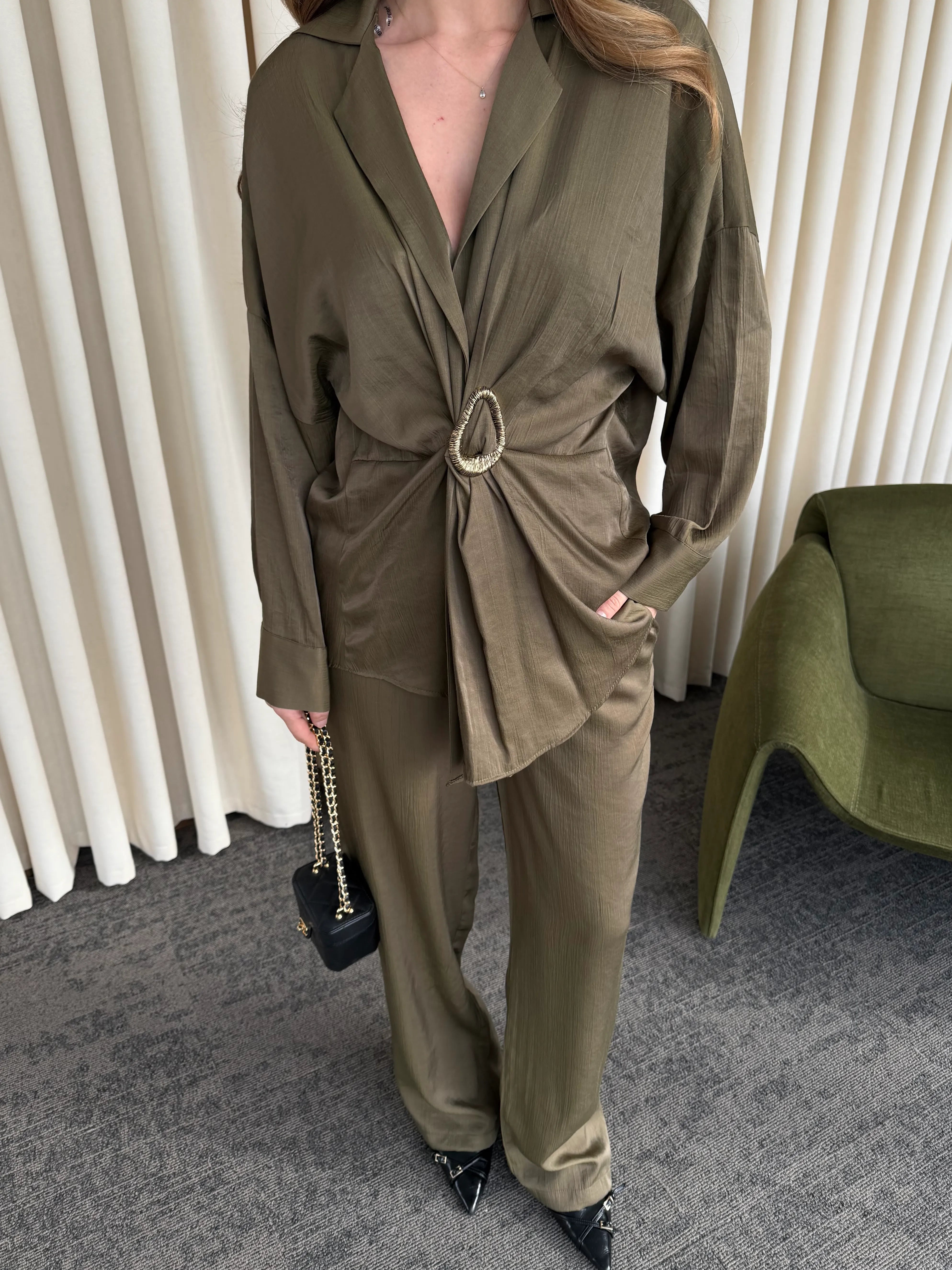 Haki Tokalı Gömlek Pantolon Takım - 51240