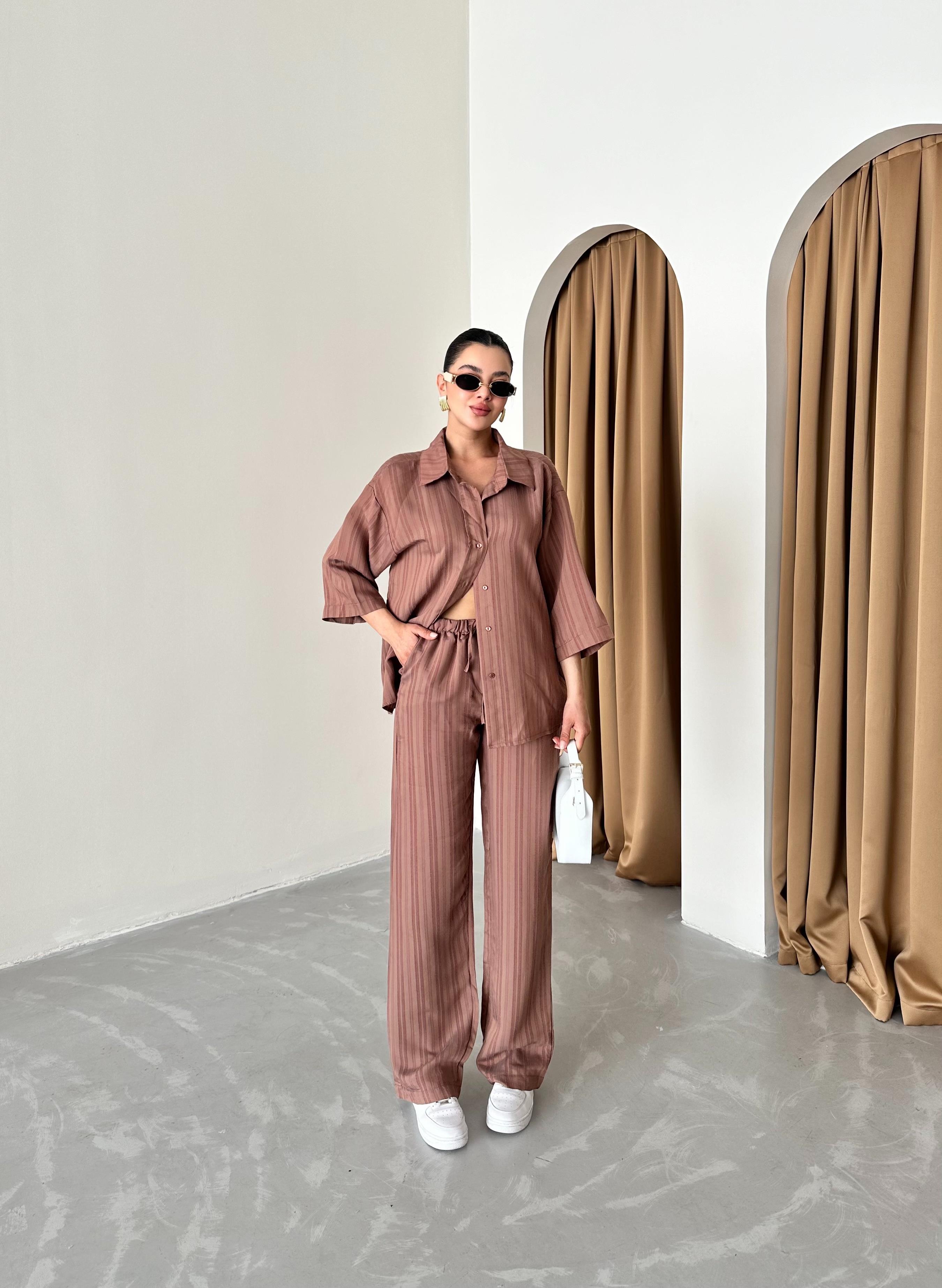 - Kahve Fakir Kol Kendinden Çizgili Takım