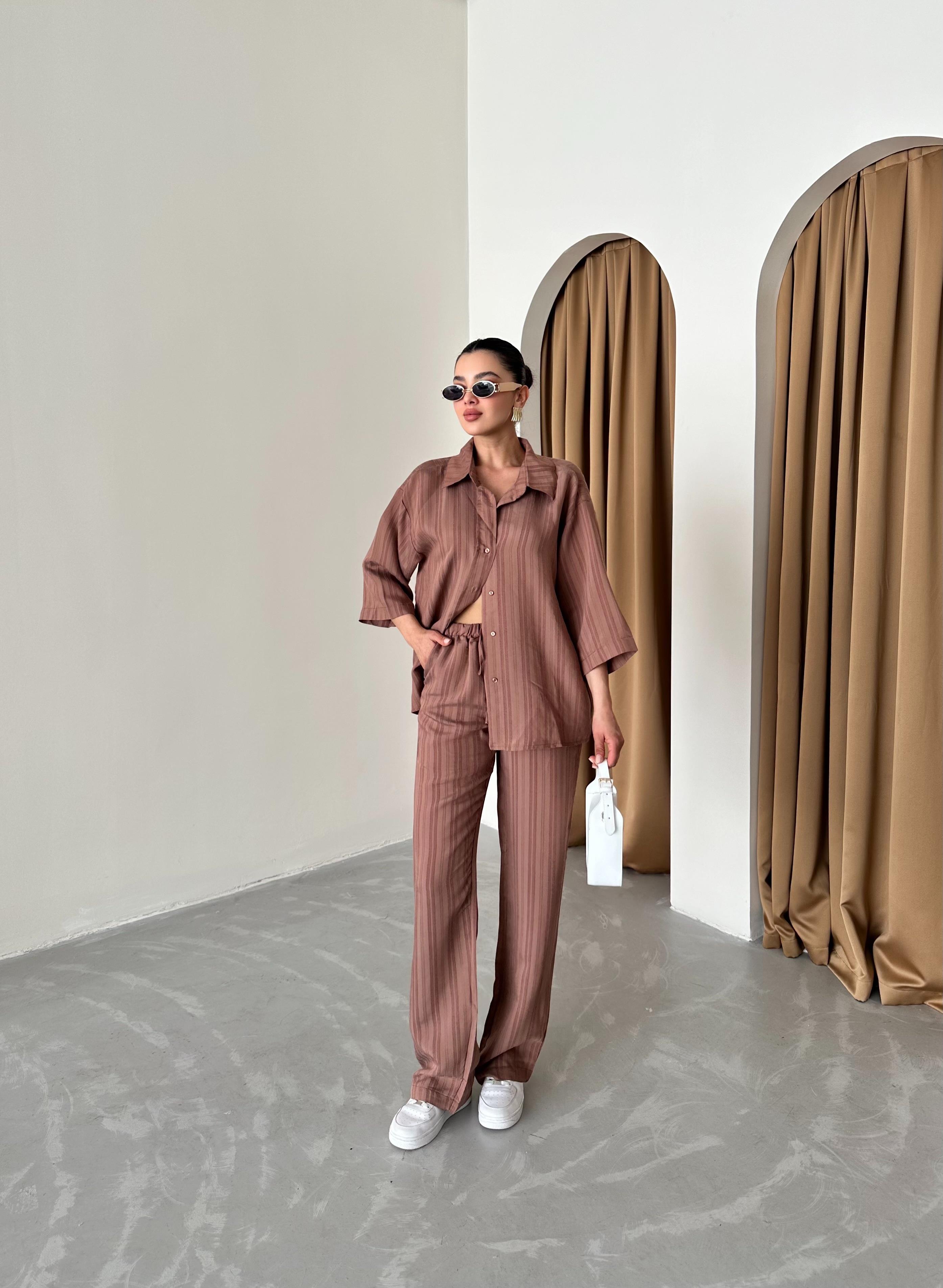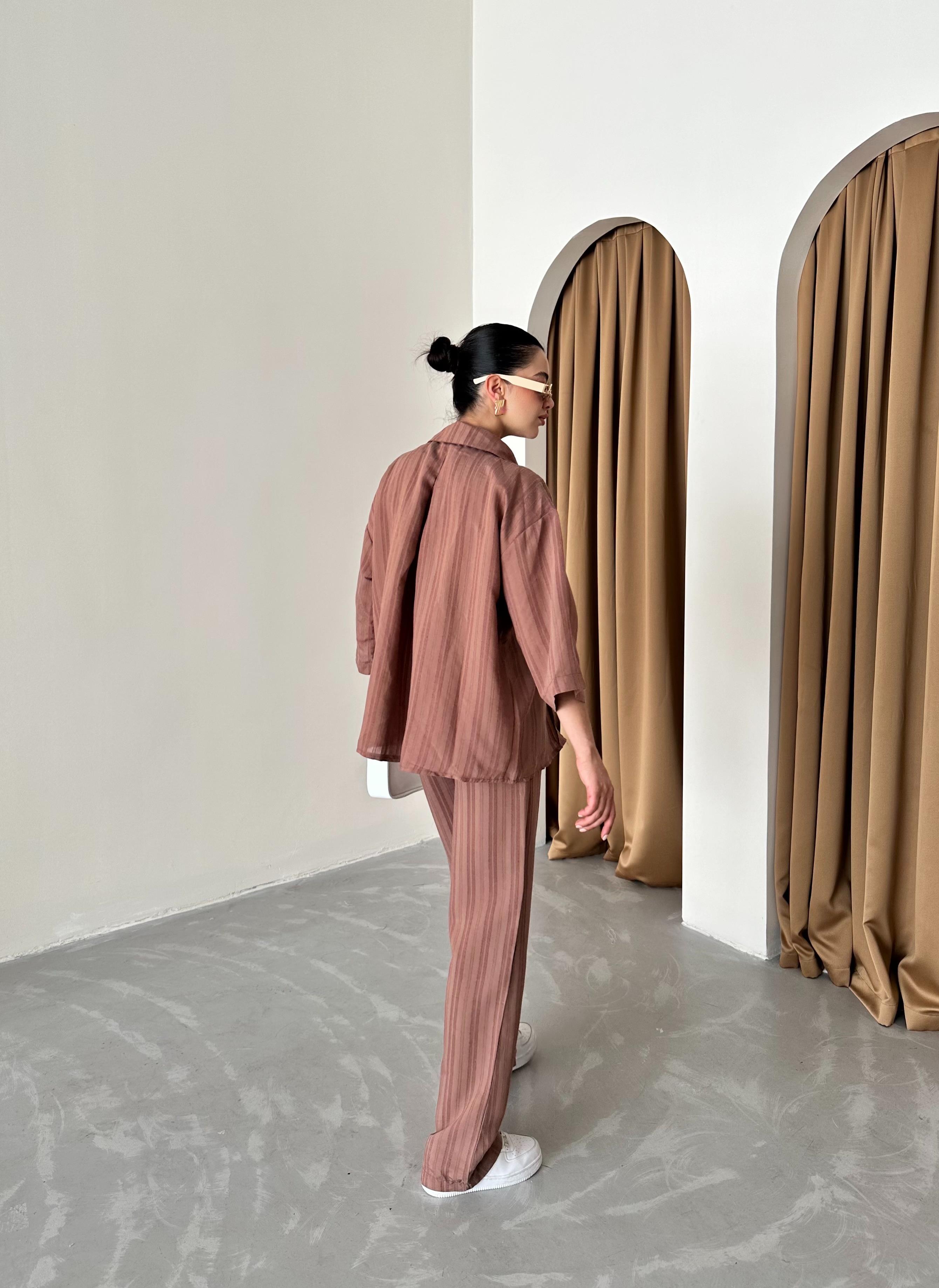 Kahve Fakir Kol Kendinden Çizgili Takım