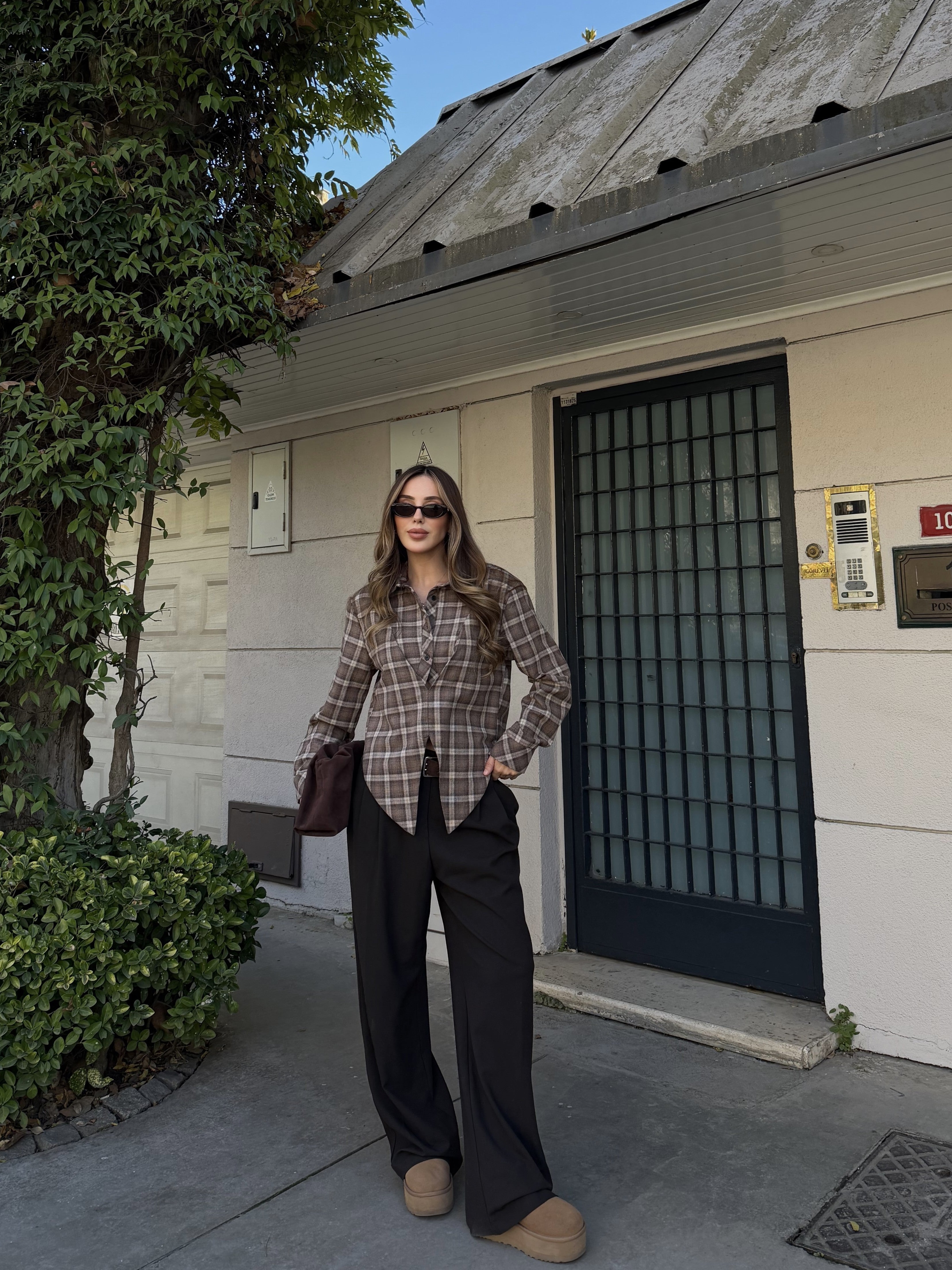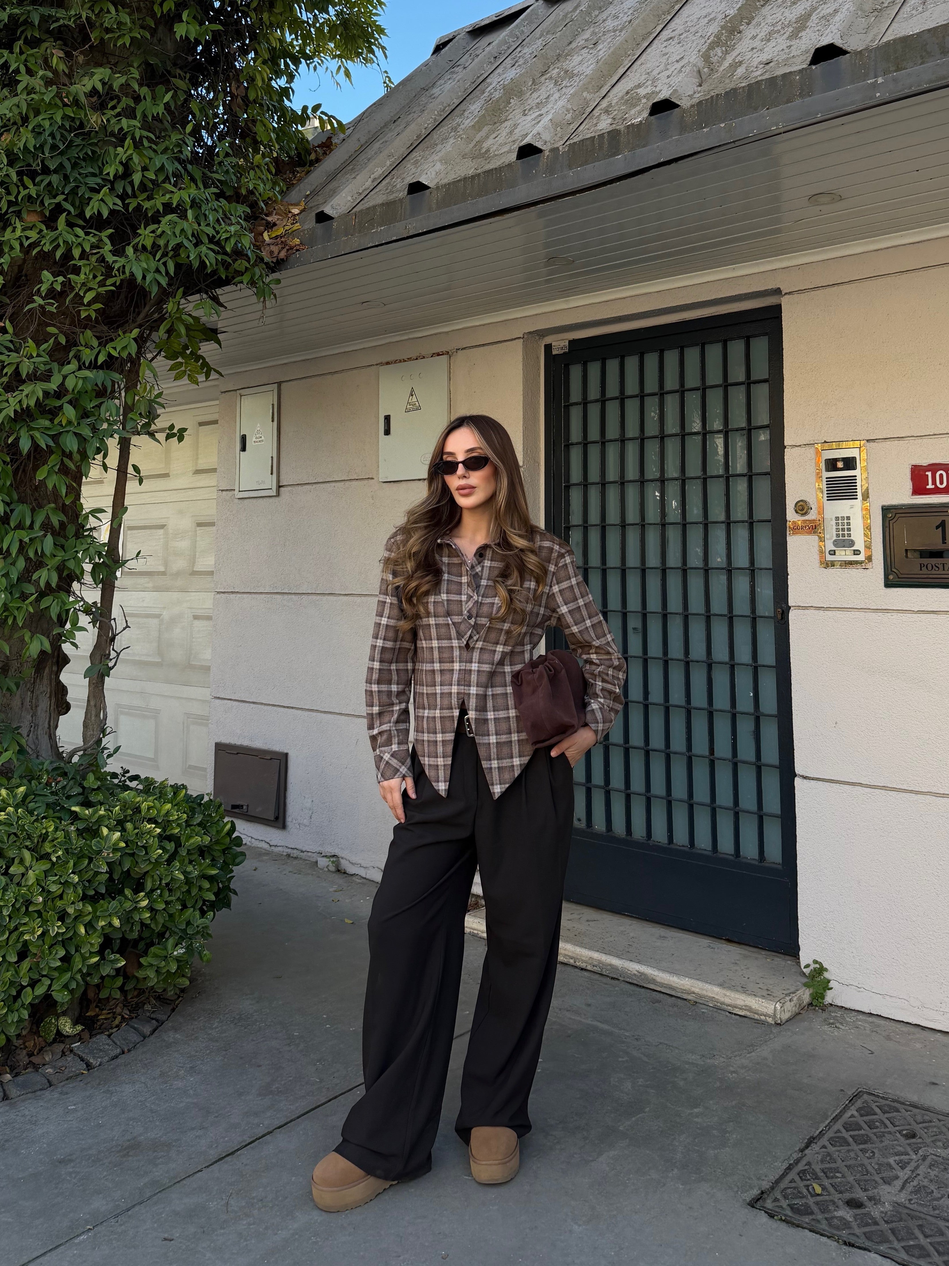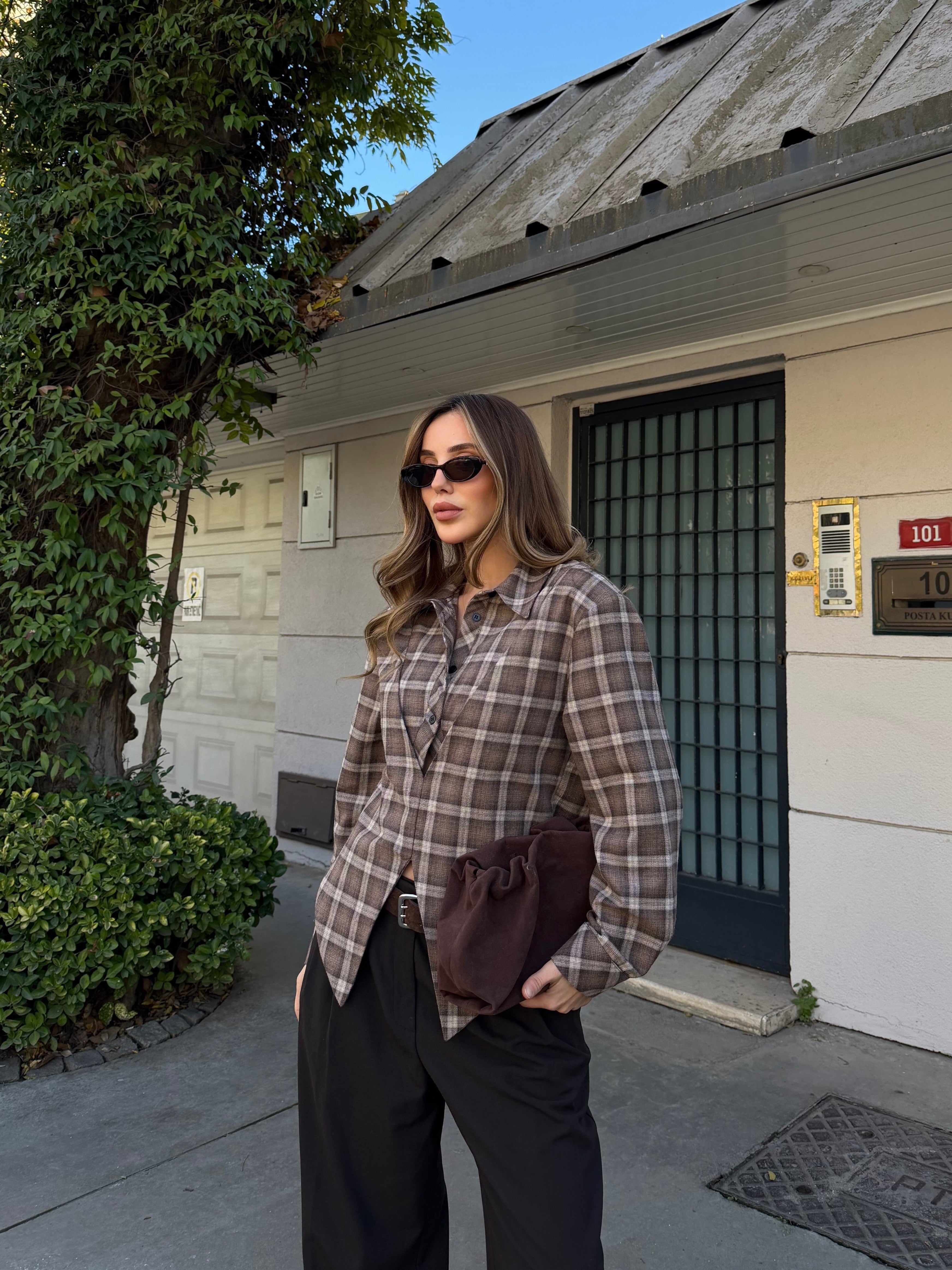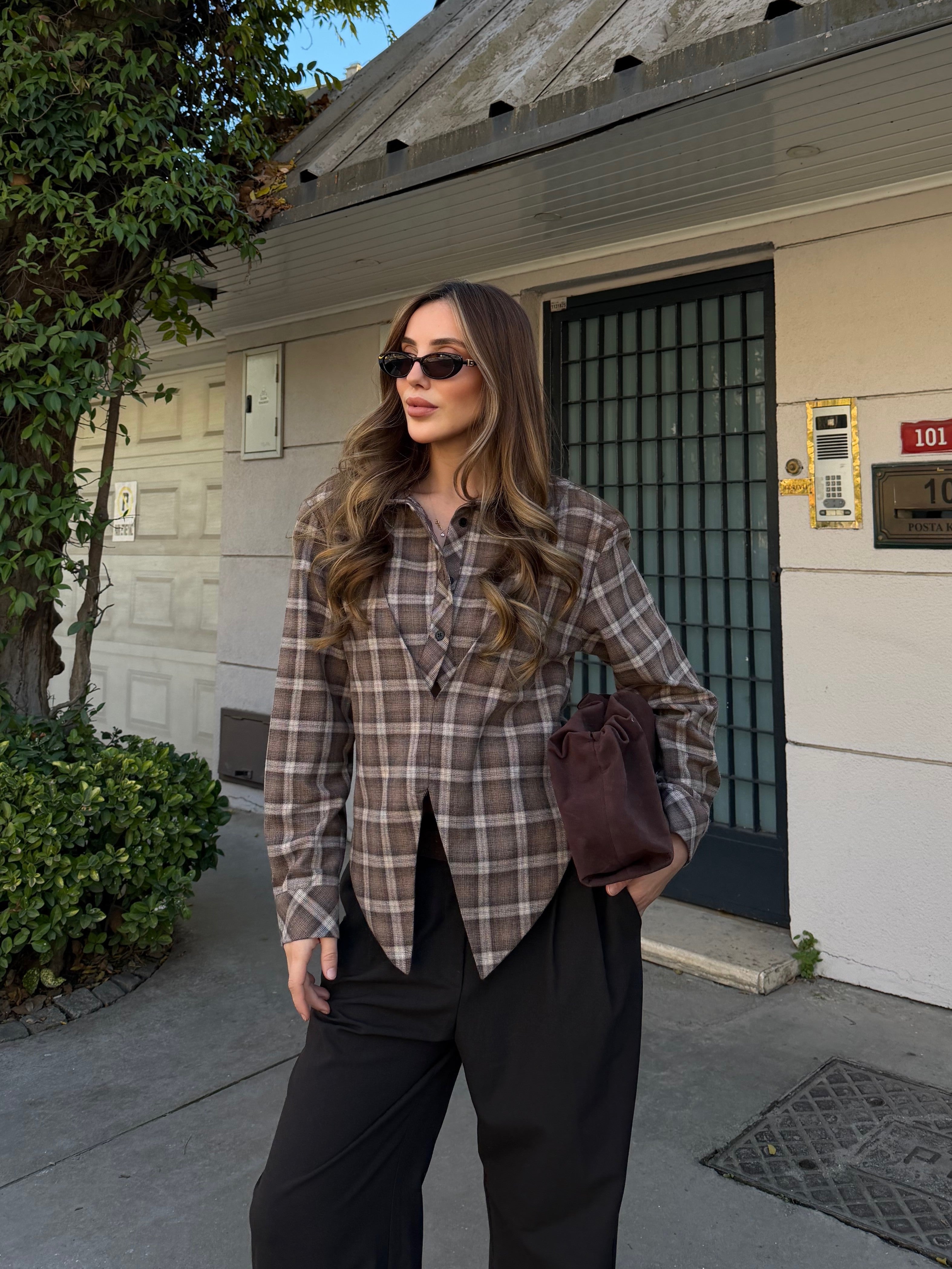 Kahverengi %100 Pamuklu Tasarım Gömlek - 3201