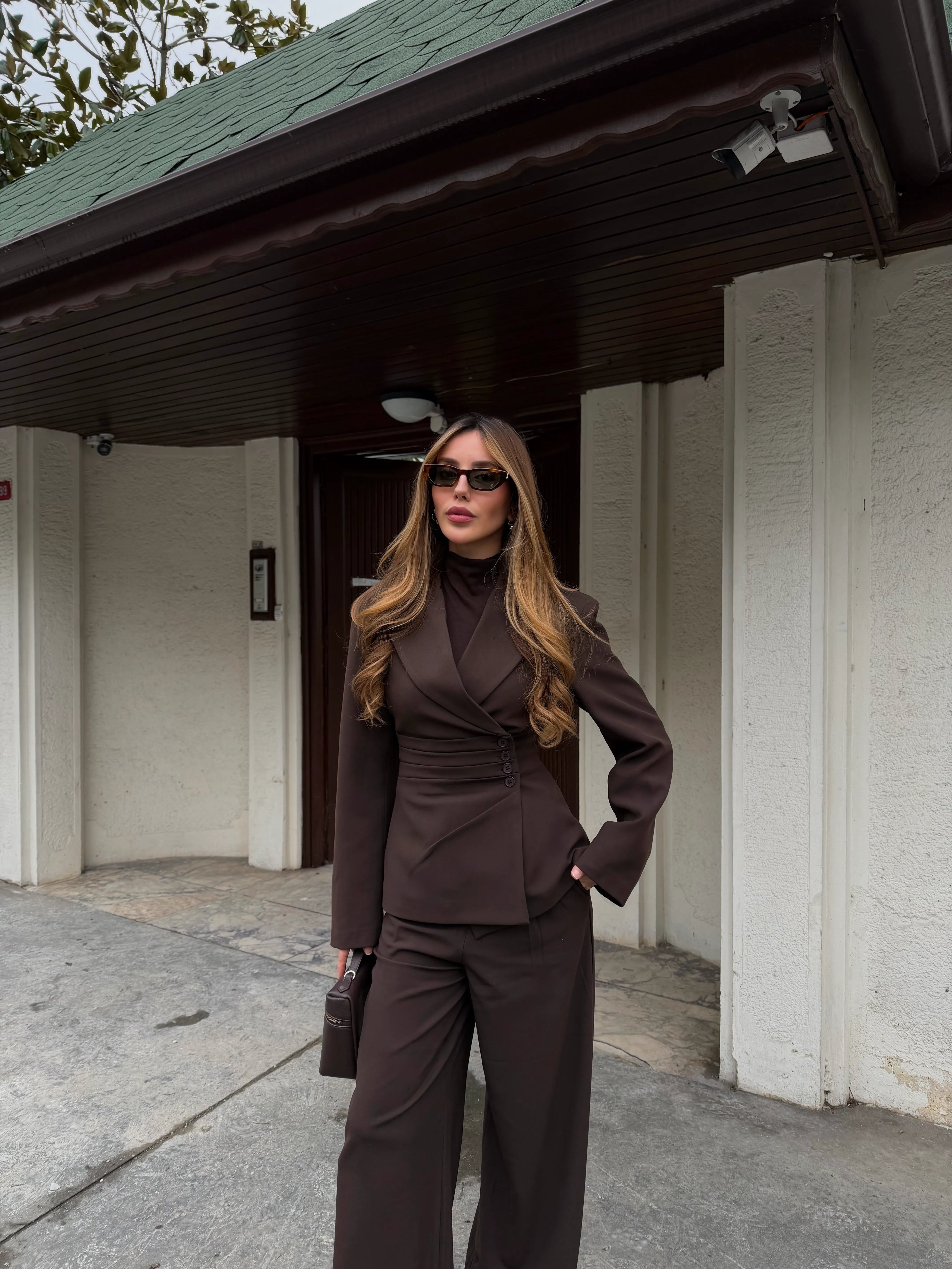 Kahverengi 4 Yan Düğmeli Ceket Pantolon Takım - 202602