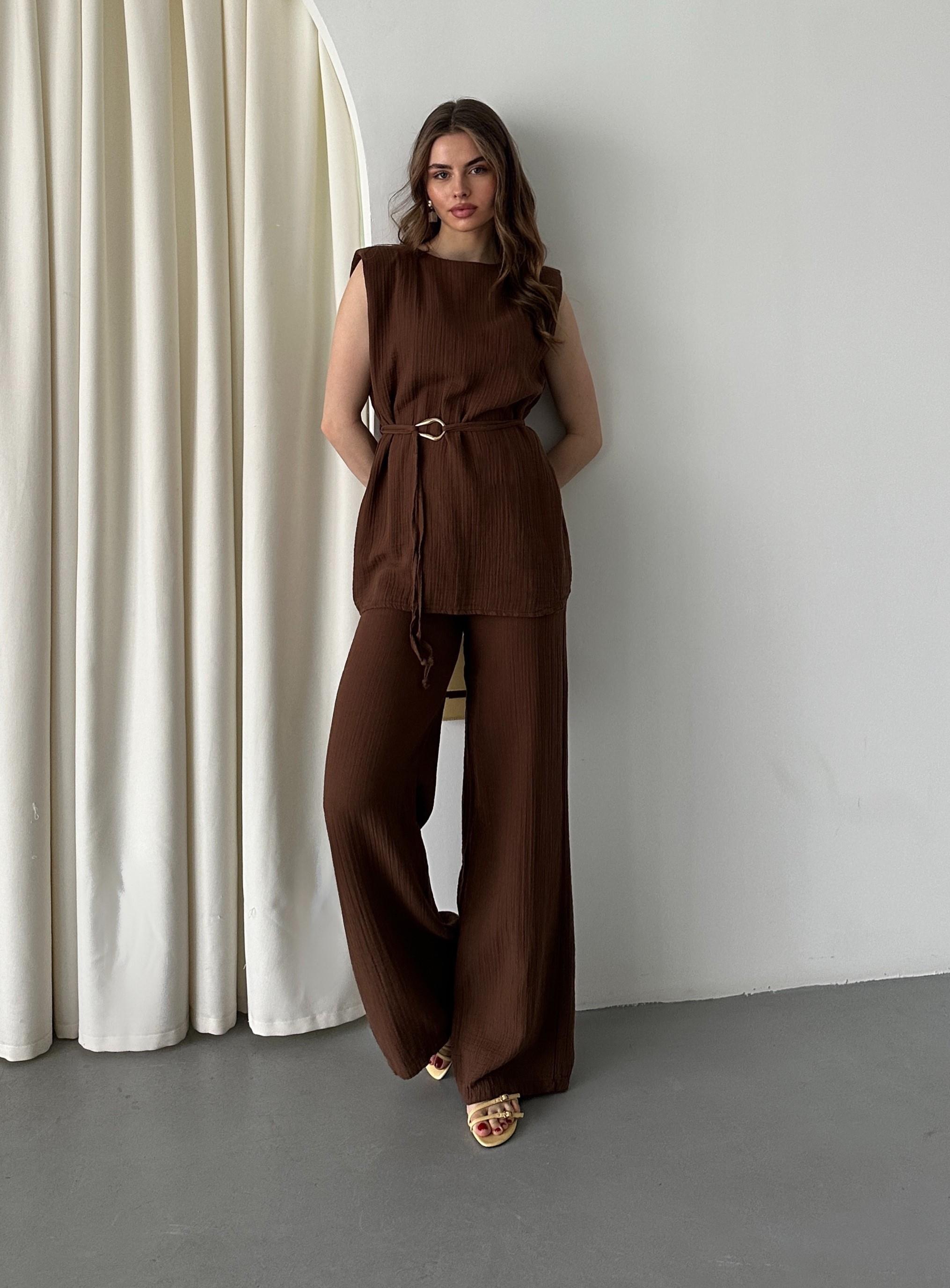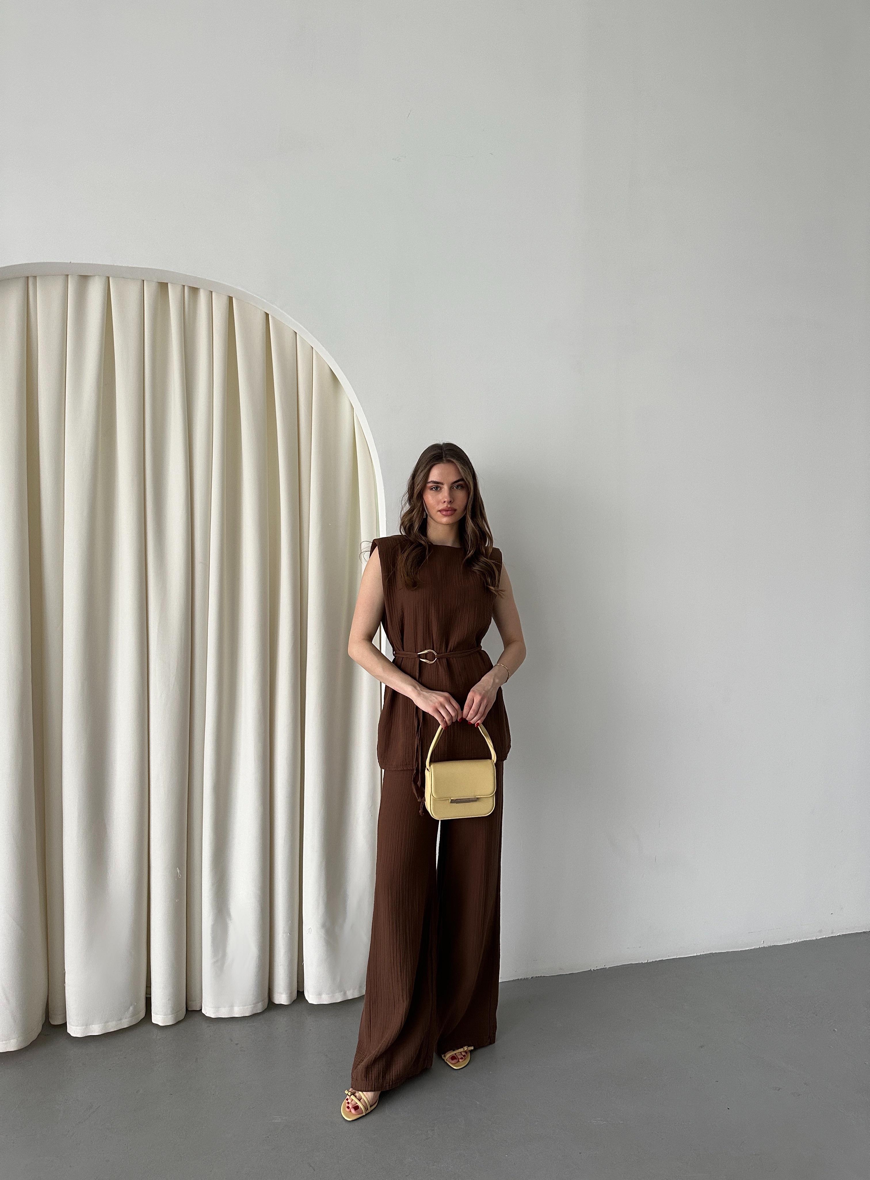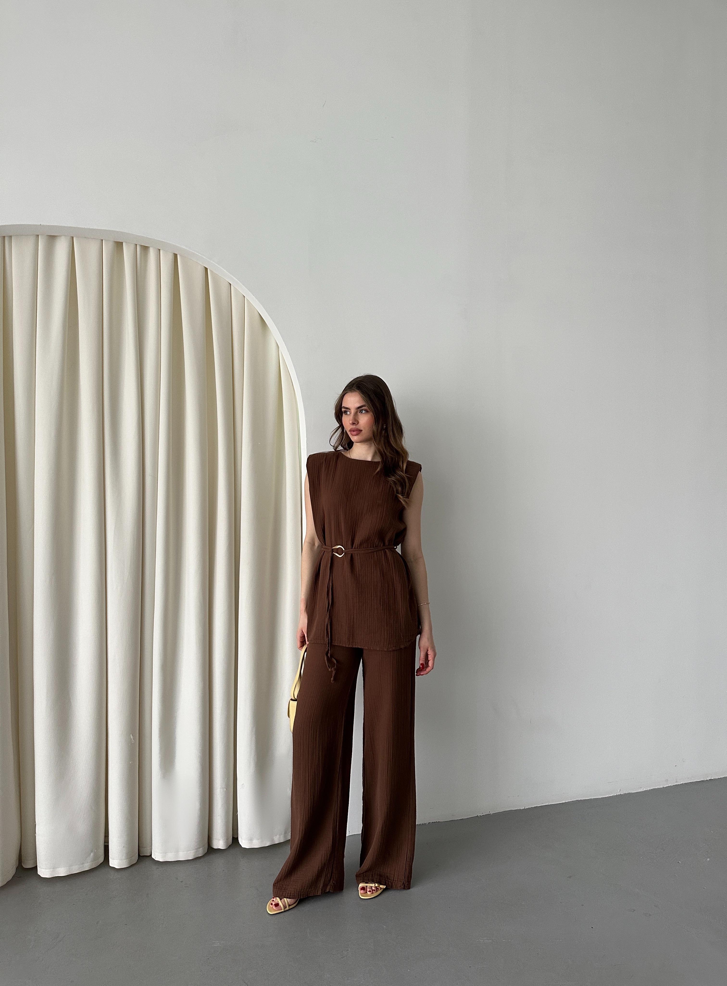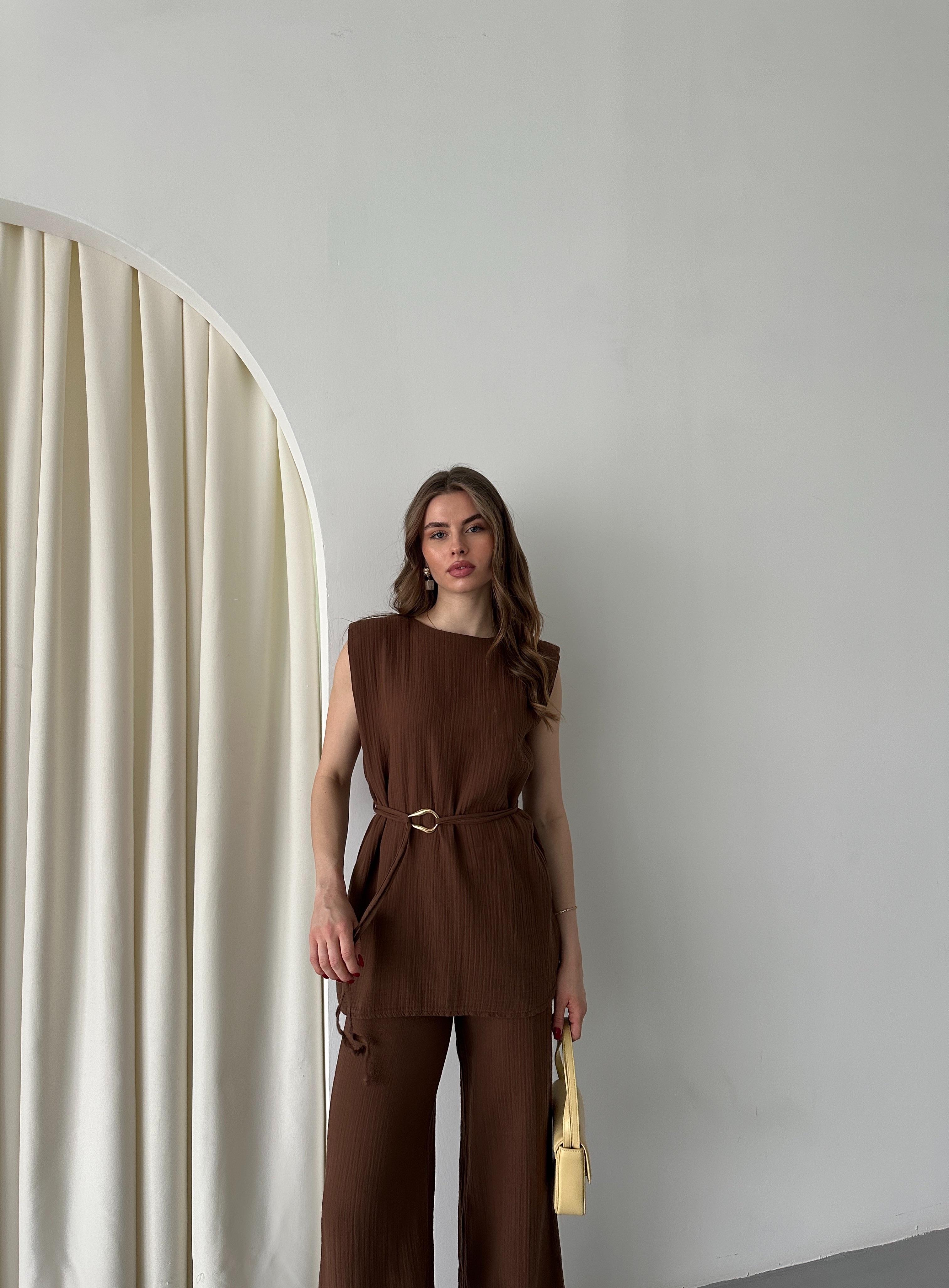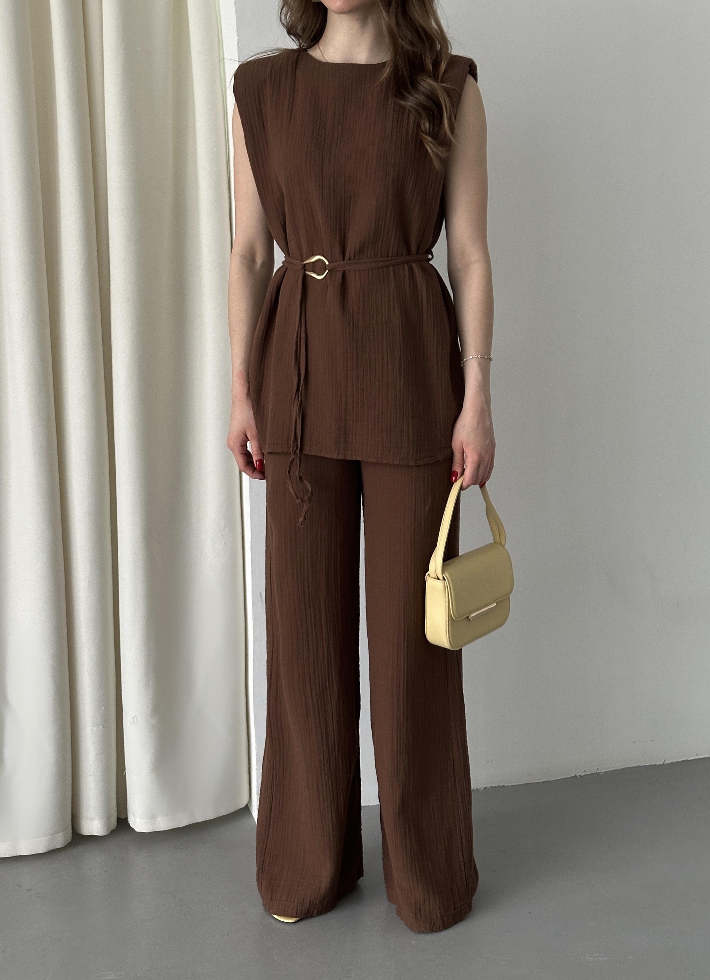 - Kahverengi Aksesuar Detaylı İkili Takım