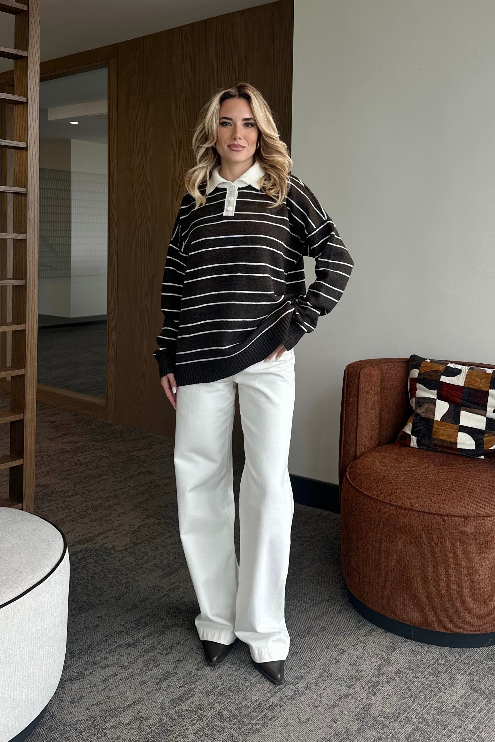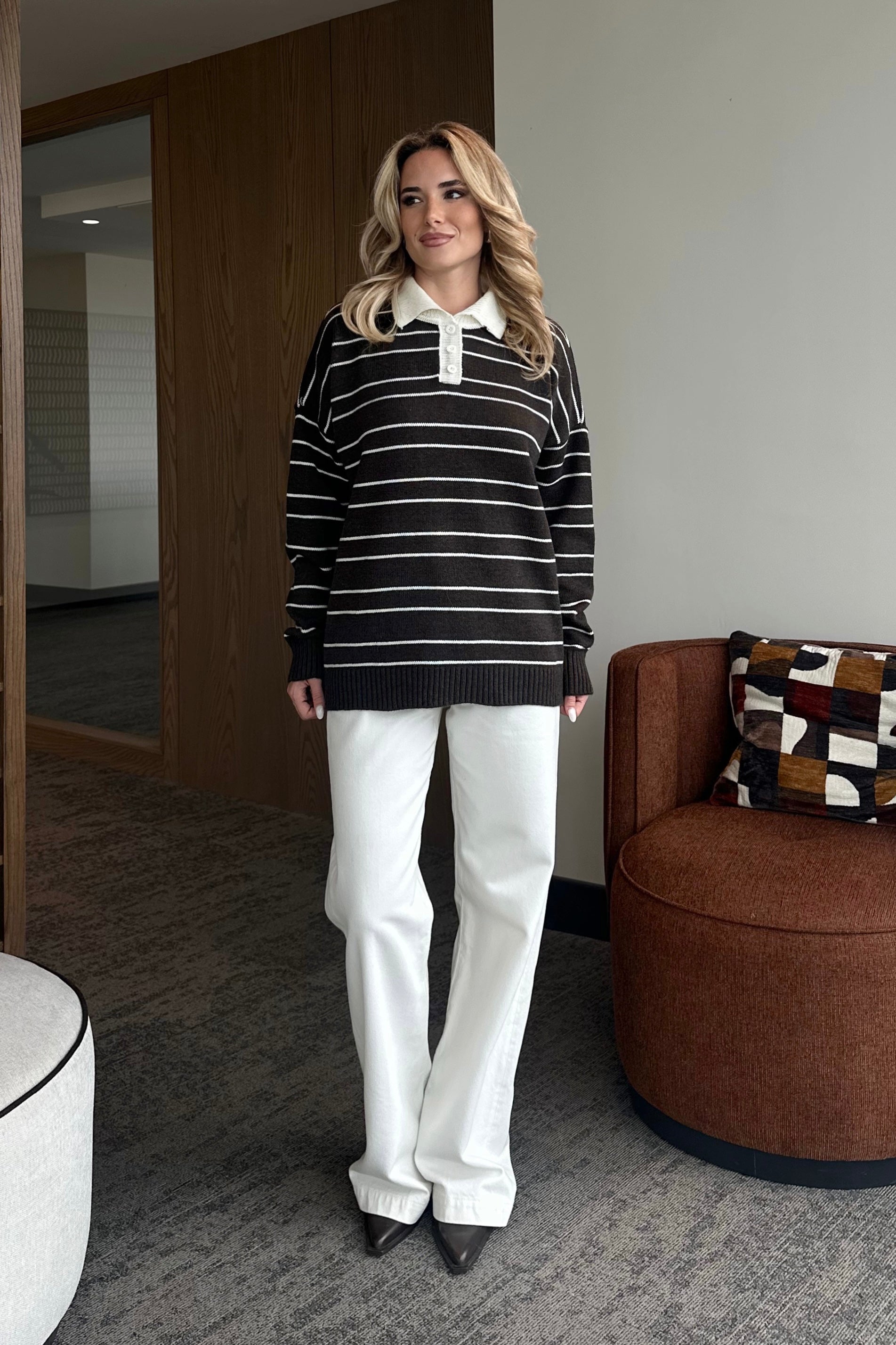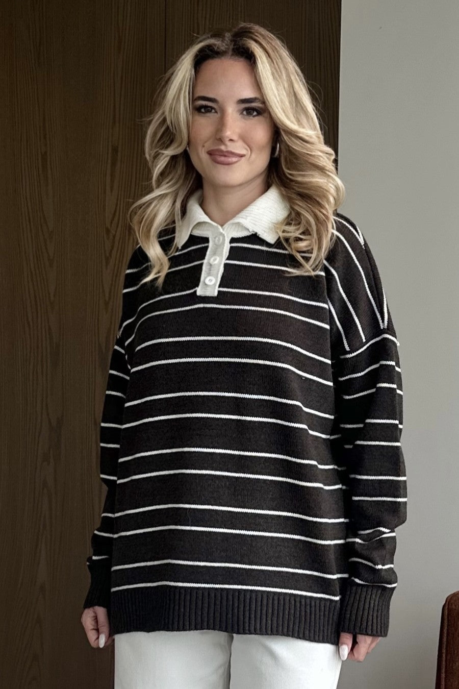 - Kahverengi Beyaz Çizgili Kazak -1510