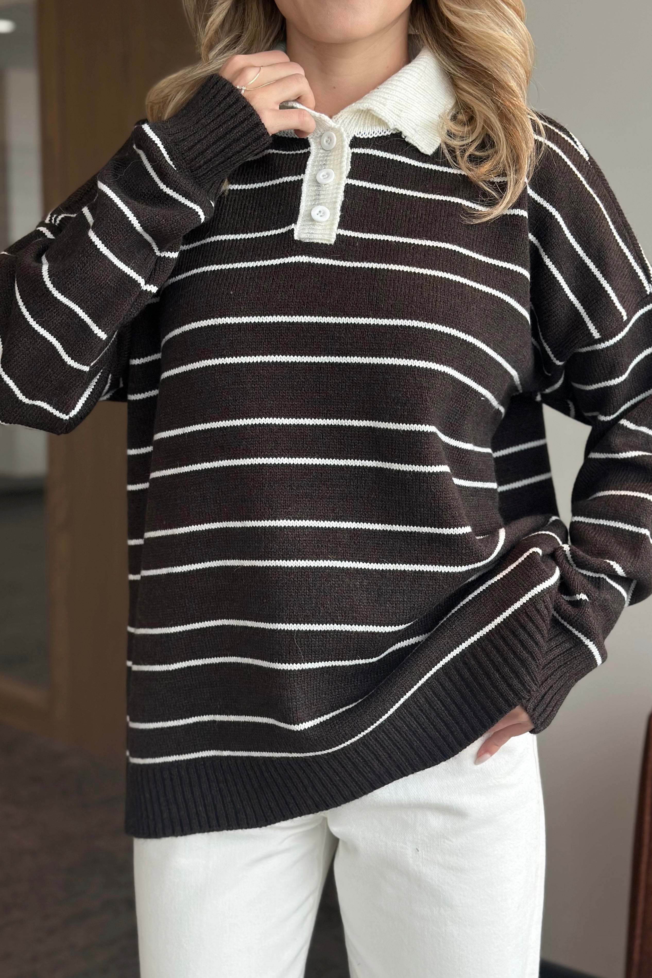 Kahverengi Beyaz Çizgili Kazak -1510