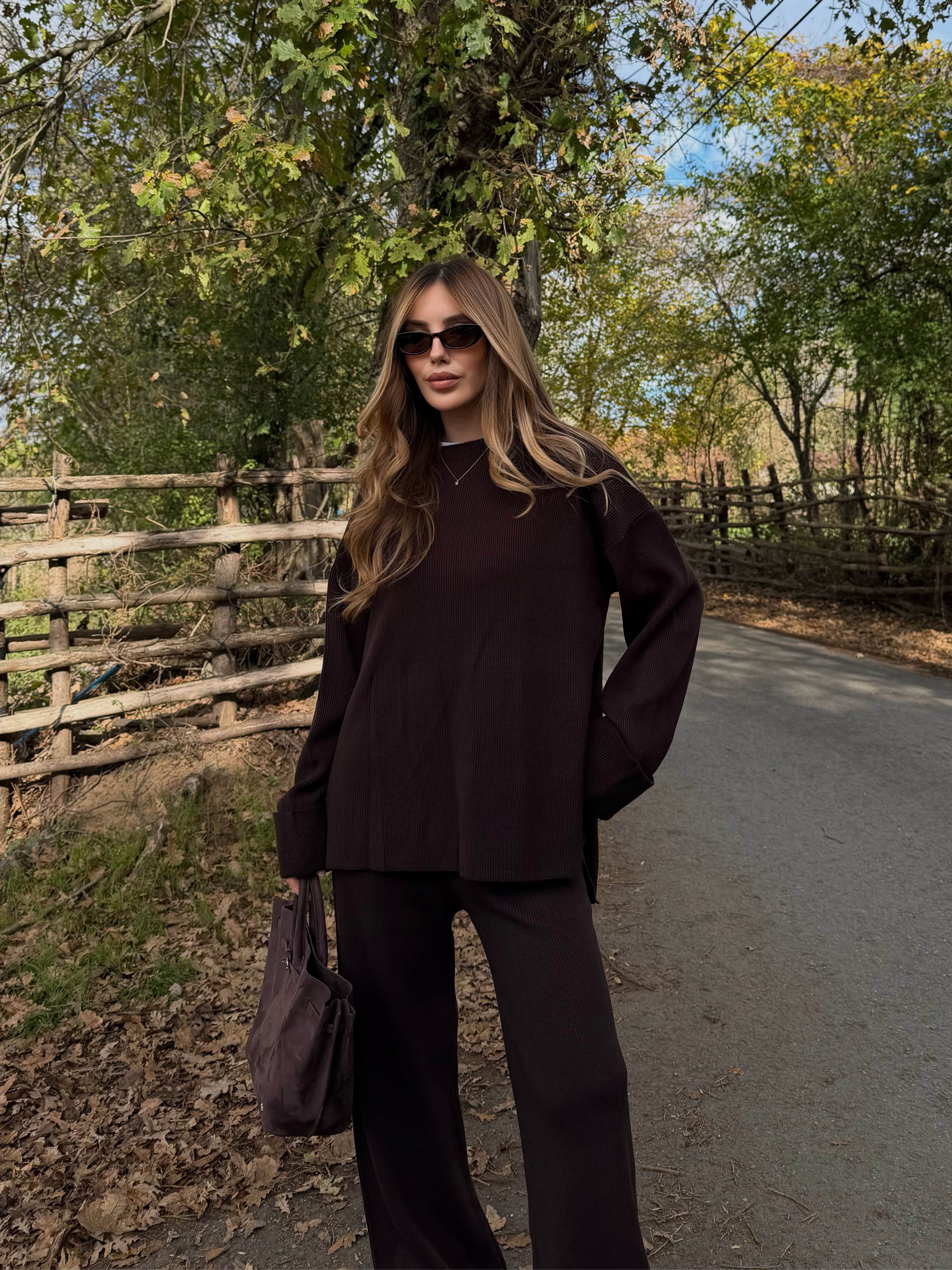 - Kahverengi Bisiklet Yaka Triko Takım - 4587