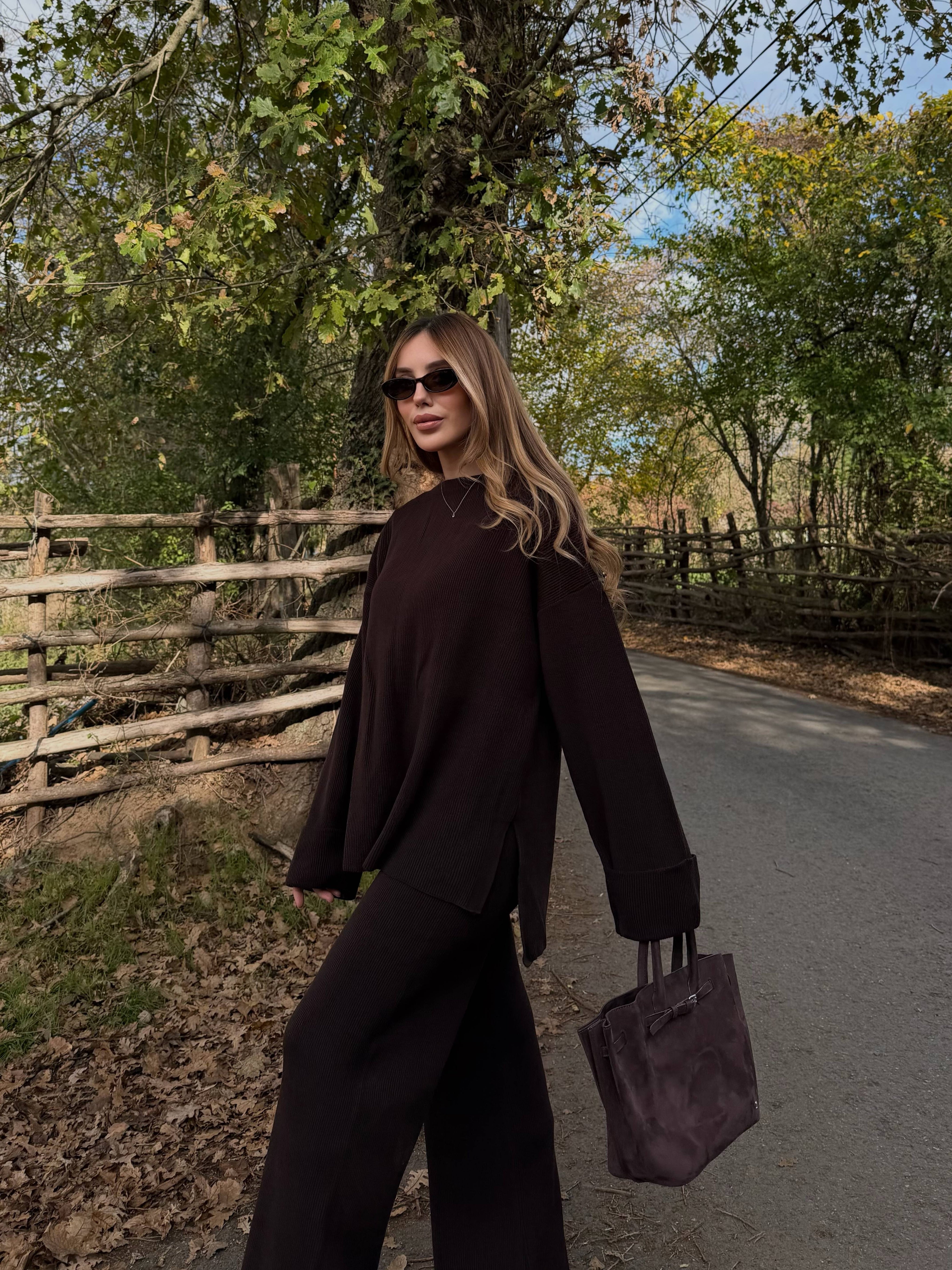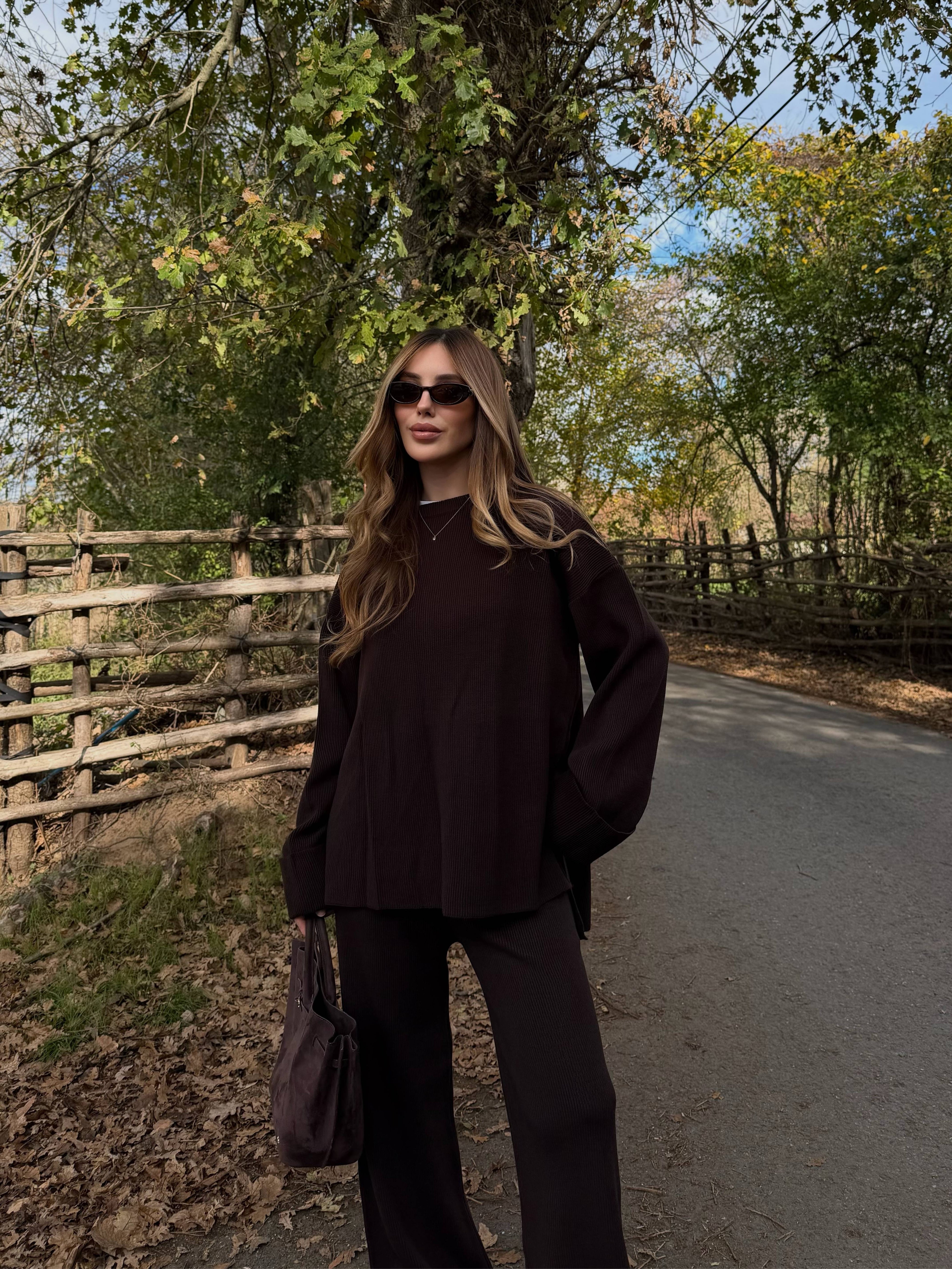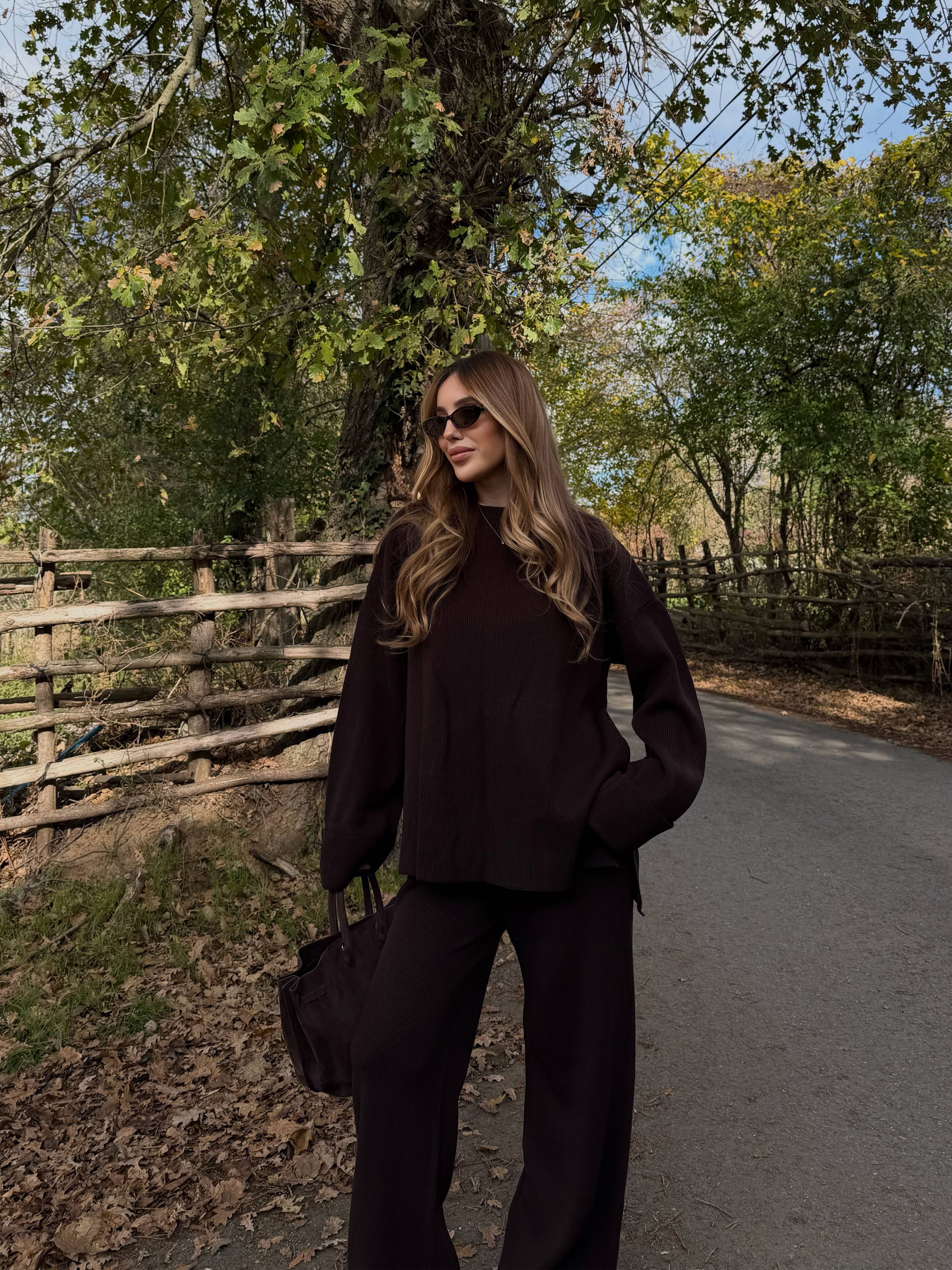 Kahverengi Bisiklet Yaka Triko Takım - 4587